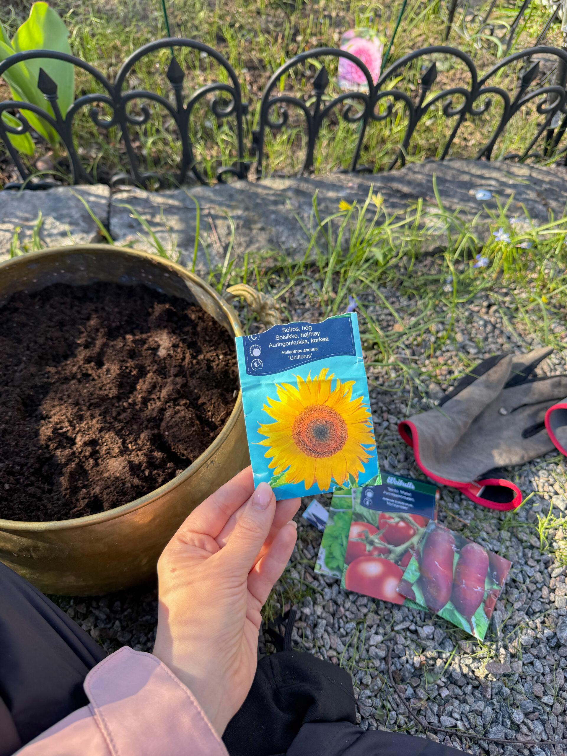 vi har planterat solros. Hoppas att det blir något nu. Detta är Leonards favoritblomma 🙂