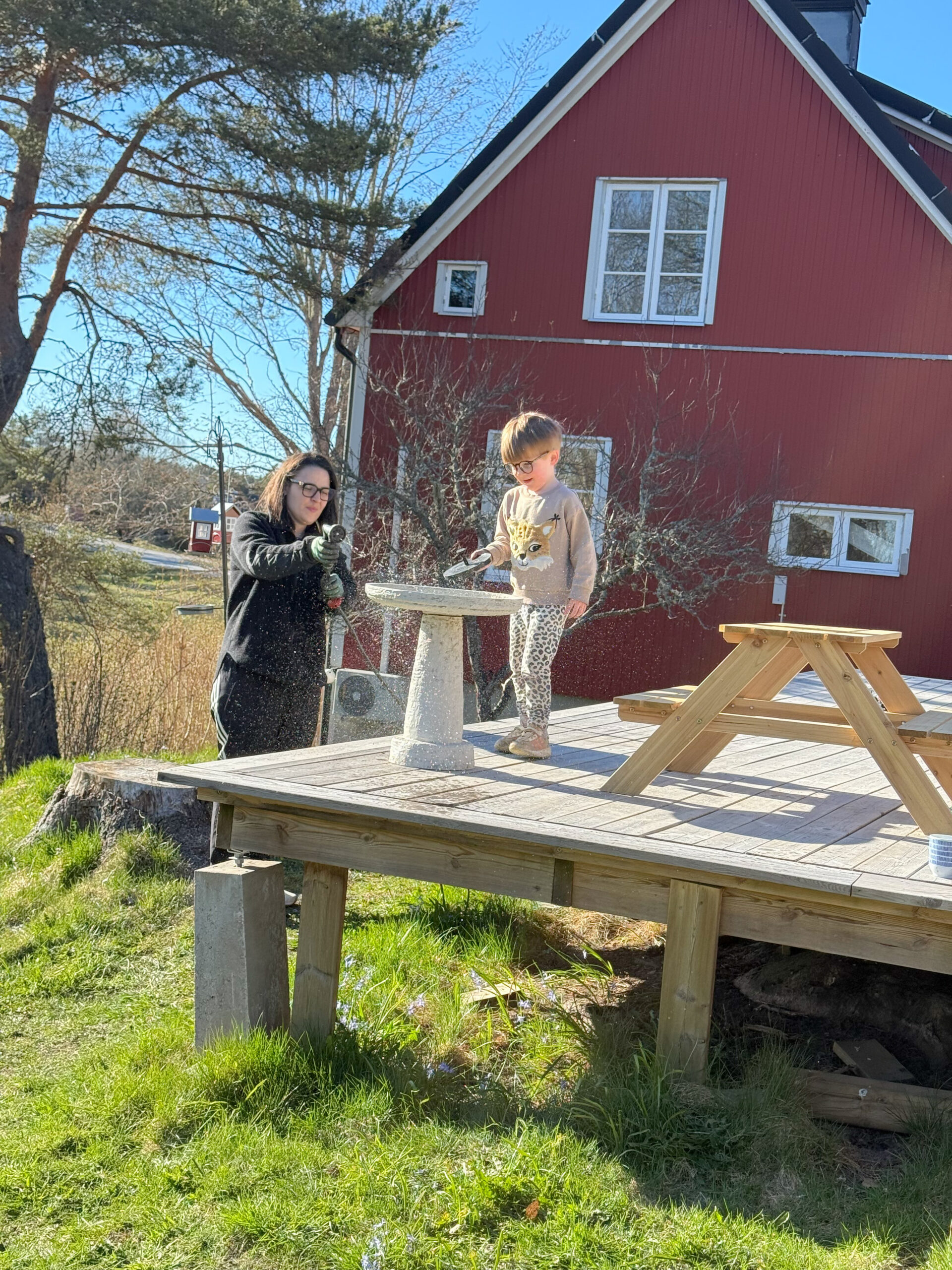 Leonards fontän / fågelbad fylls på 🙂