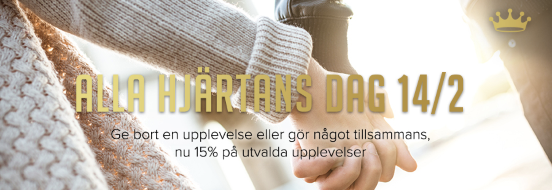 Greatdays erbjuder nu en massa fina upplevelser du kan göra med din kärlek på alla hjärtans dag. Och via denna länk (klick) får ni hela 15% rabatt på många av deras upplevelser. Passa på 🙂