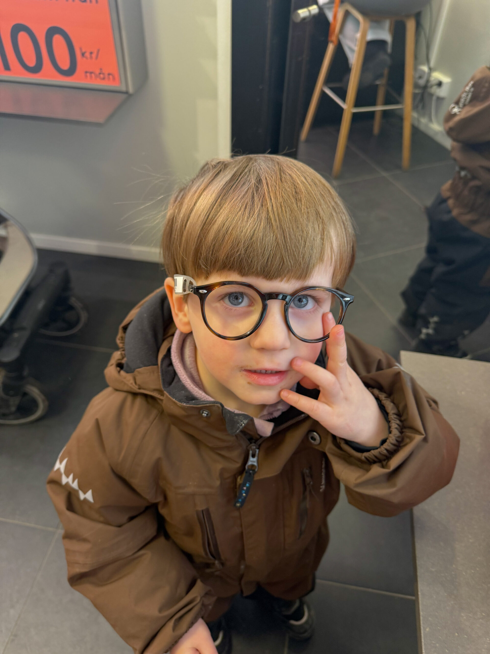 Idag har jag och barnen varit i Lidingö Centrum. Leonard har ett litet synfel (utan att gå in på för mycket detaljer) som kan gå bort. Oftast så går det bort av sig själv. Men under denna tid behöver han ha glasögon. Idag var vi inne på Synsam och valde ut bågar. Han var så duktig och så glad. Han valde ett par runda glasögon från Rayban. Bra val om ni frågar mig. Därefter gick vi till leksaksaffären och köpte en leksak, bara för att han varit så duktig. Det är stort att få glasögon 🙂
