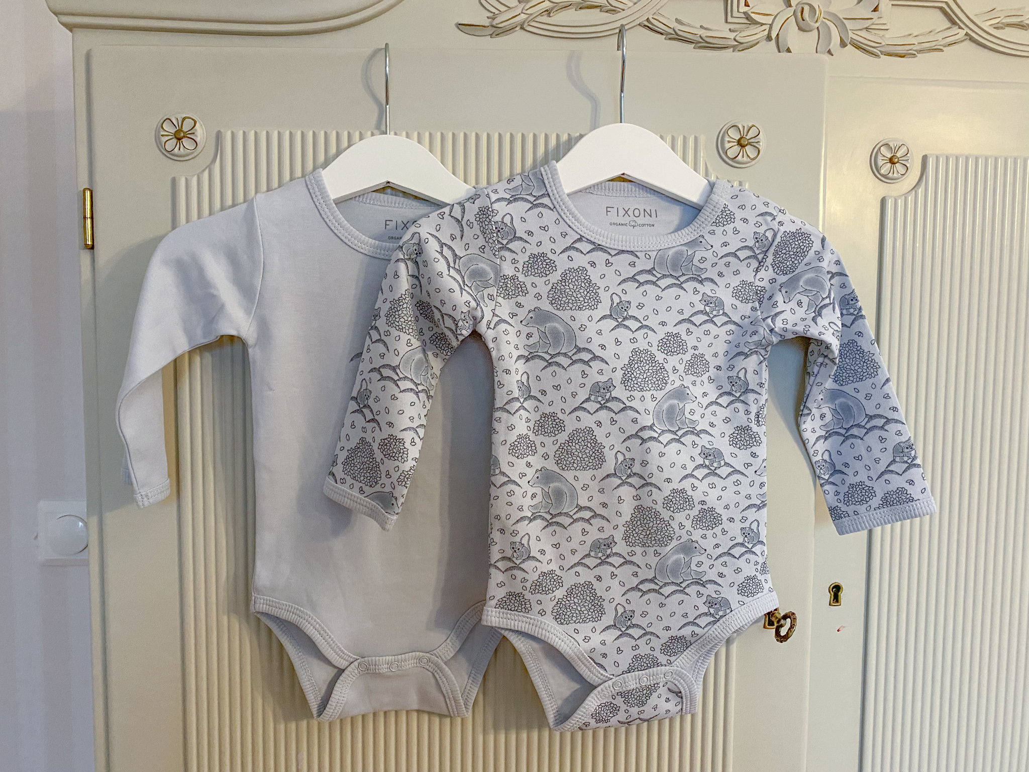 Två back bodys. Väldigt bra basplagg att ha hemma. Bodys måste nog vara det bästa bebisplagget 🙂