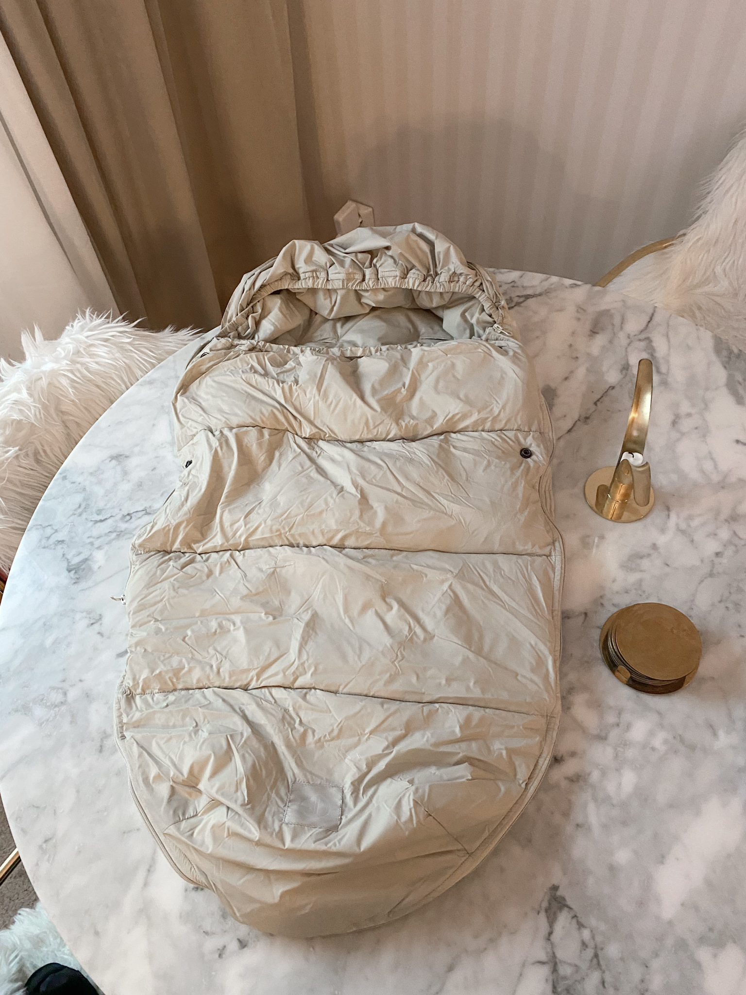 Det bästa i leveransen var ändå vår nya åkpåse. Det börjar bli kallt nu och vi har länge letat efter en fin och funktionell åkpåse. Denna från Elodie uppfyller alla våra krav. Den är fjäderlätt då den är stoppas med lättviktsdun. Den är så varm och gosig. Åkpåsen är även vattenavvisande och perfekt för en blöt och kall vinter. Den passar bra i dem flesta åkpåsar som finns på marknaden. Bild på den finns längst ner i inlägget.
