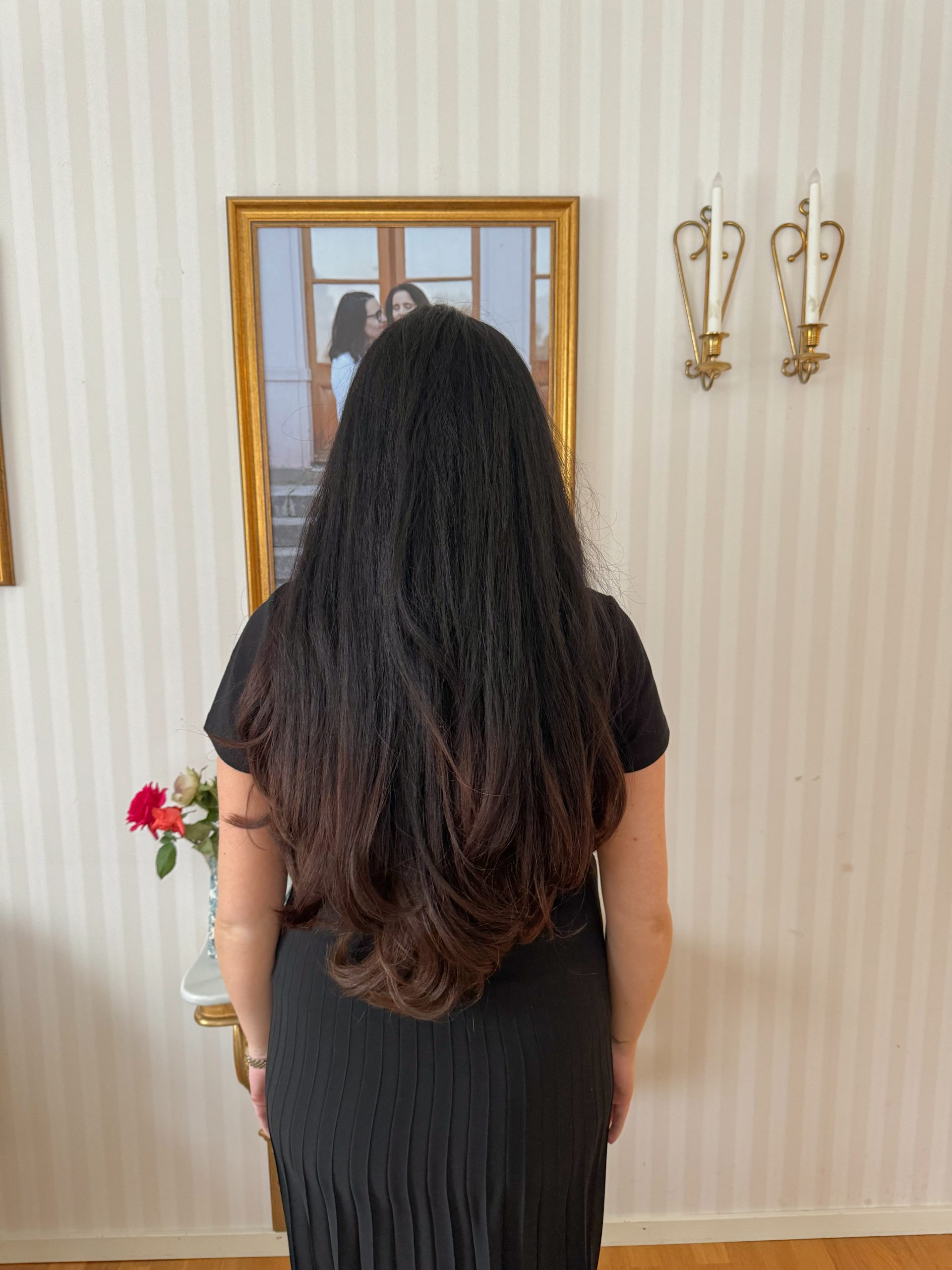 .. och mitt hår precis just nu. Visst blev det bra? Fortfarande väldigt långt och fylligt såklart hehe. Kommer aldrig någonsin klippa kort (tror jag)