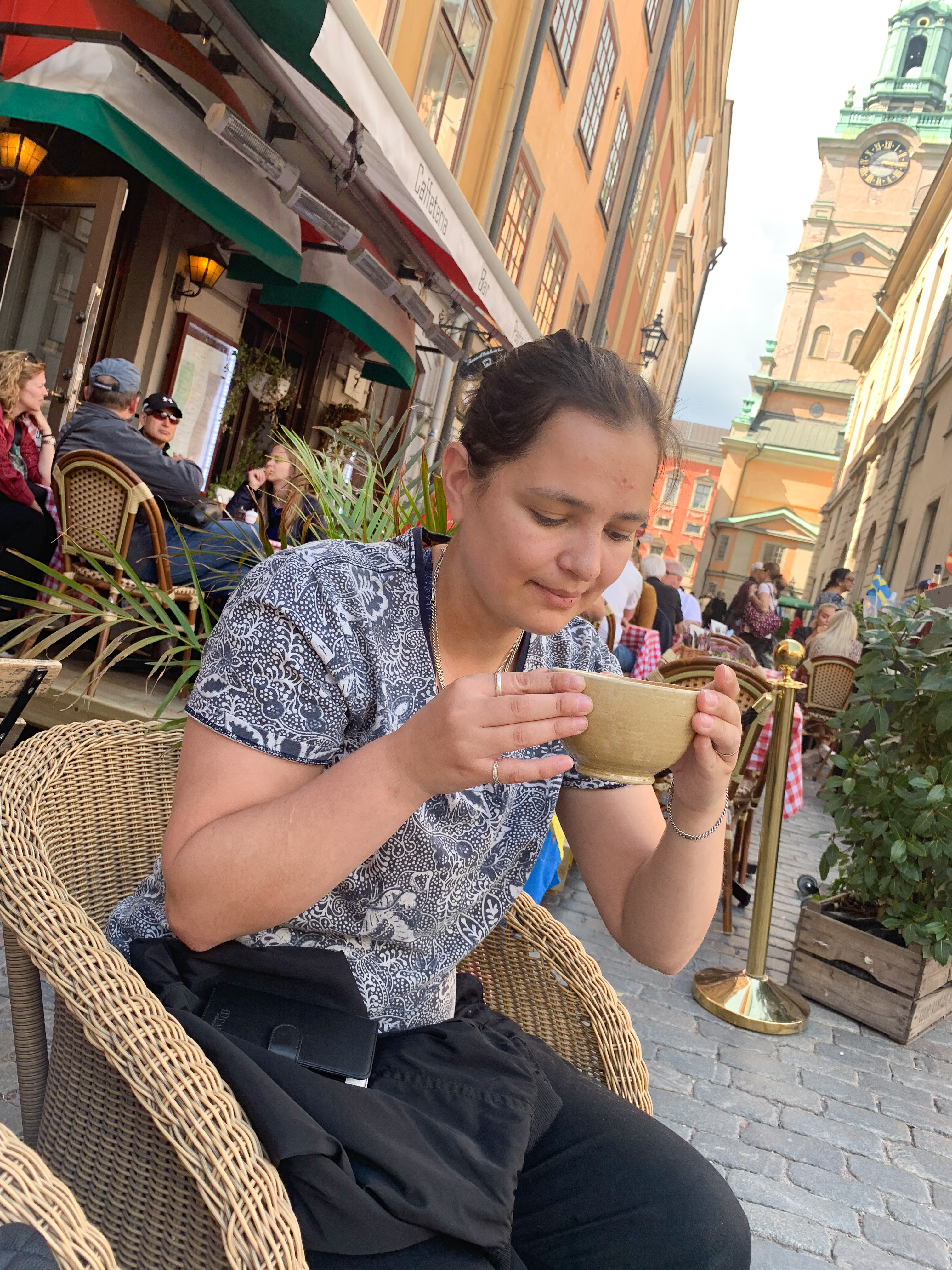 Idag valde jag och M att turista lite i vår egen stad då solen valde att komma fram 🙂 Vi började med att ta en sväng till Gamla stan där vi strosade runt mellan gränderna, fikade och myste runt. Jag älskar ju gamla stan, men idag var det på tok för mycket folk för min smak. Trots detta fick vi ”front row” på undebara chokladkoppen som är ett ”gay-vänligt” café mitt på Stortorget i Gamla stan. Här blev det kaffe och paj. Så otroligt gott!