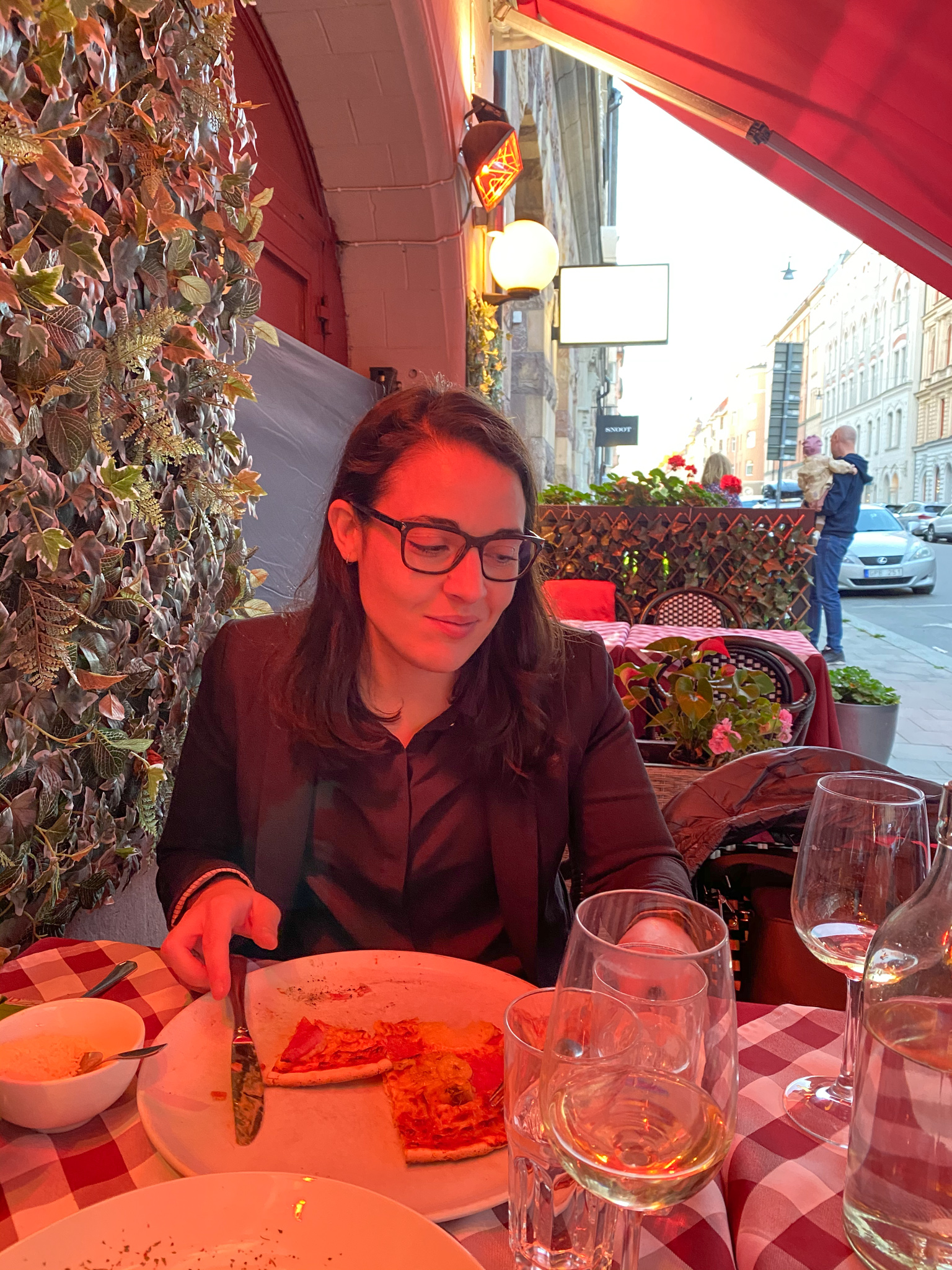 Jag hade ju planerat en dejt till oss kvällen till ära och jag tog henne till en restaurang jag älskar. Ciao Ciao på storgatan. Alla som jobbar där är så trevliga och maten ljuvlig. Sagt och gjort så gick vi dit. Jag tog en pasta och hon en pizza. Magiskt gott.