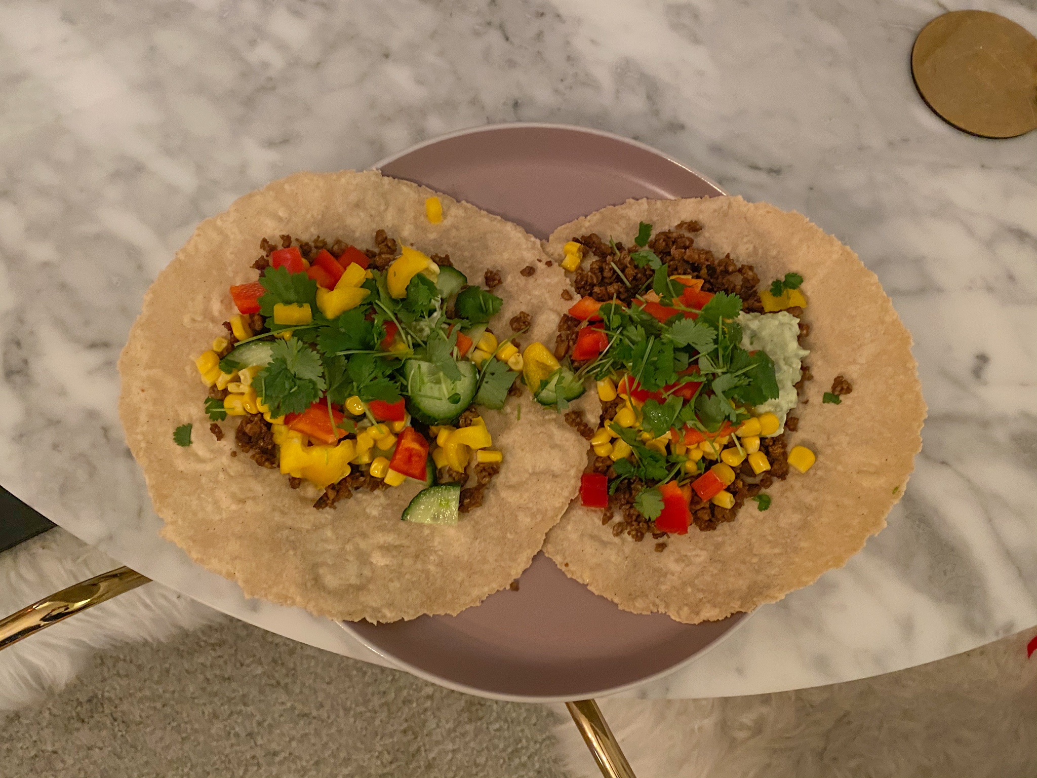 Det blev en tacomåndag med glutenfritt bröd Blev jobbmöte över video med bästa