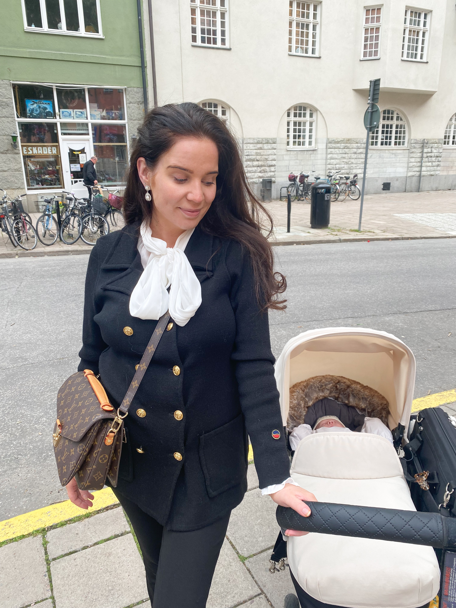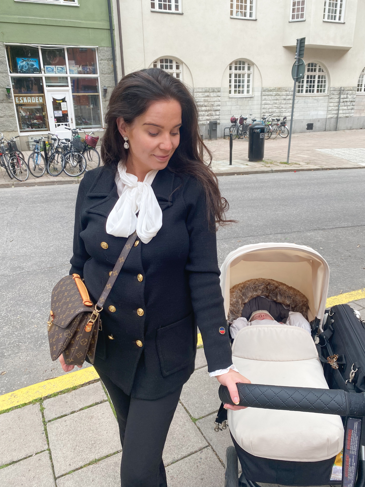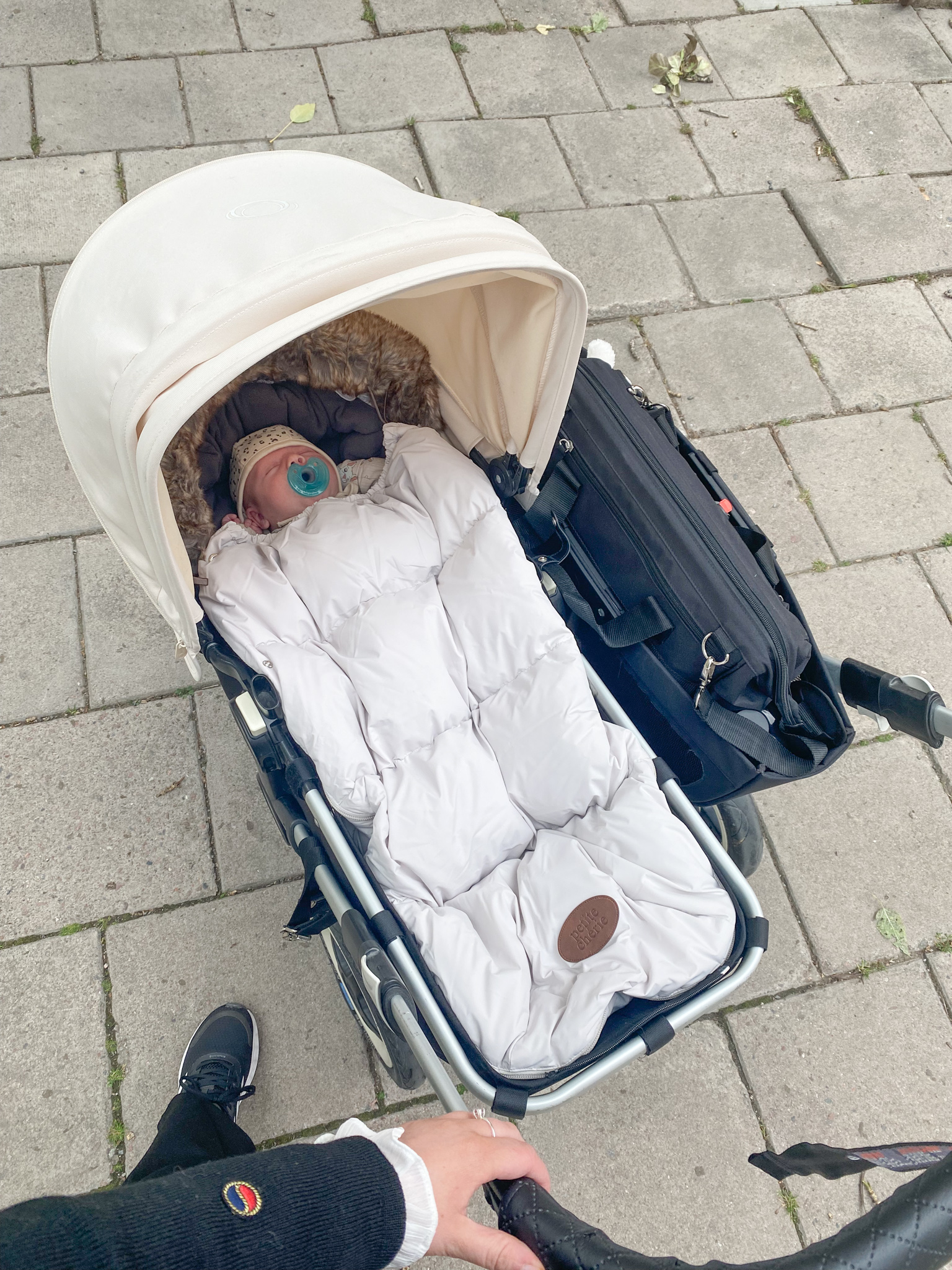 Denna åkpåse kommer från märket Petite Chérie, via Joollyroom. Den har en fluffig krage och varm stoppning. Med denna åkpåse kommer Leonard rullas fram med stil under kyliga dagar. Åkpåsen är universell och passar de flesta barnvagnarna på marknaden. Åkpåsen är av materialet polyester som är vind- och vattenavstötande. Fyllningen i locket består av en mjuk och värmande blandning av dun och baksidan av polyester. Åkpåsen har en dragkedja på vardera sida och man kan även plocka av ”locket” helt, vilket är väldigt bra om man är på shoppingrunda och det blir varmt.