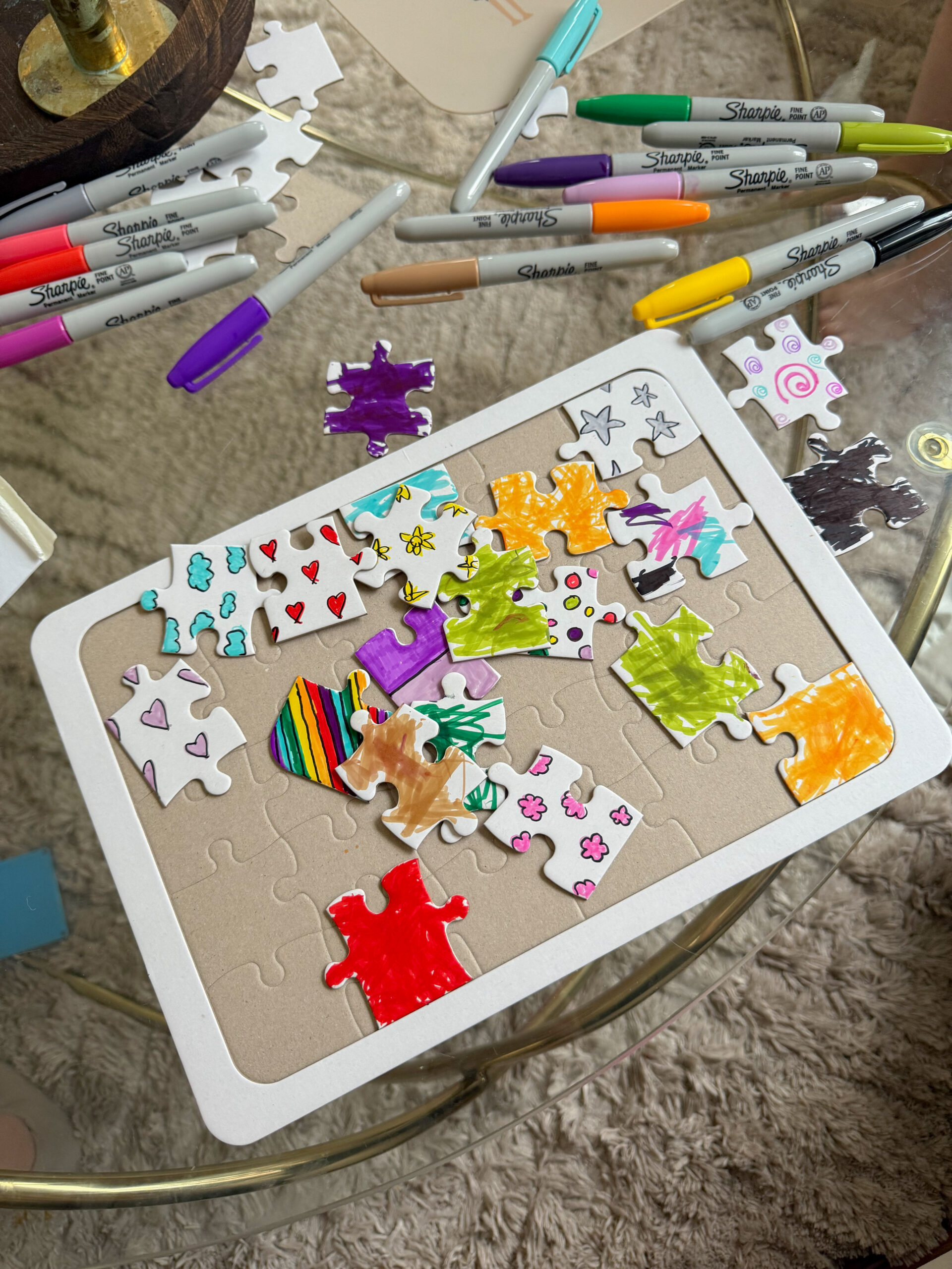 här är pusslet jag pratade om. Jag och Leonard hjälptes åt att färglägga dem.