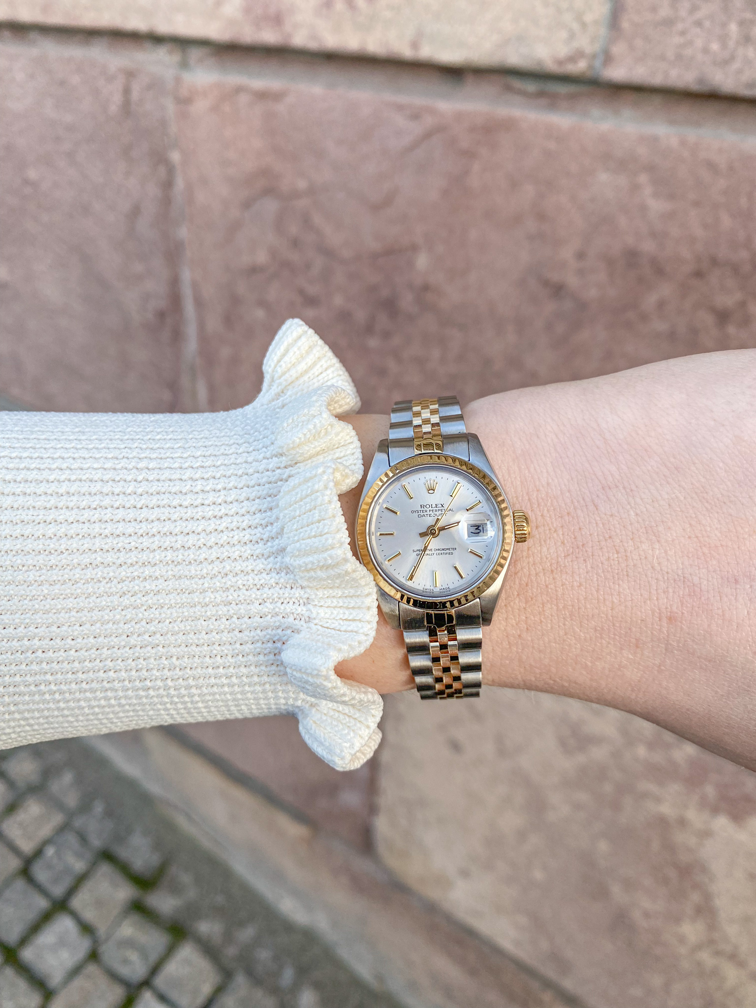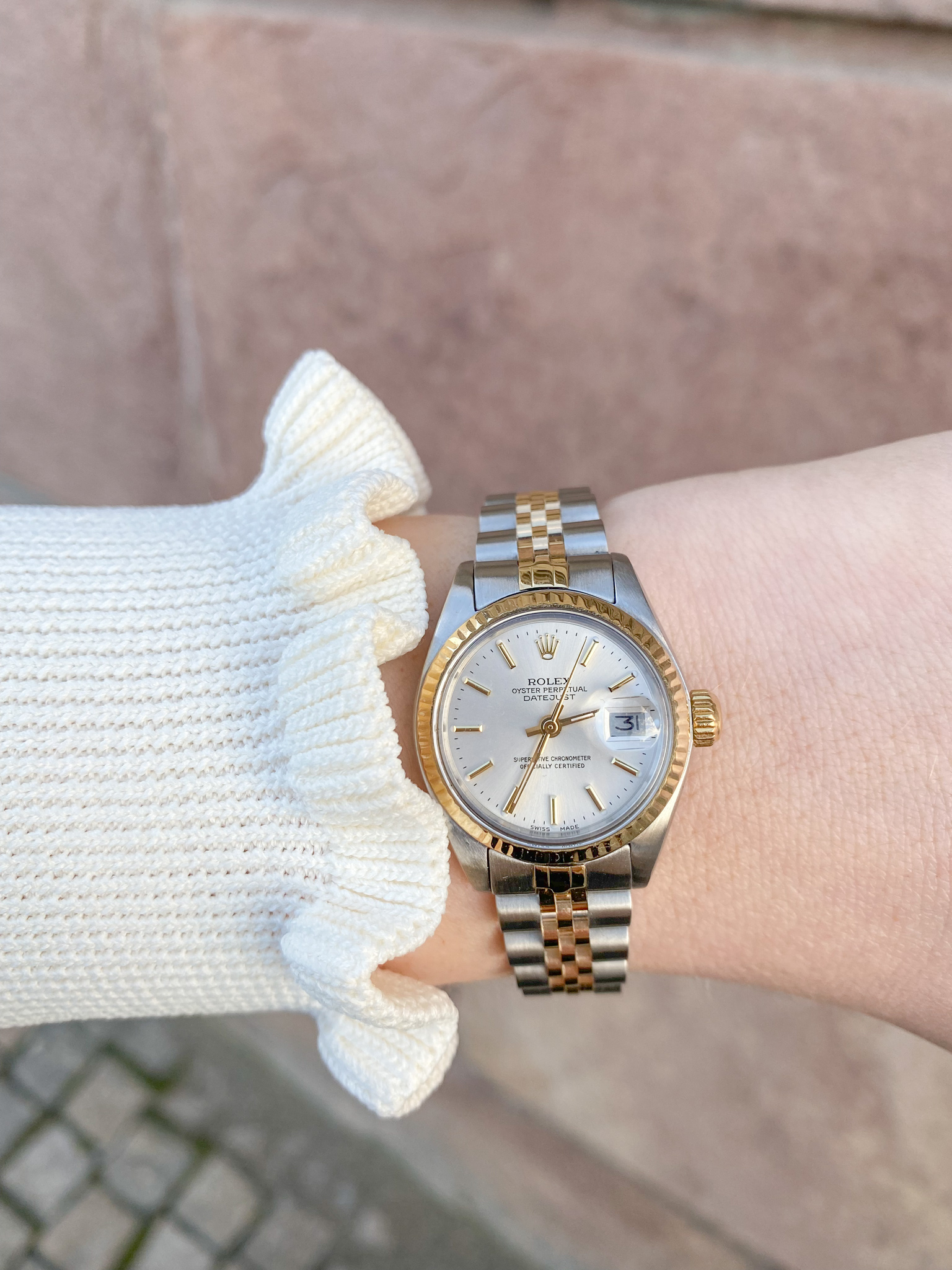 Ända sedan jag gick i gymnasiet har jag önskat mig en Rolex <3 Anledningen till att jag inte haft den i min ägo förrän nu är helt klart att jag prioriterat annat. Jag har lagt pengarna på Chanel, Gucci, lyxresor och andra kostsamma grejer. Men nu äntligen är jag en stolt ägare av en Rolex-klocka. Denna är av en modell ”Rolex Lady-Datejust 26mm” och passar min nätta handled perfekt. Som jag älskar den! Jag ser det som en liten försenad 30-årspresent samt ”push-present” hehe! Klockan kommer jag använda varje dag så länge jag bara kan. För mig är denna klocka mer än bara en tidvisare, det är ett fantastiskt fint smycke och mycket mer än så.