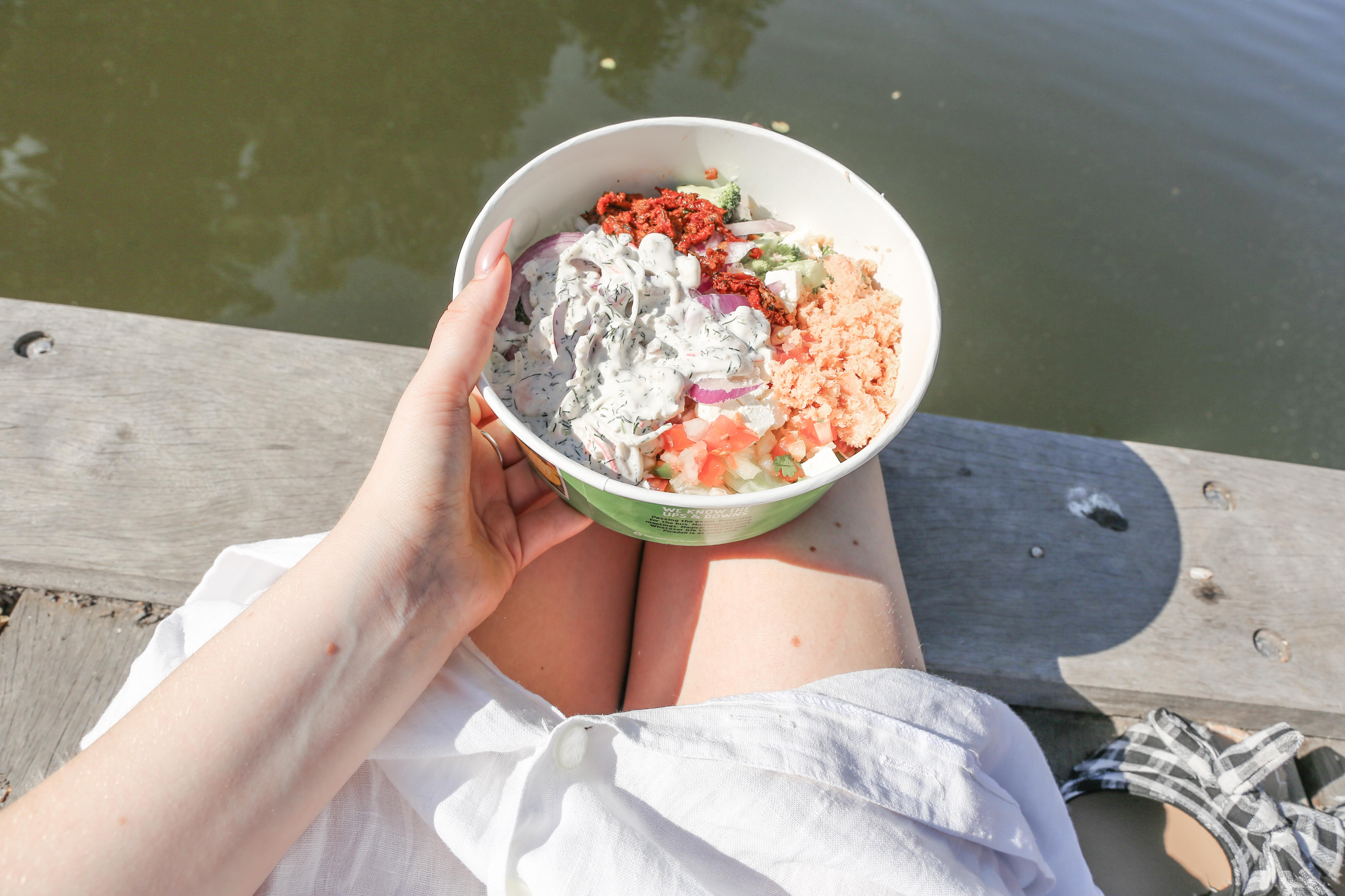 Så fort jag kom hem från kontoret lastade jag av alla grejer och bubbel som jag köpt till morgondagens fest. Efter detta traskade jag och hjärtat till Hemköp precis intill oss för att köpa sallad. Dessa ”heta” dagar orkar man inte laga mat (i alla fall inte vi hehe) så vi gjorde det enkelt för oss. Här satt vi i alla fall ett par timmar och bara njöt av de svala vindarna. Det är ju så underbart att få vara vid vattnet när det är såhär varmt.