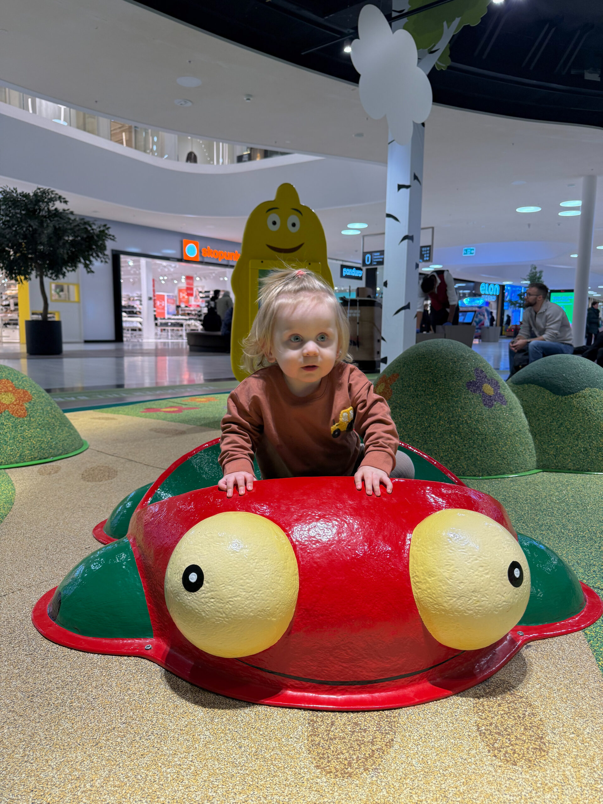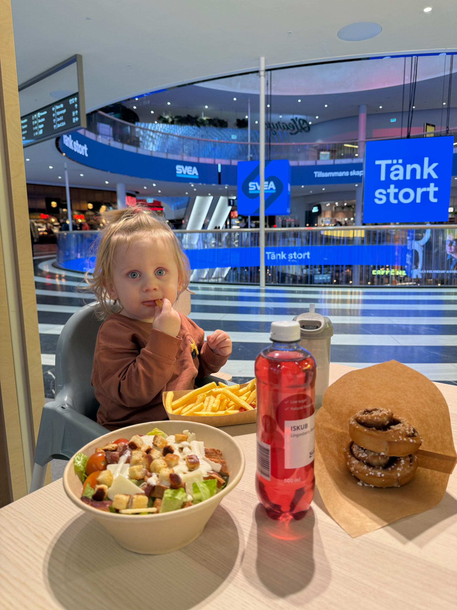Idag har jag och Bernard haft en heldag i Mall of scandinavia, eller vad gallerian nu heter. Högst oklart! Vi åkte strax efter lämning av Leonard i morse och vi har verkligen hunnit beta av hela stället. Vi började med att gå till det lilla Pippi leklandet på våning ett. Bernard älskar ju pippi så detta var ju verkligen en hit för honom. Hela MOS var liksom tomt av människor vilket uppskattades enormt för oss båda. Men något som utmanat mig idag är alla hissar… Hiss till och från garaget, hiss i samtliga butiker och hiss i gallerian för att nå de olika våningsplanen. Jag klarade av nästan alla men på Zara fick jag liksom backa ur när jag klev in, fick panik. Jag och B fick nöja oss med att kika på damavdelningen. Vi gick vidare till Ikea där vi shoppade lite nödvändigheter till hemmet. Köpte även lite lek och pyssel till barnen. Vi blev smått hungriga efter stros på Ikea så vi passade på att äta en lunch här. Timmarna gick och vi åkte hemåt strax innan 15. Vi gick både till lekrummet och babblarnas lekyta och Bernard hade så jätteroligt. Han skrattade, busade och sprang runt. Dagarna med honom är verkligen helt fantastiska. Jag fyllde på med kaffe var och varannan timme haha.