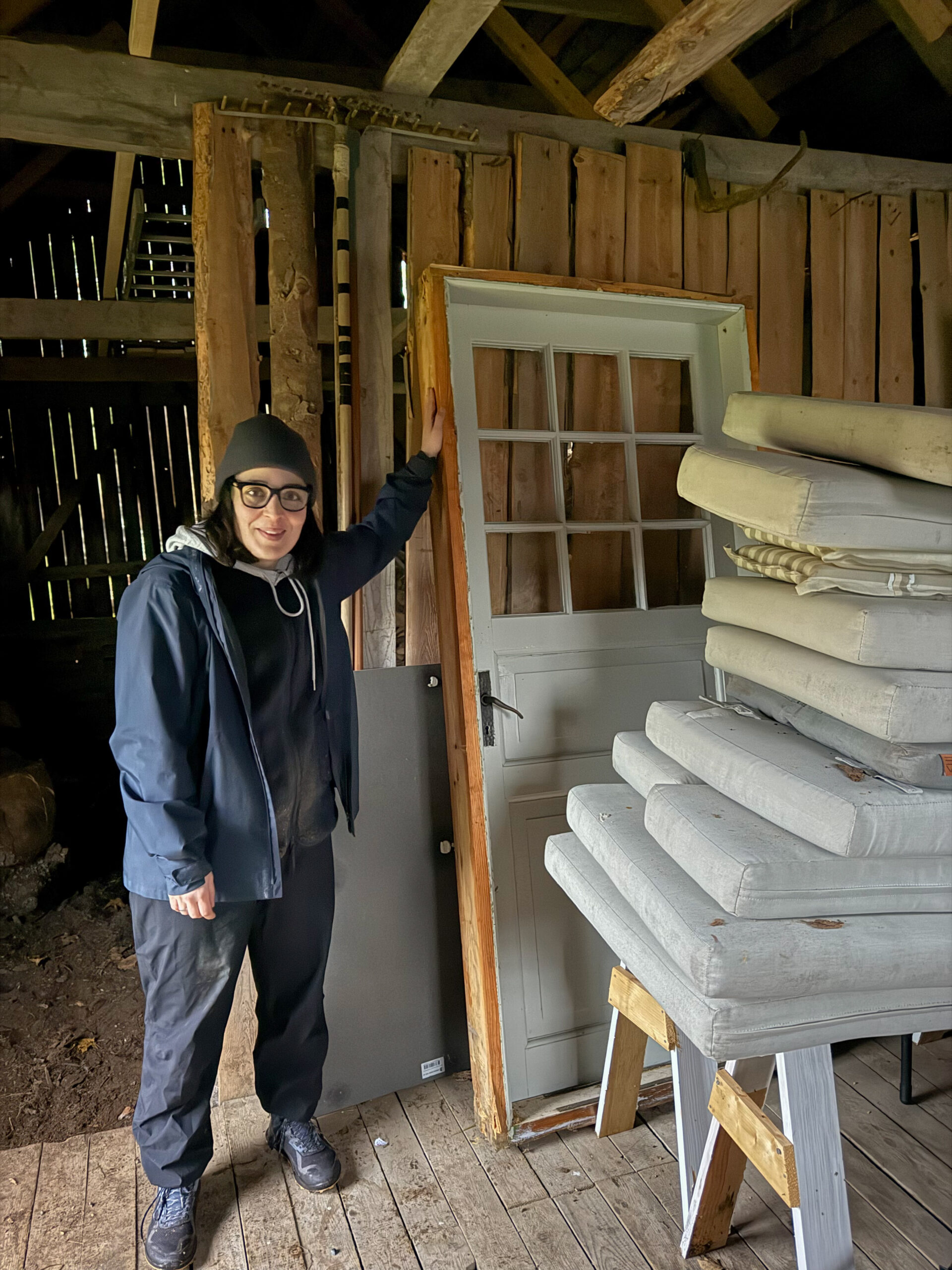 gamla dörren får stå i ladan innan den ska få sin nya plats