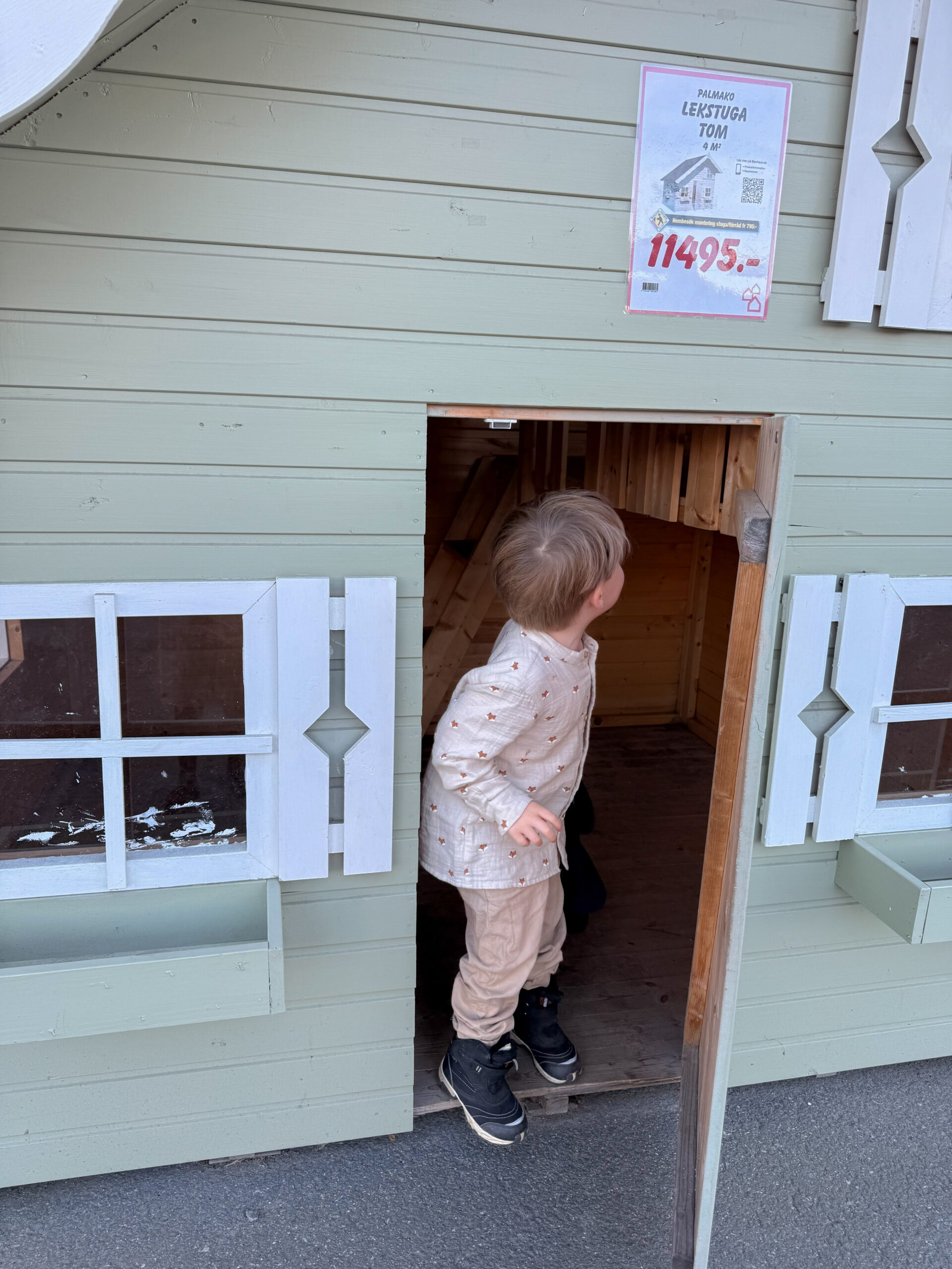 Vi åkte därefter till Järfälla för att uträtta ärenden till villan. Vi tänkte att detta skulle ske i en ”handvändning” men det slutade med att vi var hemma strax innan 18.. Vi fastnade på Bauhaus för att kika på lekstugor till barnen. Men vi ville ha en större än vad dem hade i deras utbud. Önskemålet är en Madicken stuga eller en liknande. Leonards krav är att stugan ska ha ”fönster på taket” och ett sovloft hehe. Vi får se vaf vi hittar. Det känns lite ”off season” att köpa en lekstuga nu, men deras önskan är min lag.