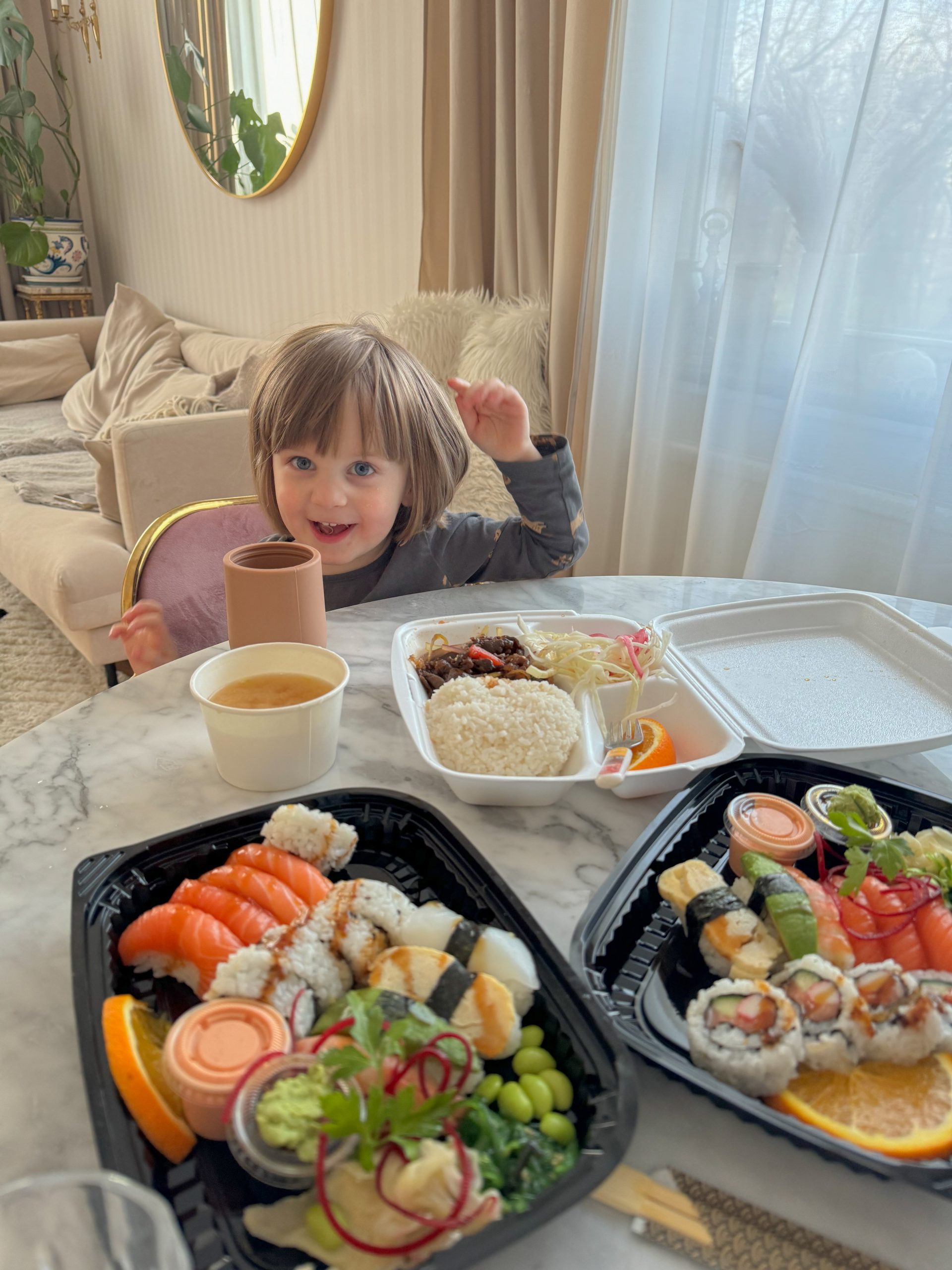 …och även sushi. Igår beställde vi hem en massa goda bitar till familjen.