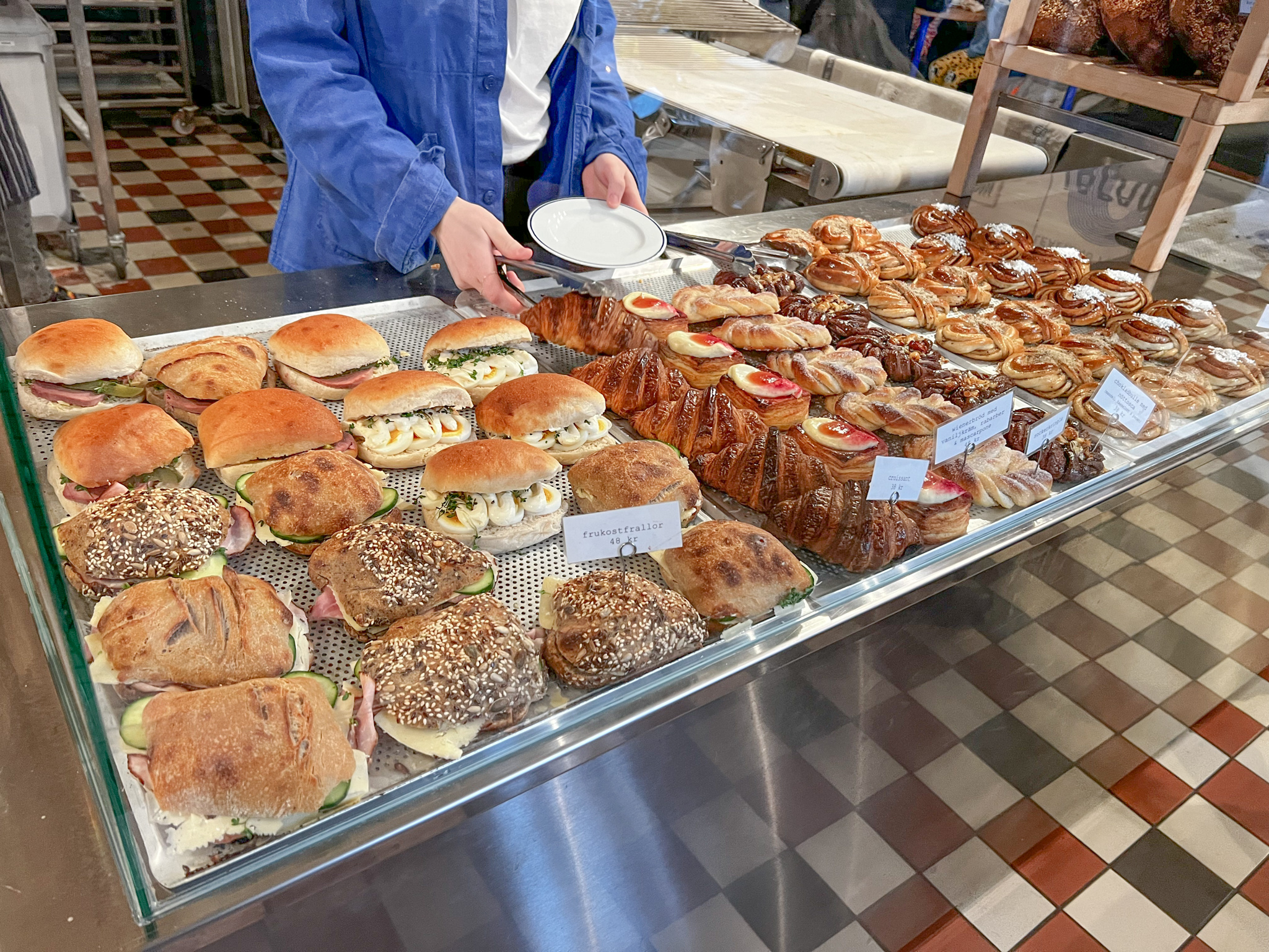 Ännu en dag med snöstorm här i Stockholm! Jag kan inget annat än att skratta. Jag känner mig lite snuvad på våren om jag ska vara ärlig. I morse tog jag en taxi till Sibyllegatan där jag mötte upp Patricia för frukost. Vi gick till bageriet kallat ”det stora bageriet” och detta ställe hittar ni snett bakom dramaten. Vi slogs av doften nybakat när vi öppnade dörren till bageriet. Finns väl inget som är så underbart som detta. Vi beställde en varsin fransk frukost. Var så sugen på en croissant så det fick det bli med tillhörande ost och marmelad. Så gott!