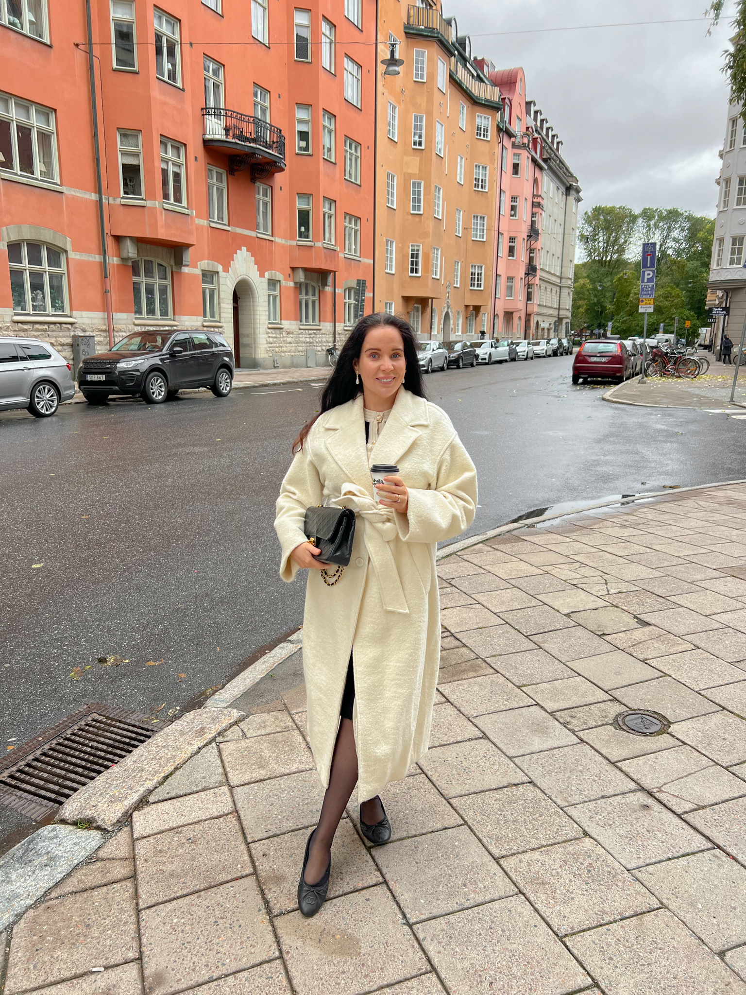 Igår och idag har det varit SÅ grått ute så jag har försökt att kompensera det med ljusa plagg och omringats av härliga byggnader i färger hehe. Min fina kappa jag har här nedan kommer från Mq Marqet och det är SÅ varm, fodrad och fin tycker jag. Tips att spana in!