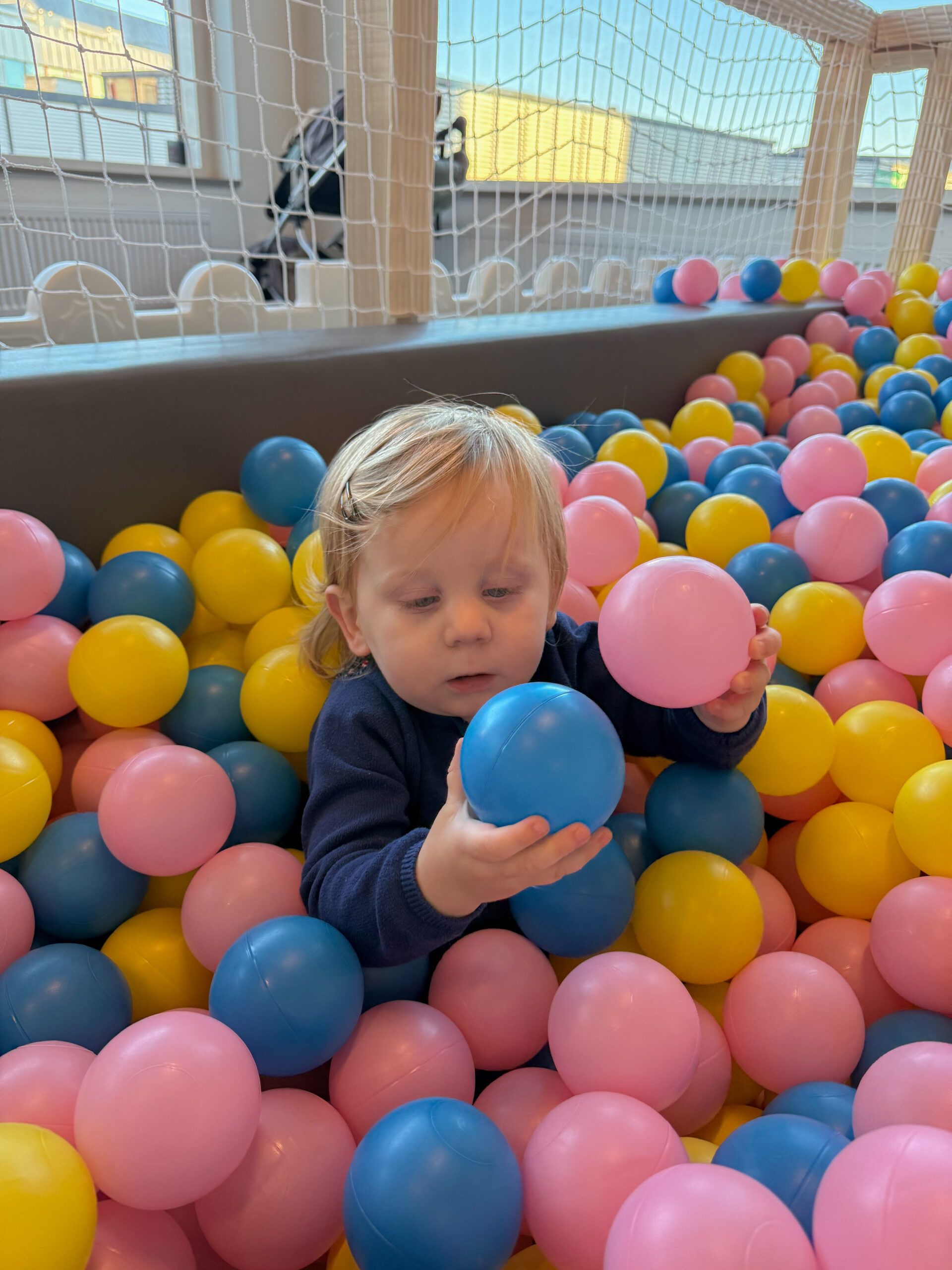 Bernards absoluta favorit var bollhavet. Det tog ungefär tre sekunder innan han dök rakt ner i det. Han älskade att kasta bollarna, sprattla med benen och åka rutschkanan ner i havet. Både han och min väns dotter hade så roligt tillsammmans. Det var en sådan rolig aktivitet och det passade deras ålder perfekt.