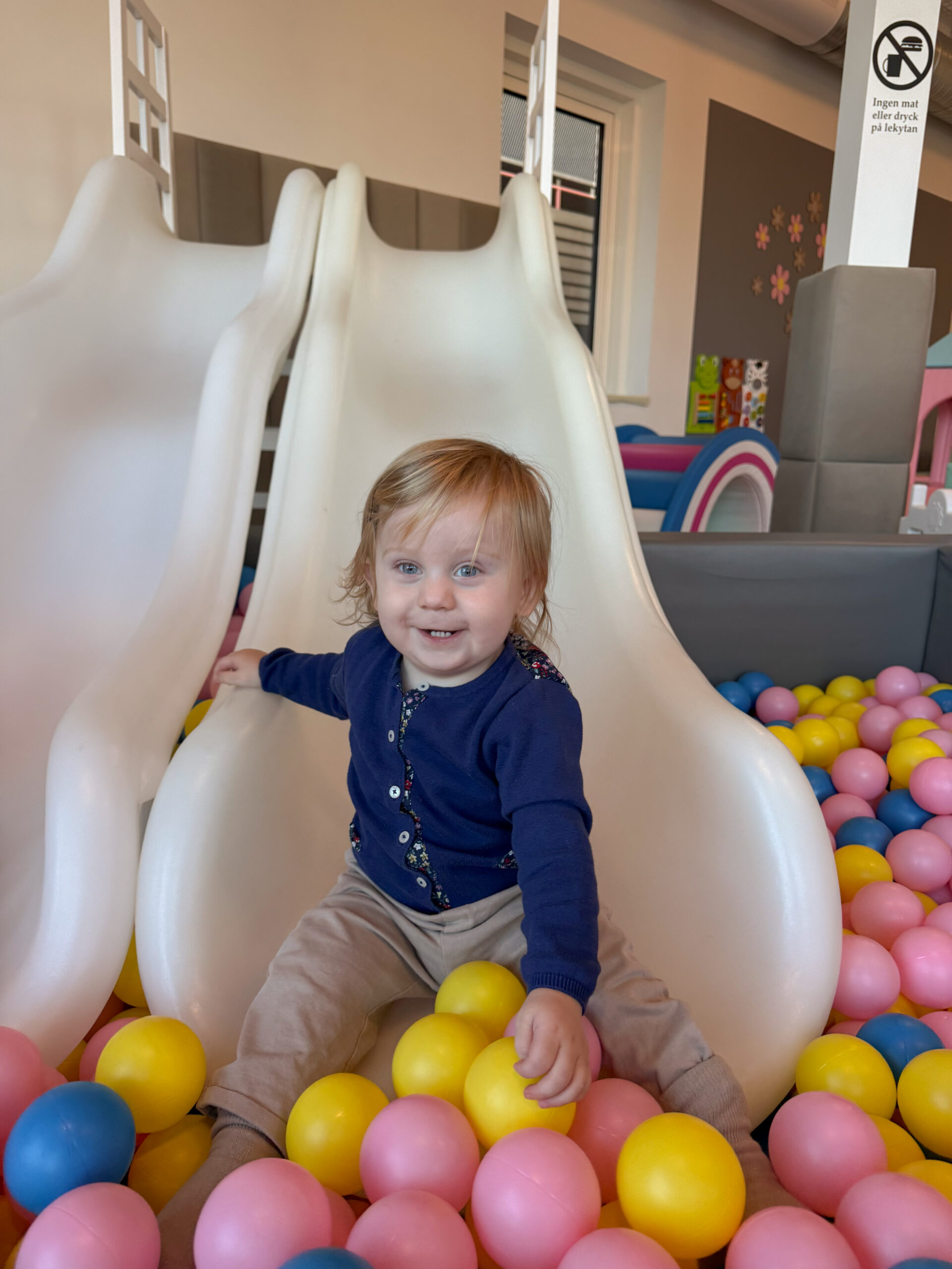 Glädjefyllt är ett soft play-lekrum och öppet varje dag för drop-in. Det kostar 130 kronor per lekande barn och lektiden är tre timmar från att man kliver in. Perfekt längd om du frågar mig, barnen hinner leka av sig ordentligt utan att bli helt slutkörda. Stället är anpassat för just små barn och det märks verkligen. Vi mammor kunde sitta och ta en latte medan barnen lekte. Eftersom stället är litet ser man överallt. Det var så lugnt där idag vilket uppskattades. Det var bara vi och ett barn till. Kändes som att vi hade abonnerat hela stället hehe. Jag tänker fortfarande på Bernard i bollhavet, det var verkligen hans höjdpunkt. Ett perfekt ställe för dagar när man vill hitta på något enkelt, roligt och lagom intensivt.