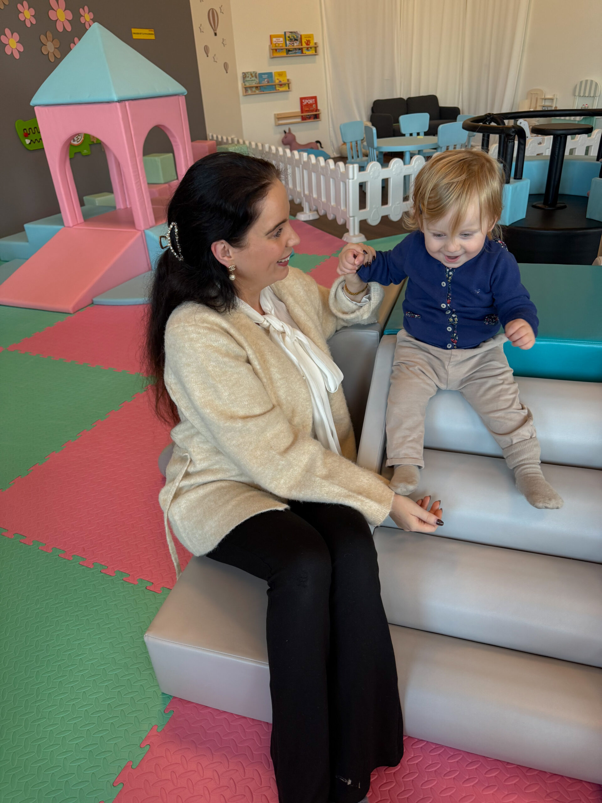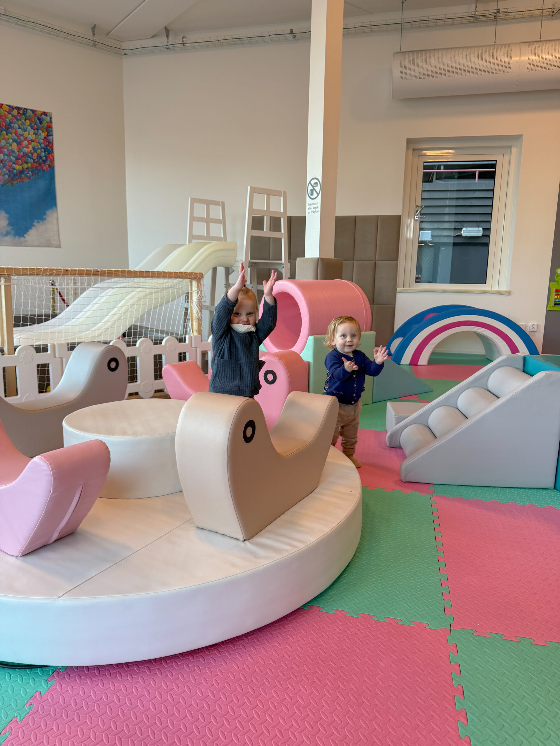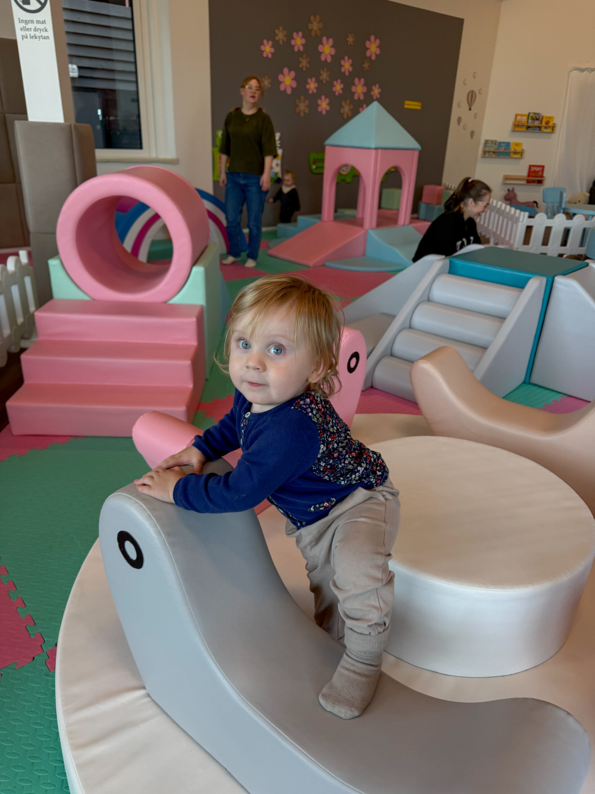 Idag efter lämning av storebror åkte jag och B till Liljeholmen för att möta upp min vän och hennes dotter. Vi styrde sedan vagnarna mot Glädjefyllt i Liljeholmen. Det var vår allra första gång där, och jag kan säga direkt: vi kommer definitivt tillbaka. Det är något så härligt med att hitta ett lekställe som känns både tryggt, rent och lagom stort för små barn. Det var så lagomt för våra små.