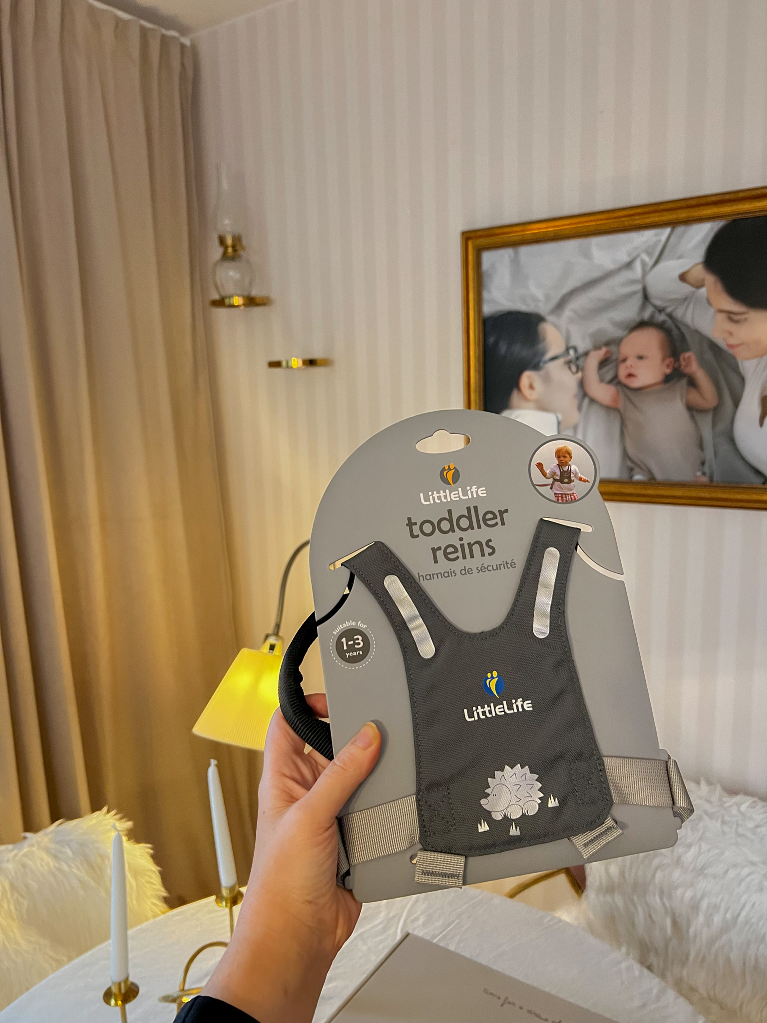 Denna lilla mackapär kommer bli perfekt inför alla kommande resor. Detta är nämligen en sele med rem som är perfekt att ha på det lilla barnet i folksamlingar. Toppen på en flygplats tycker jag 🙂
