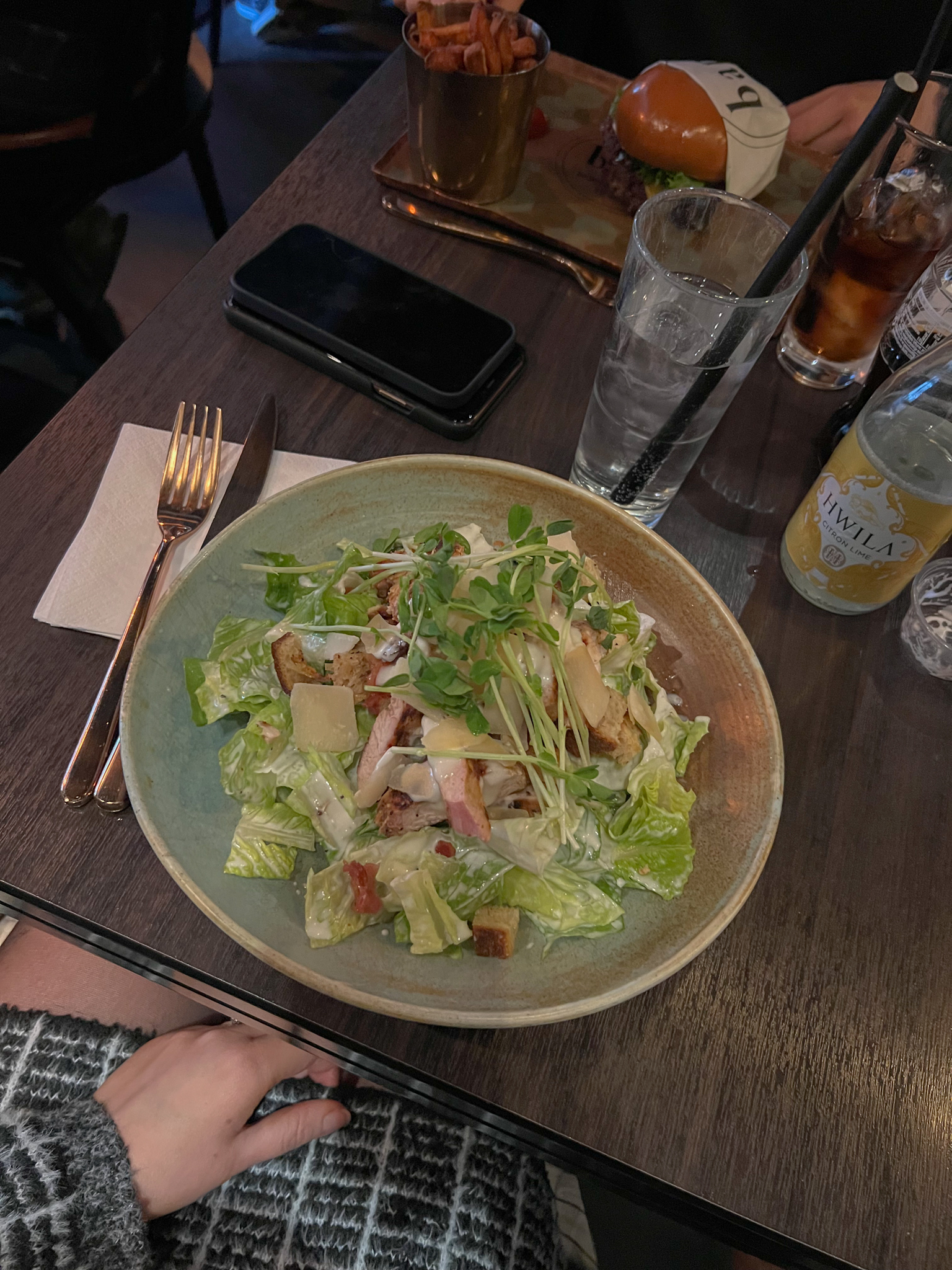 Vilken iskall, men fin dag jag haft idag. Idag invigde jag till och med strumpyxorna och då vet man att det är höst på riktigt. Trots ett mjukt stickat set och trenchcoat på så frös jag så galet mycket. Detta blir som en liten påminnelse till mig själv att investera i BRA och varma höst ytterplagg. Hur som helst så tog jag mig en sväng till Sturegallerian för att uträtta lite ärenden. Jag behövde fylla på med det ena och det andra. När klockan slog lunch så mötte jag upp min älskling för lunch tillsammans. Jag tog henne till bap Burgers som är Sveriges bästa och mest populära hamburgerställe. Jag var dock mer sugen på deras ceacarsallad så det fick det bli för mig. All deras mat är god så jag rekommenderar en lunch där. Bap finns på Linnégatan här i Stockholm.