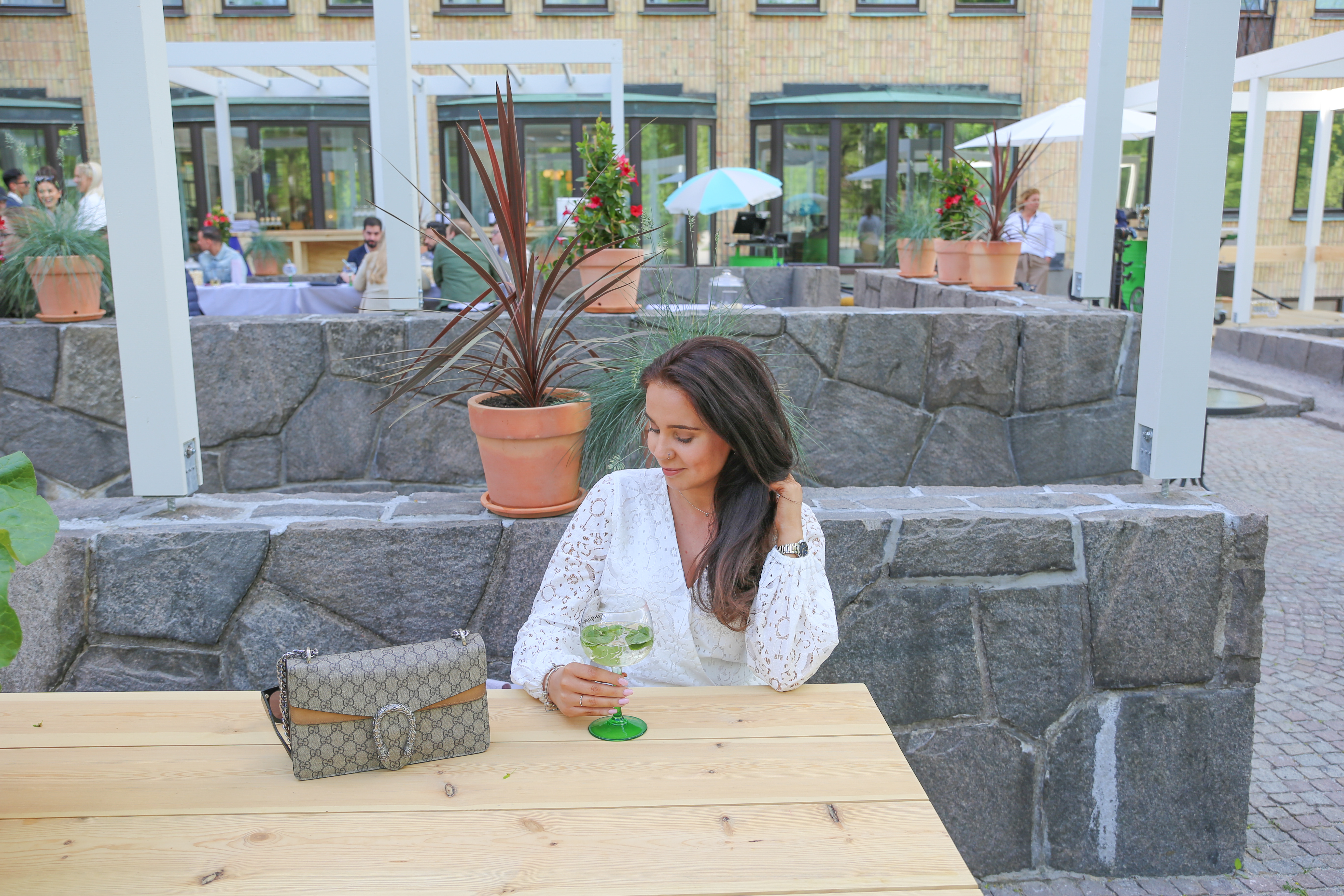 Vilken pangeftermiddag jag och min donna hade igår 🙂 Vi startade vår eftermiddag hos ”familljen” Gió och deras underbara helt nya terass. Syftet med eftermiddagen var egentligen att jag och ett litet gäng skulle ställa upp som modeller för hotellet, men det blev ju så mycket mer än bara det. Vi åt en massa fantastisk god plockmat, drack drinkar, bubbel och bara umgicks. Träffade så mycket nya och härliga människor och det är ju detta som är det absolut roligaste med dessa typer av events. Fotograferingen gick ju superbra och hela upplägget var så roligt 🙂 Väl på plats passade jag även på att testa deras drink lista och förutom Aperól som är en stående favorit så fick jag en annan, ”HUGO”. Denna drink innehåller allt det som jag älskar. Mums!