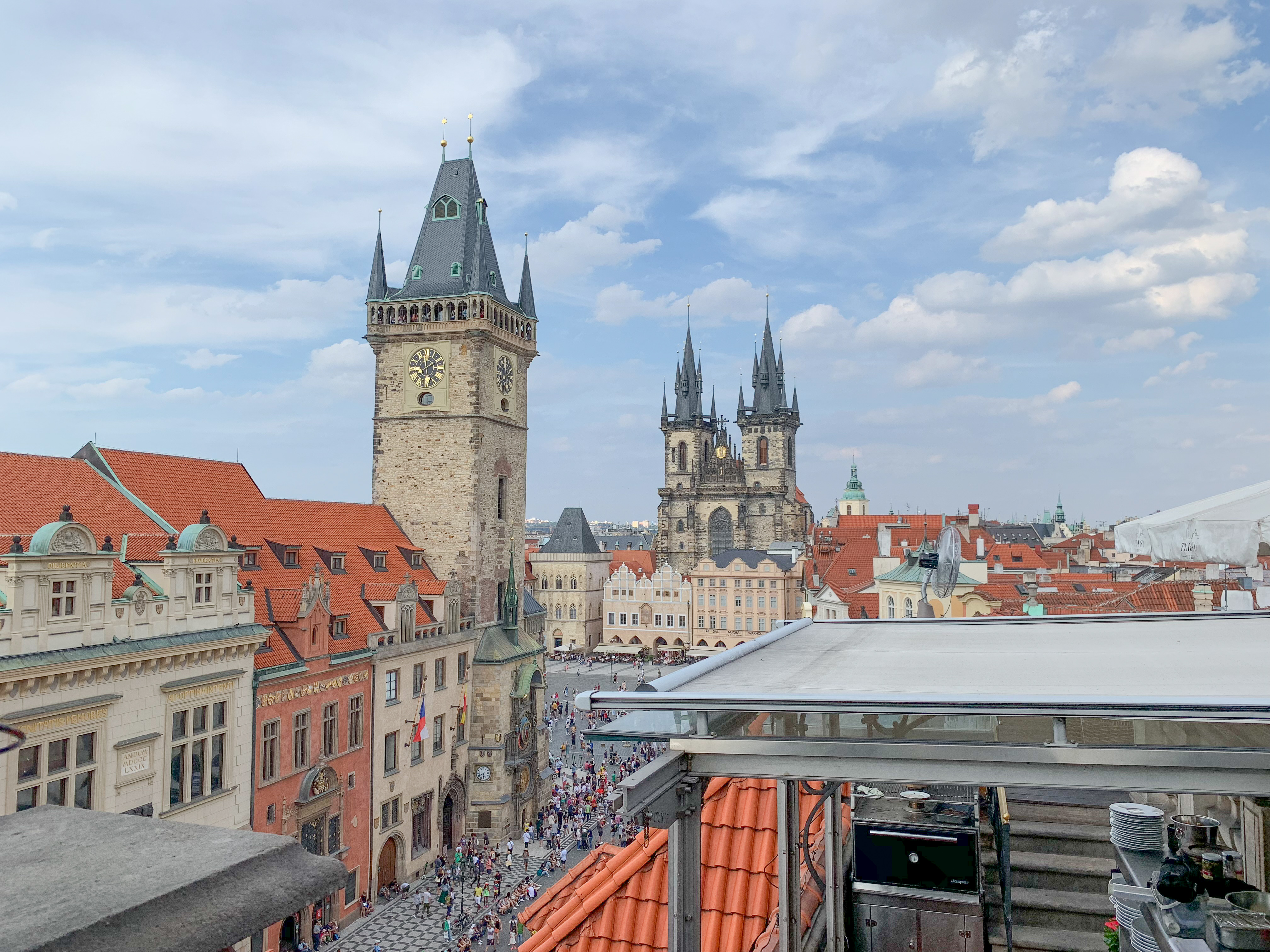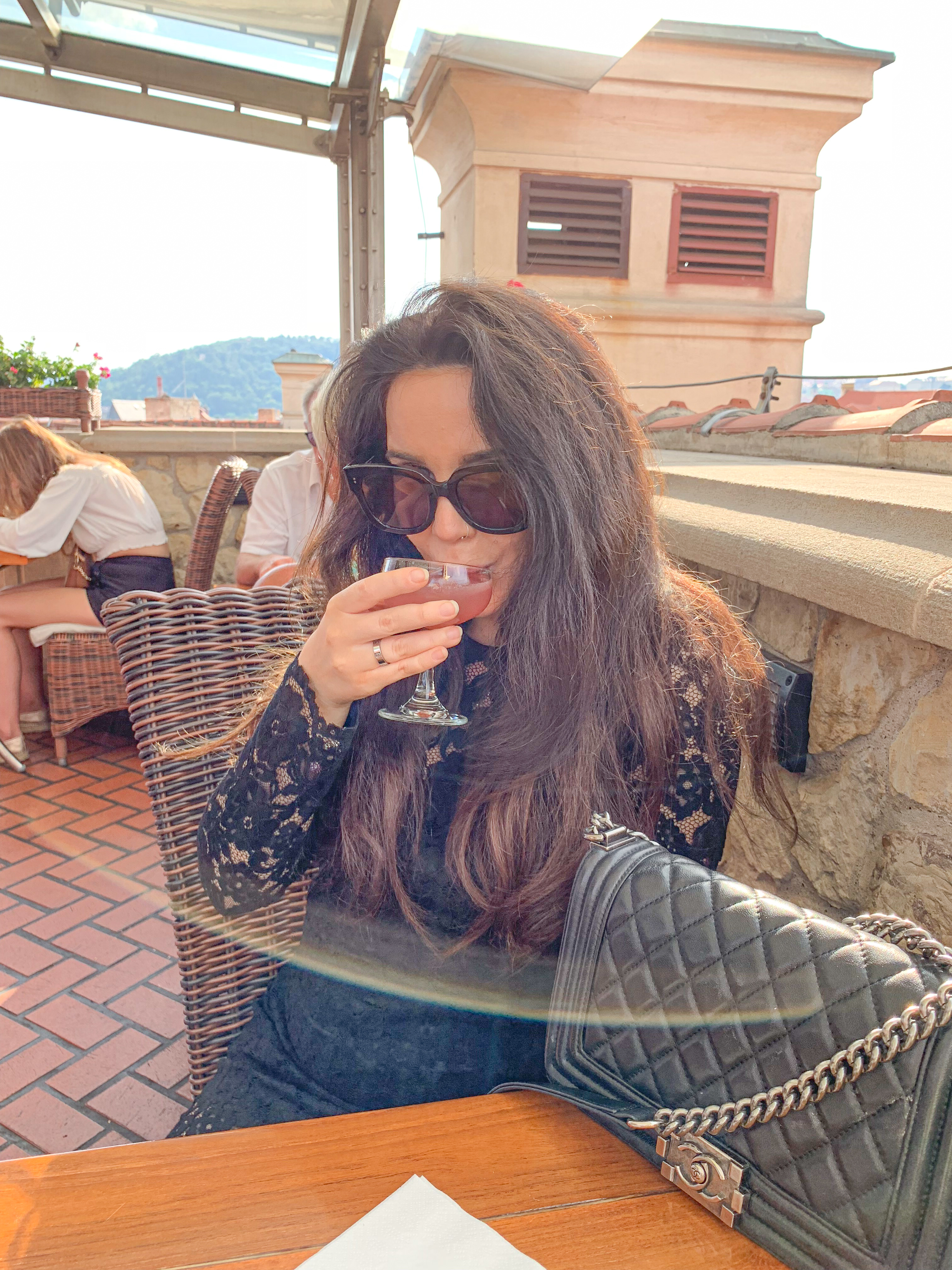Söker ni efter den BÄSTA takbaren i Prag så kommer här ett tips. Jag har inte varit på alla takbarer (såklart), men det räcker med att besöka denna underbara. Hotellet heter U prince och terassen ”Terasa U Prince”. Boka helst bord INNAN ni planerar in er resa till Prag. Vi bokade till och med VIP-bordet för att försäkra oss om BRA platser och ett bord med utsikt. Kravet för att boka ett VIP bor är att man handlar mat/drinkar för 1000 kr per person. Här drack vi bara drinkar innan vi gick vidare till restaurangen, men mer om det senare.