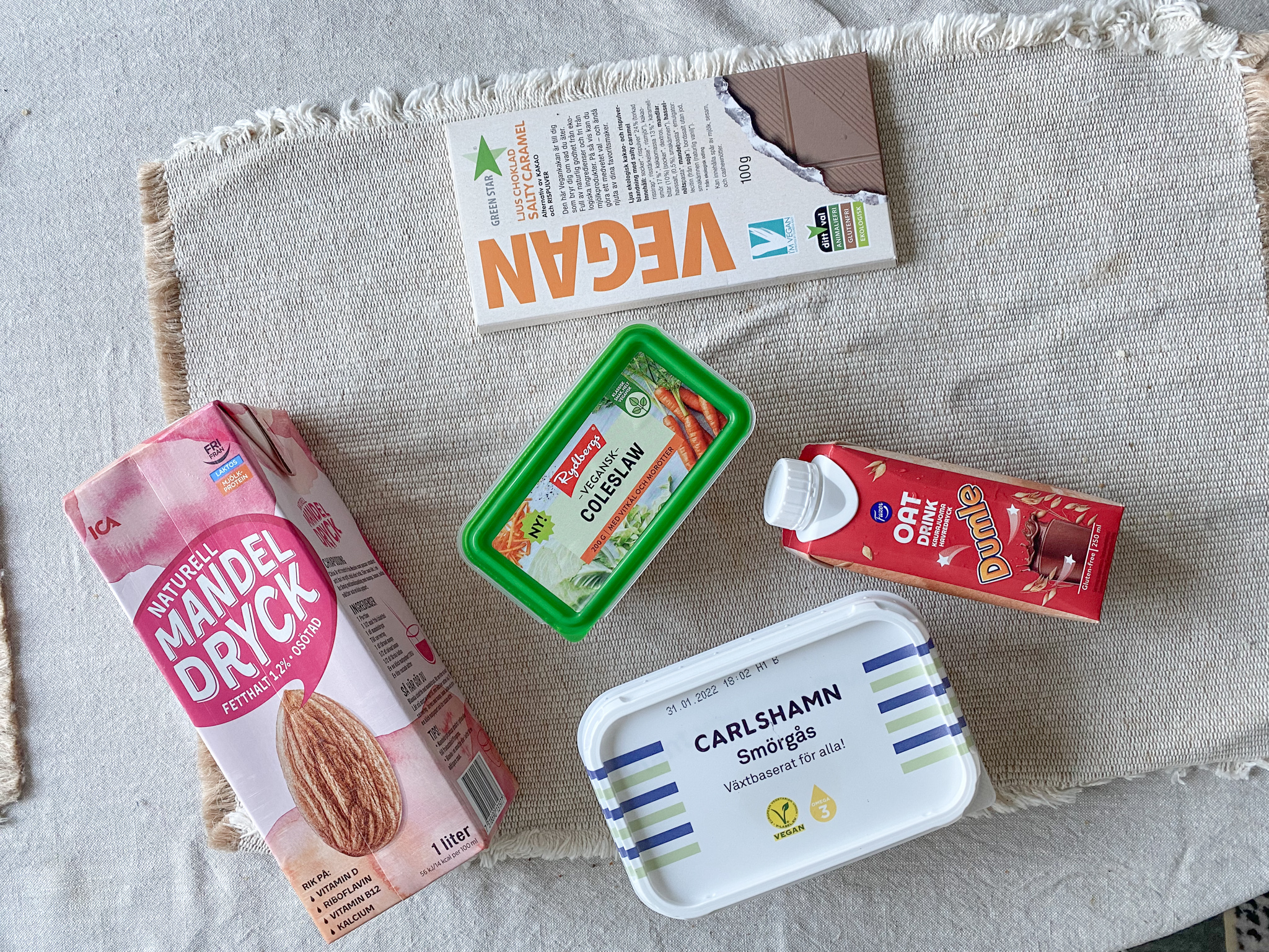 Köpte lite veganska alternativ idag! Vi har bytt ut allt nu. Ska bli så spännande att testa osten på mackan i morgon till frukosten 🙂
