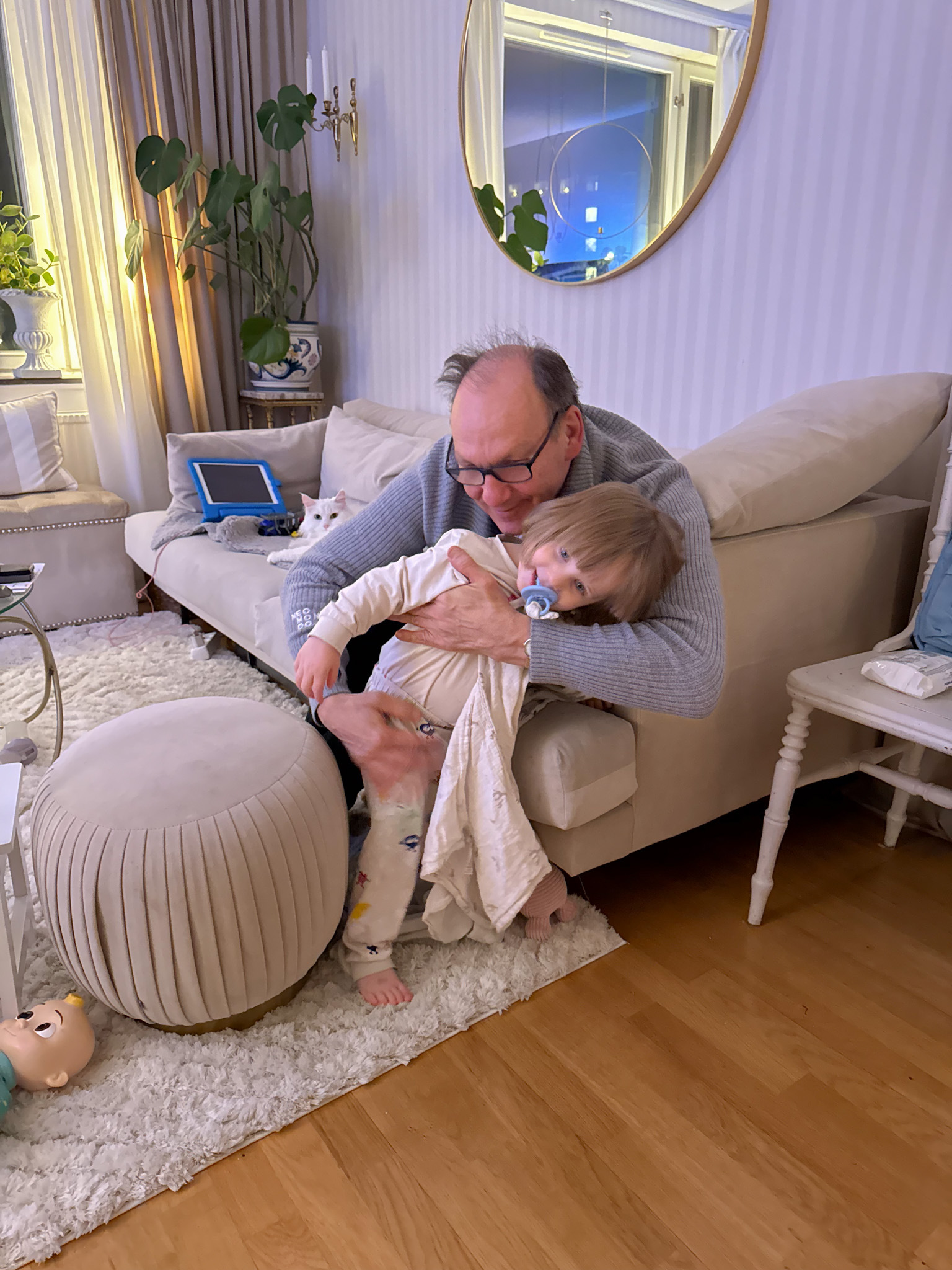 I måndags kom morfar Mikael (min pappa) på middag hos oss. Leonard älskar att ha mormor och morfar här. Ser ni katten i bakgrunden? hehe