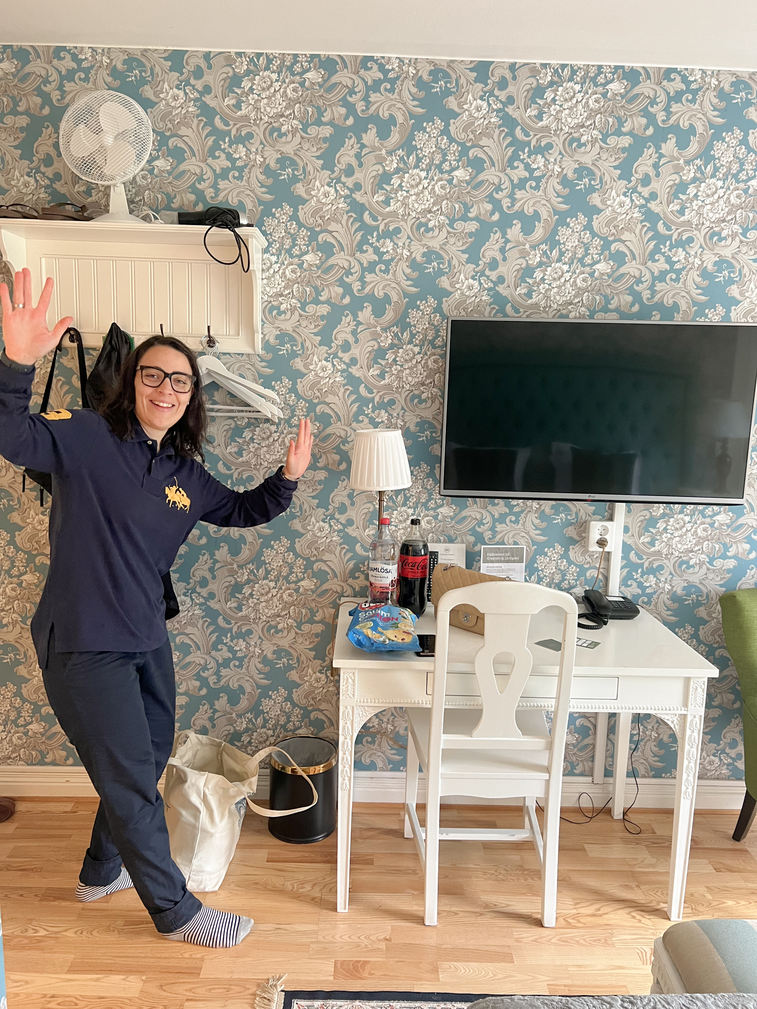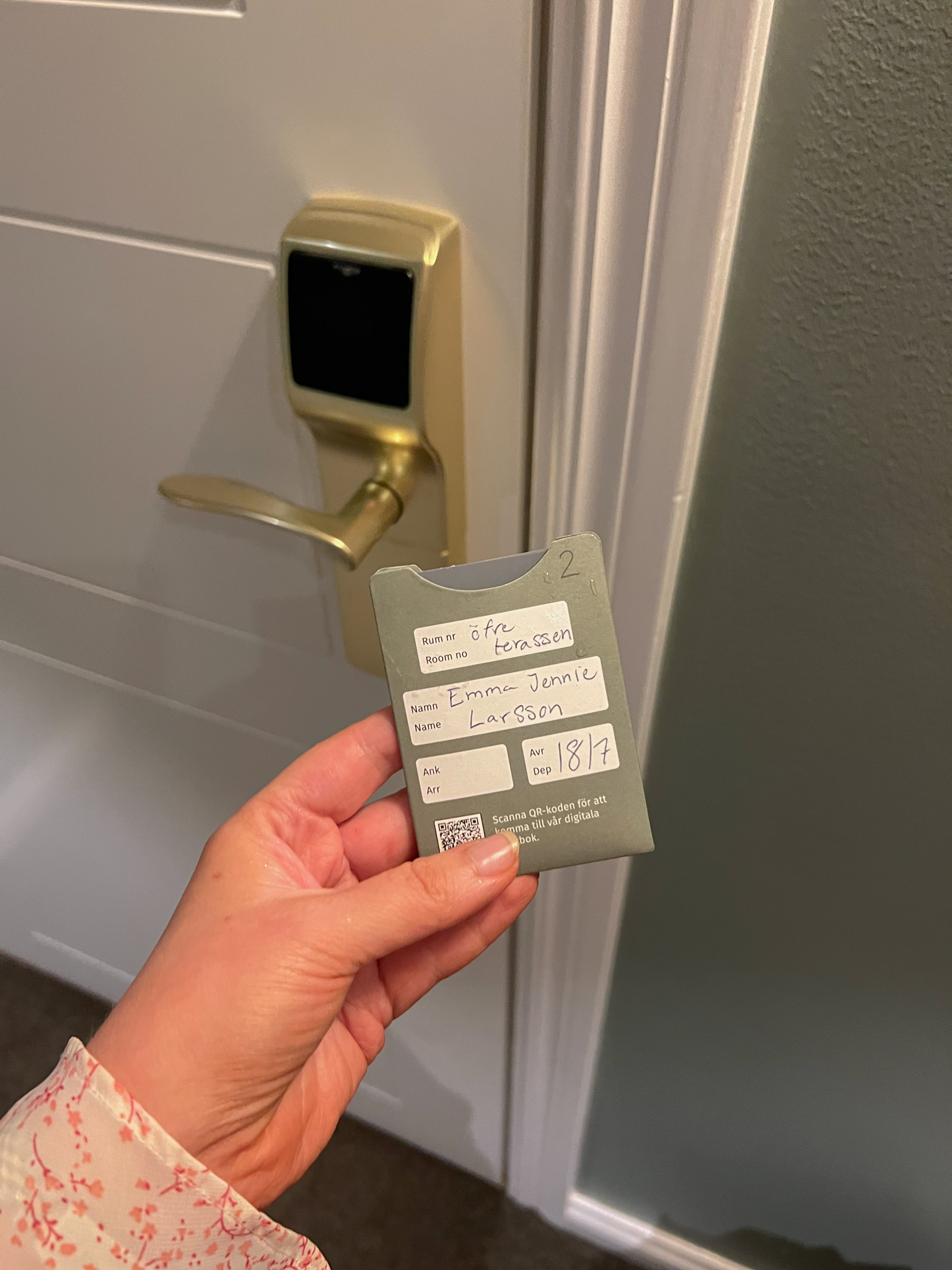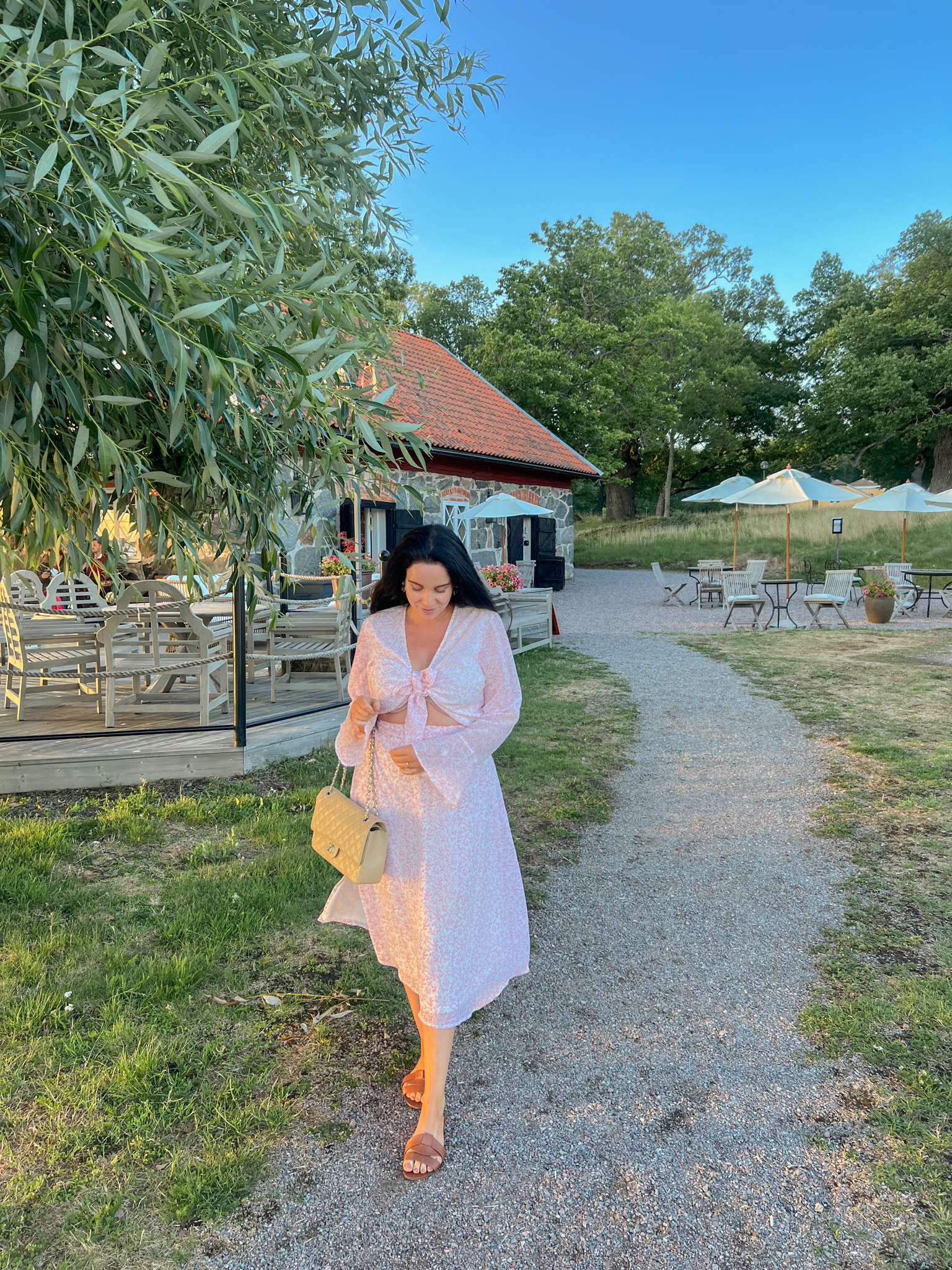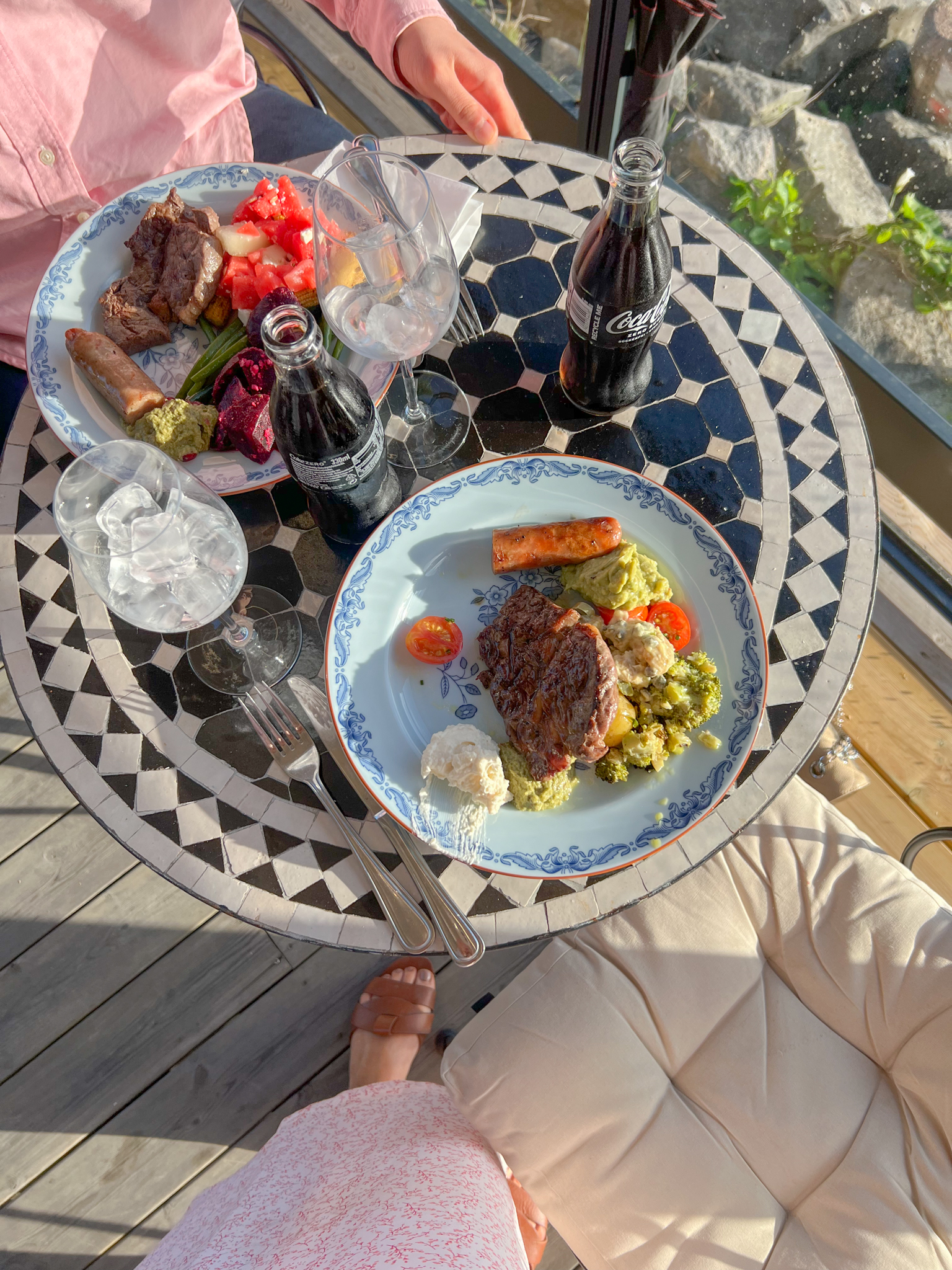Igår när vi checkade in så började vi med att gå en rund runt gården. Vi passade även på att gå deras tipspromenad med massor av olika frågor i olika kategorier. Till min förvåning gick det riktigt bra för oss. Av 16 frågor fick vi en eller två fel. Efter tipspromemaden tog vi en kaffe på vår balkong. Vi bor i rummet ”Öfre Terassen” och jag kan varmt rekommendera detta rum!! Så vackert med utsikten från balkongen. Framåt kvällen gjorde vi oss i ordning för dagens middag, grillbuffé nere på bryggan. Här kunde man välja mellan massa olika mat. Jag tog entrecote denna gång. Jag brukar aldrig beställa in kött på restaurang, men det doftade så gott från grillen så jag var bara tvungen. Vi satt i en sådan mysig atmosfär ute på bryggan och bara njöt. Om ni besöker Krusenberg herrgård så måste ni testa grillbuffén! Efter massa mat och efterrätt traskade vi tillbaka till rummet och såg på film! Vilken dag.