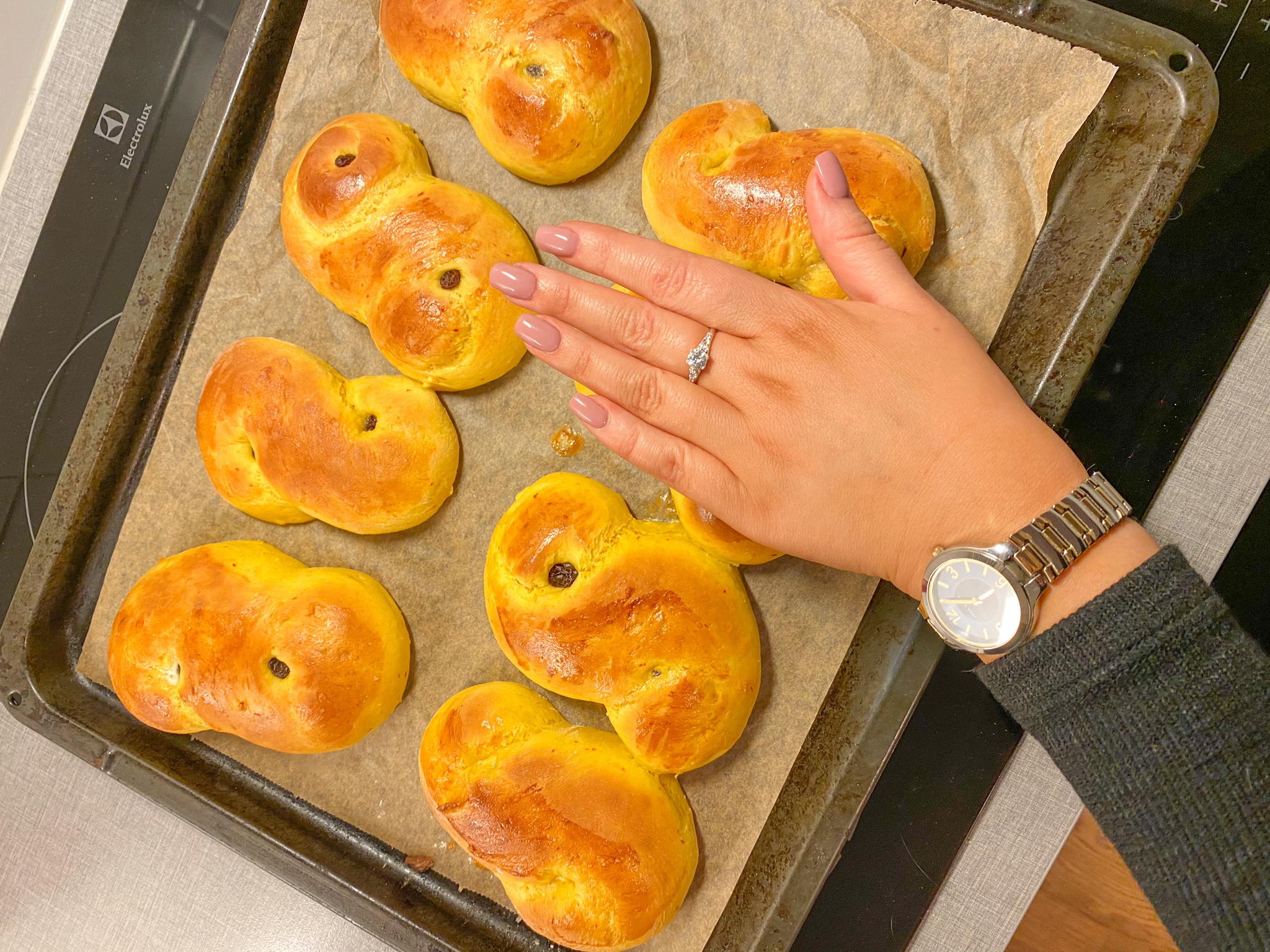 Efter brunchen började julbaket! Jag var så sugen på lussebullar så det var först ut. Kan inte förstå hur stora dem blev dock? Jag trodde såklart att dem skulle svälla lite, men inte så här mycket! Hur som helst så blev dem så smarriga och vi är nöjda med insatsen. Till en varm kopp glögg och lussebullar kollade vi den senaste Beck filmen. Sån mysig dag med alla!