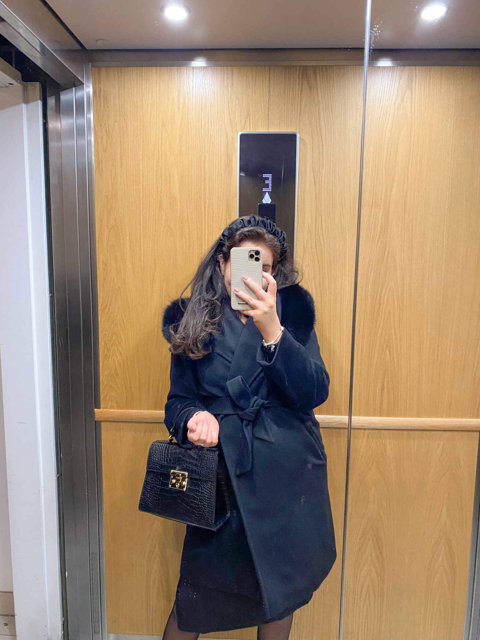 Klädd i min älskade kappa från Max Mara och väska från Latalia