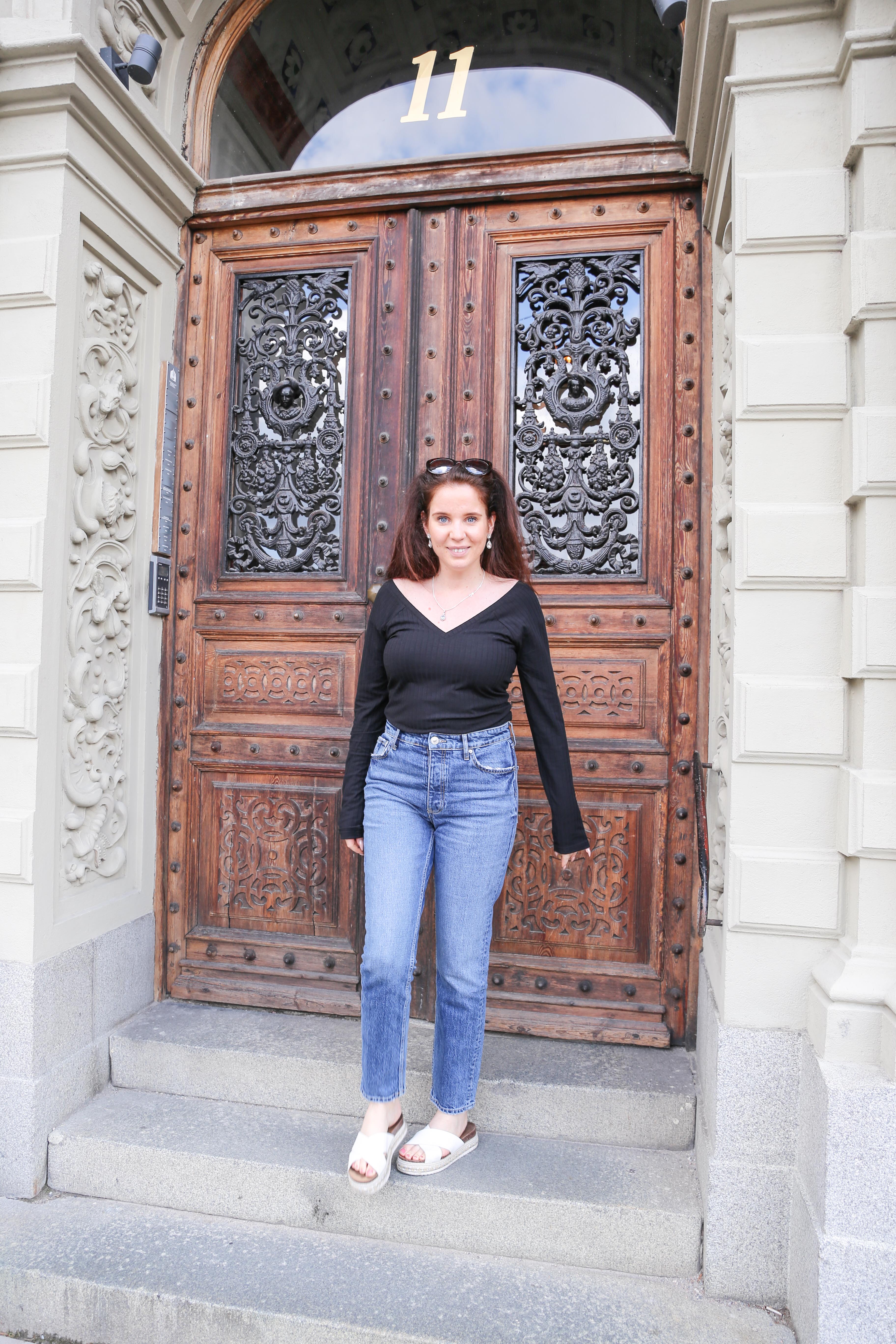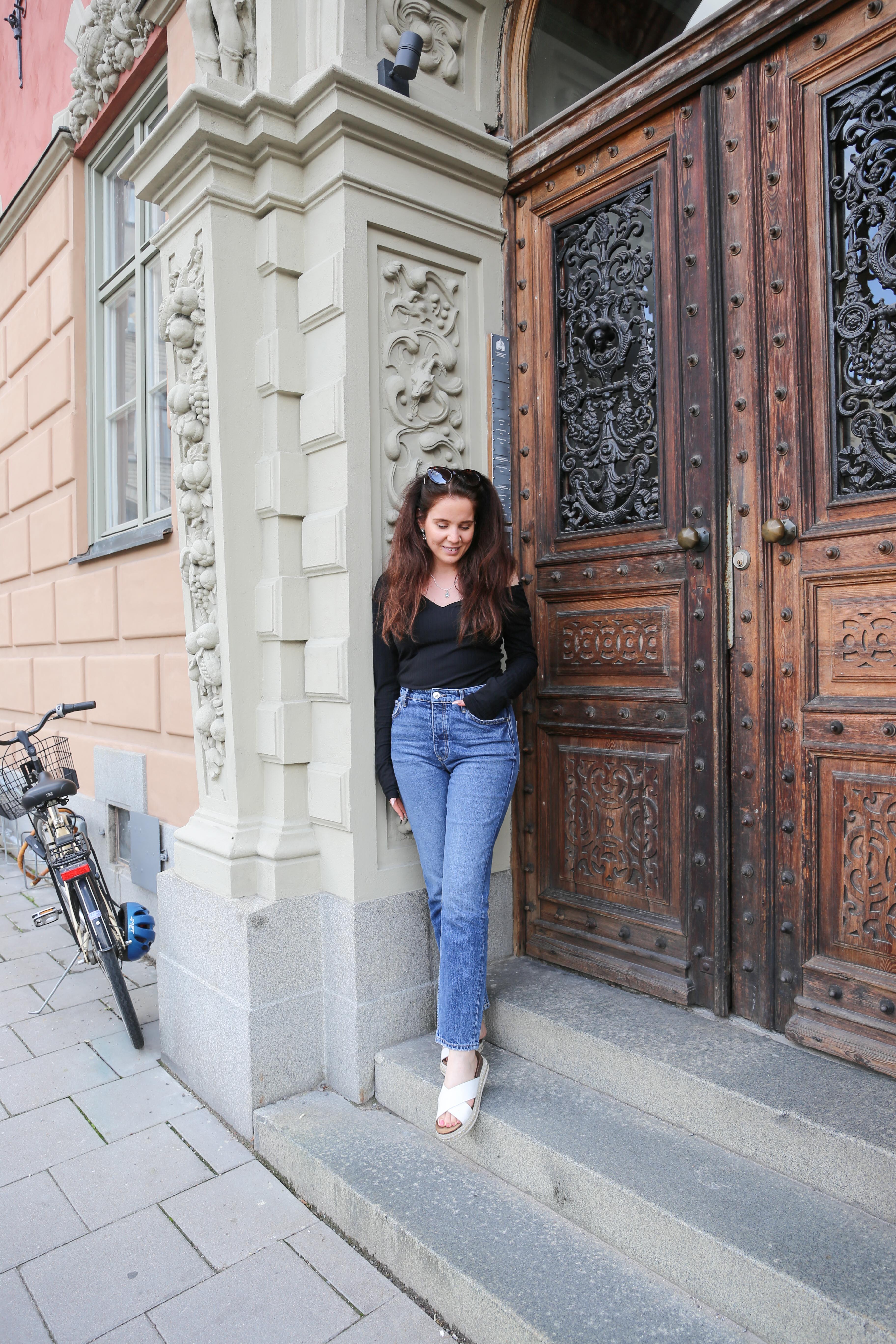 Så klassiskt enkel men underbar outfit. Älskar dessa tidlösa jeans med knappar i grenen. Från Gina Tricot