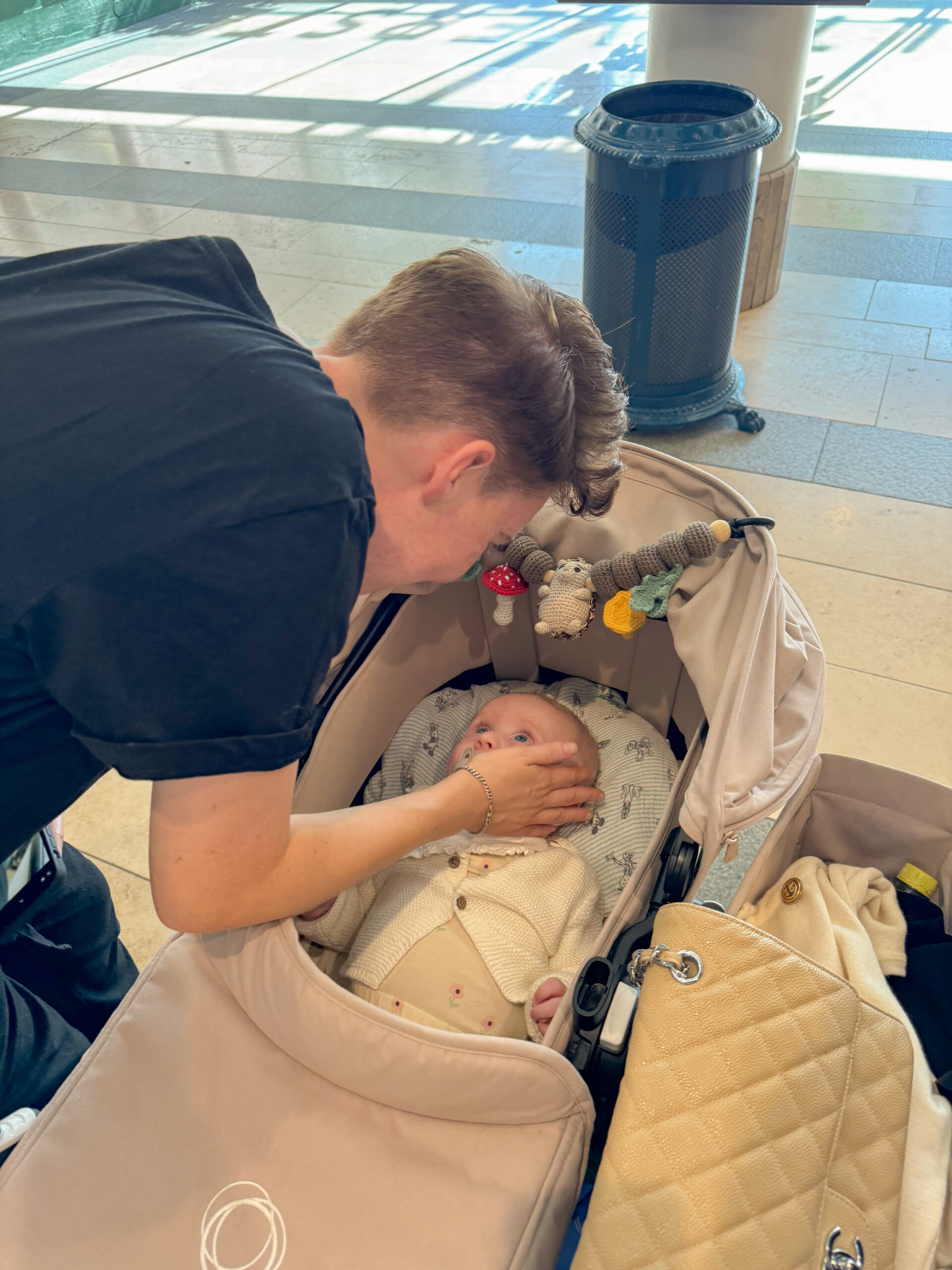 Mitt söta syskonbarn i vagnen som blivit så stor. Två år!!
