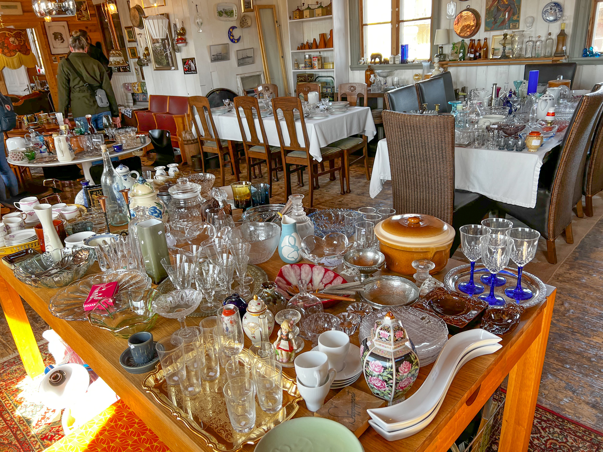 Under påskaftonen packade vi in oss i bilen för att åka mot Västervik. Jag har hört så mycket gott om denna stand. Bland annat hur vacker den ska vara på sommaren och hur mycket bra second hand butiker det ska finnas i staden. Jag älskar ju både loppisar, antikaffärer och alla möjliga typer av andrahandsbutiker. Väl framme blev det en lunch i solen innan vi satte igång vårt fyndande. Jösses vad mycket fint jag hittade! Allt från skålar, en väska i skinn, en duk i linne, två stycken lampor, en antik spegel och en massa kläder till Leonard. Staden kryllade av bra alternativ inom second hand kategorin. Jag är så nöjd med mina fynd. Livia shoppade loss hon också. Det bästa med att handla på loppisar i småstäder är ju priserna. Allt är ju så oerhört billigt om man jämför med Stockholm.