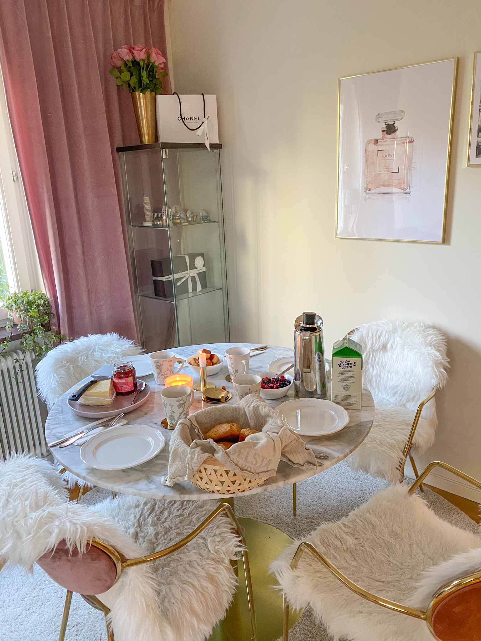 Idag är en sådan dag där jag inte tänker gå utanför dörren. En promenad blir det nog innan solen går ner, men inget mer. Jag strosar runt i mitt nya fina lounge set ifrån Femme Luxe och bara myser. I morse gick både jag och älskling upp tidigt för att förebereda brunch. Hon lagade scones och jag dukade. Lagomt till att scones var klara kom mina underbara svärföräldrar. Vi åt en lång brunch och pratade ikapp. Så mysigt att ha dem här.