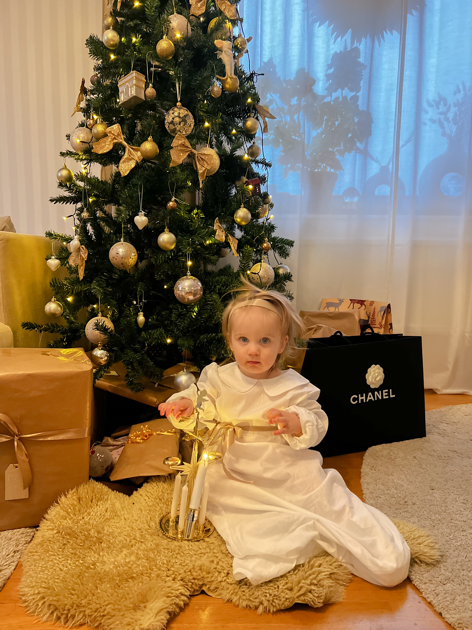 Så här söt var min lillälskling i hans lucialinne. Tänk att vi nu ska fira hans andra jul. Vad jag längtar! Detta år kommer ju bli så mysigt då han är så involverad i allt som händer.