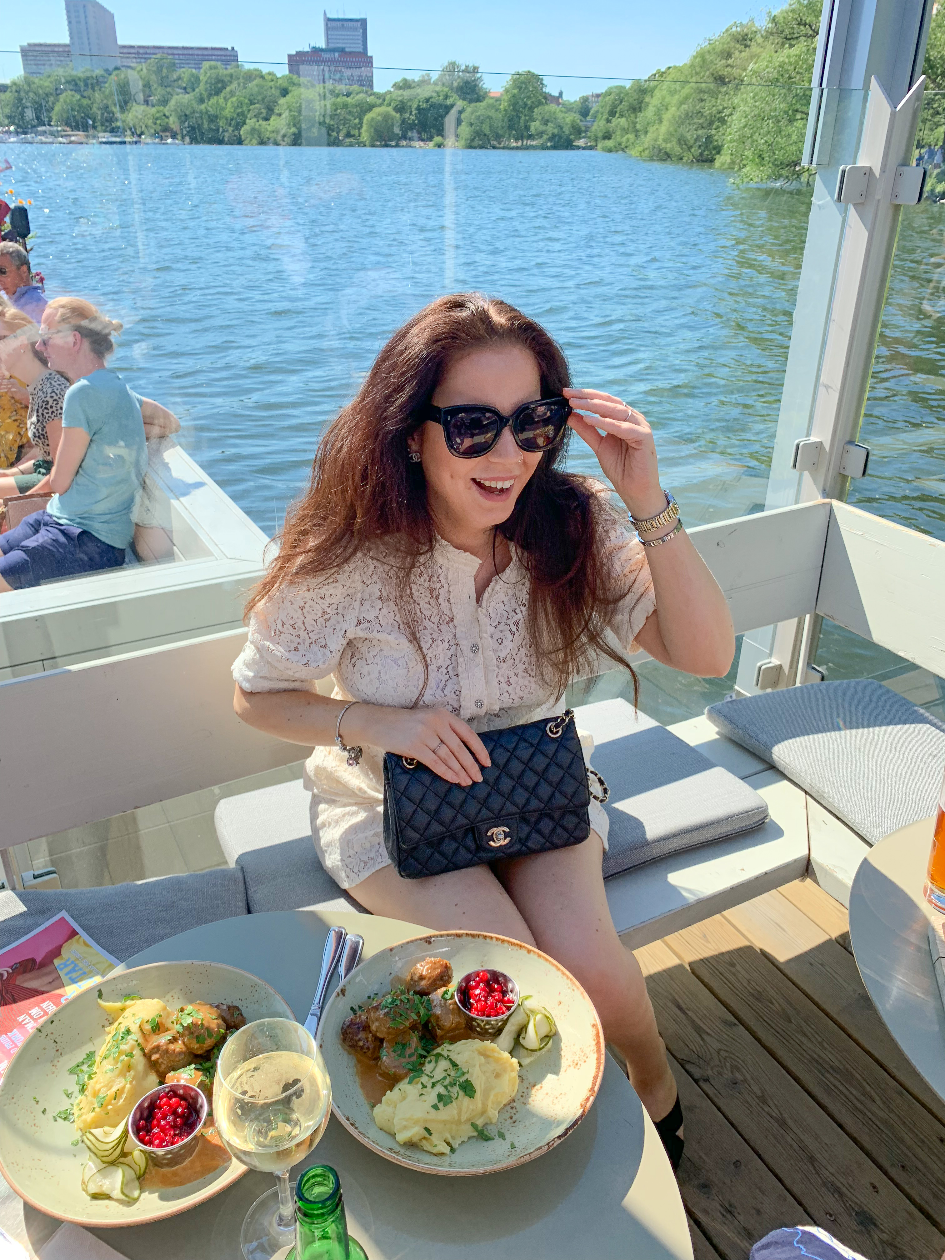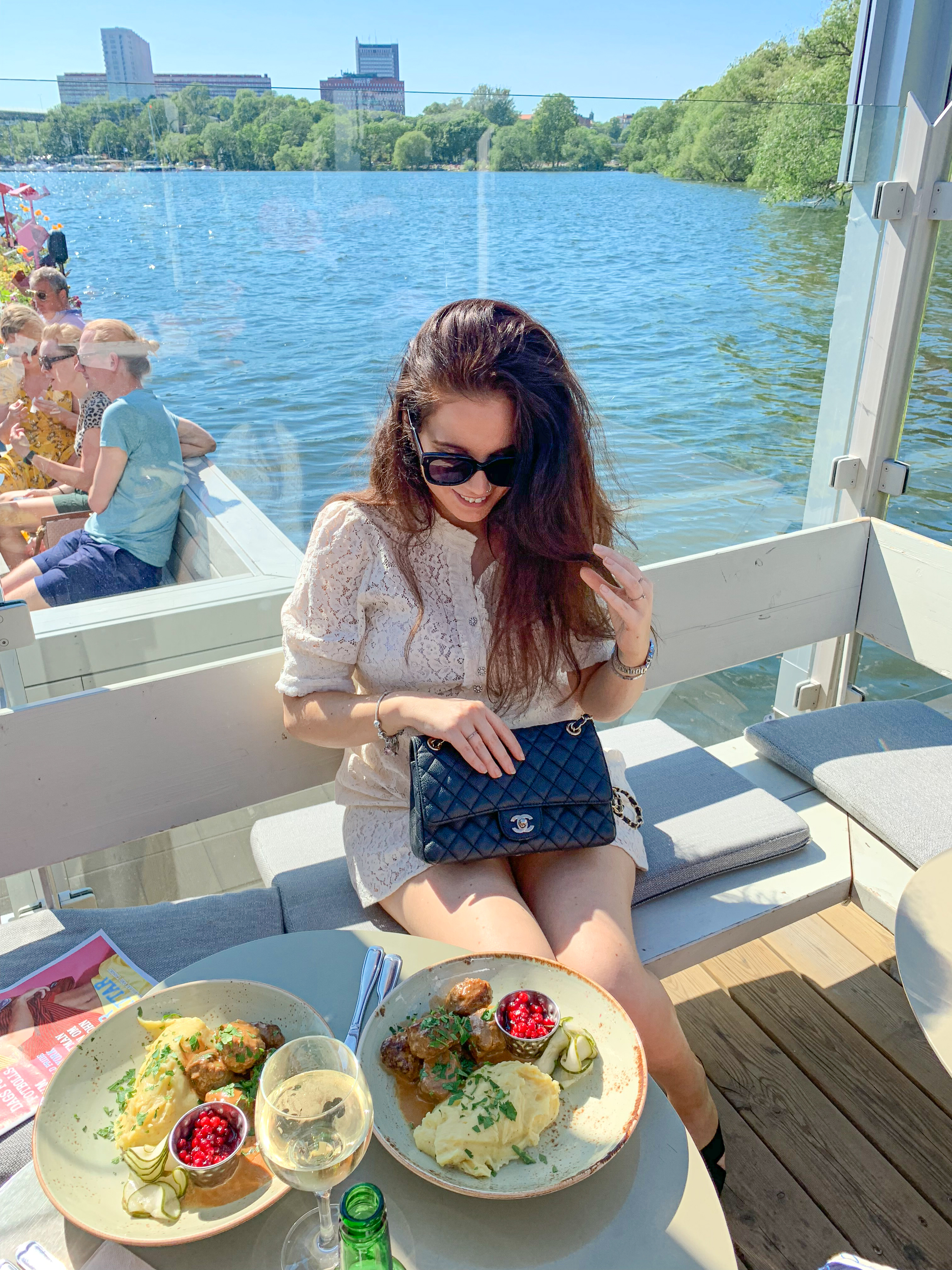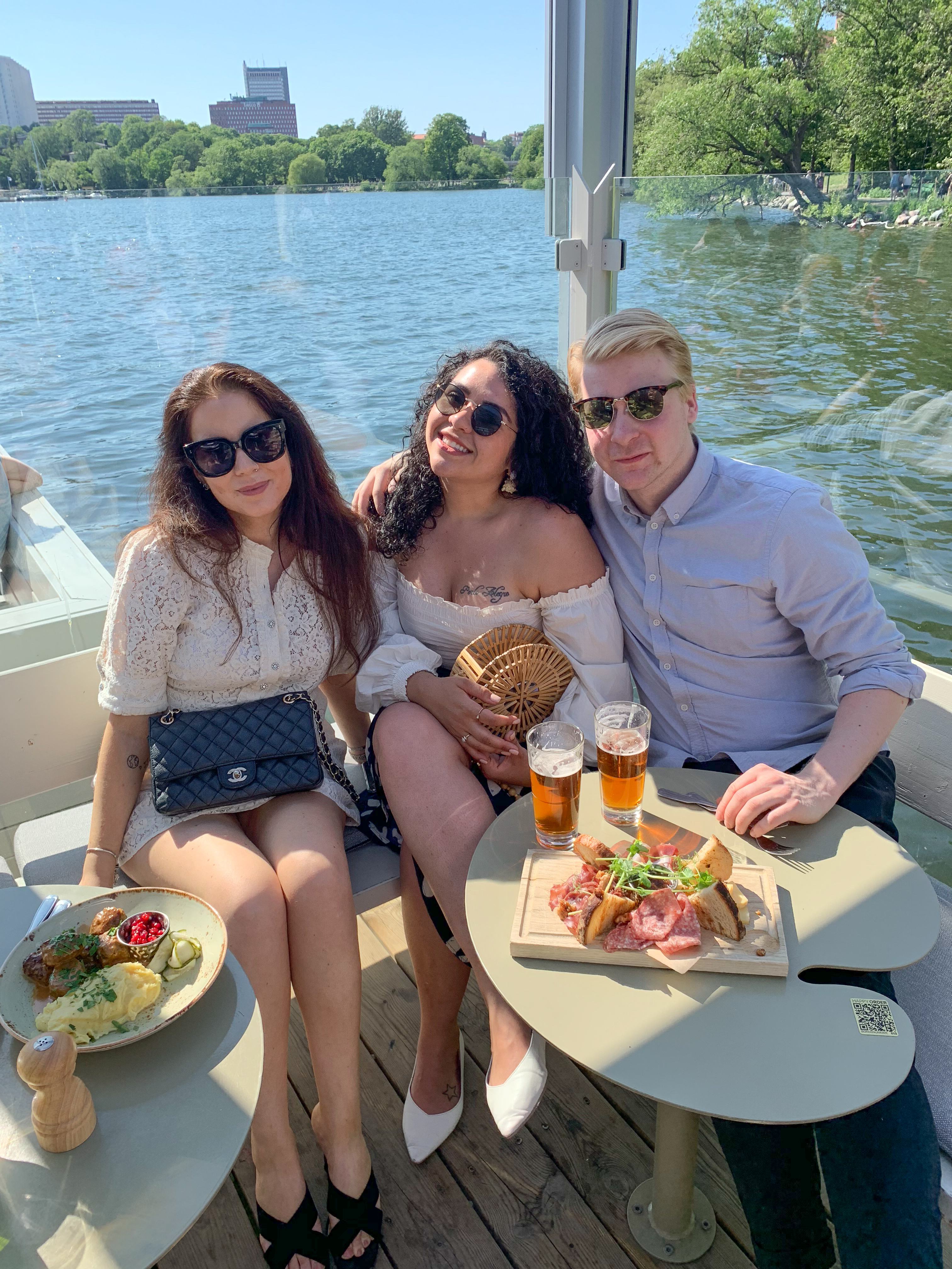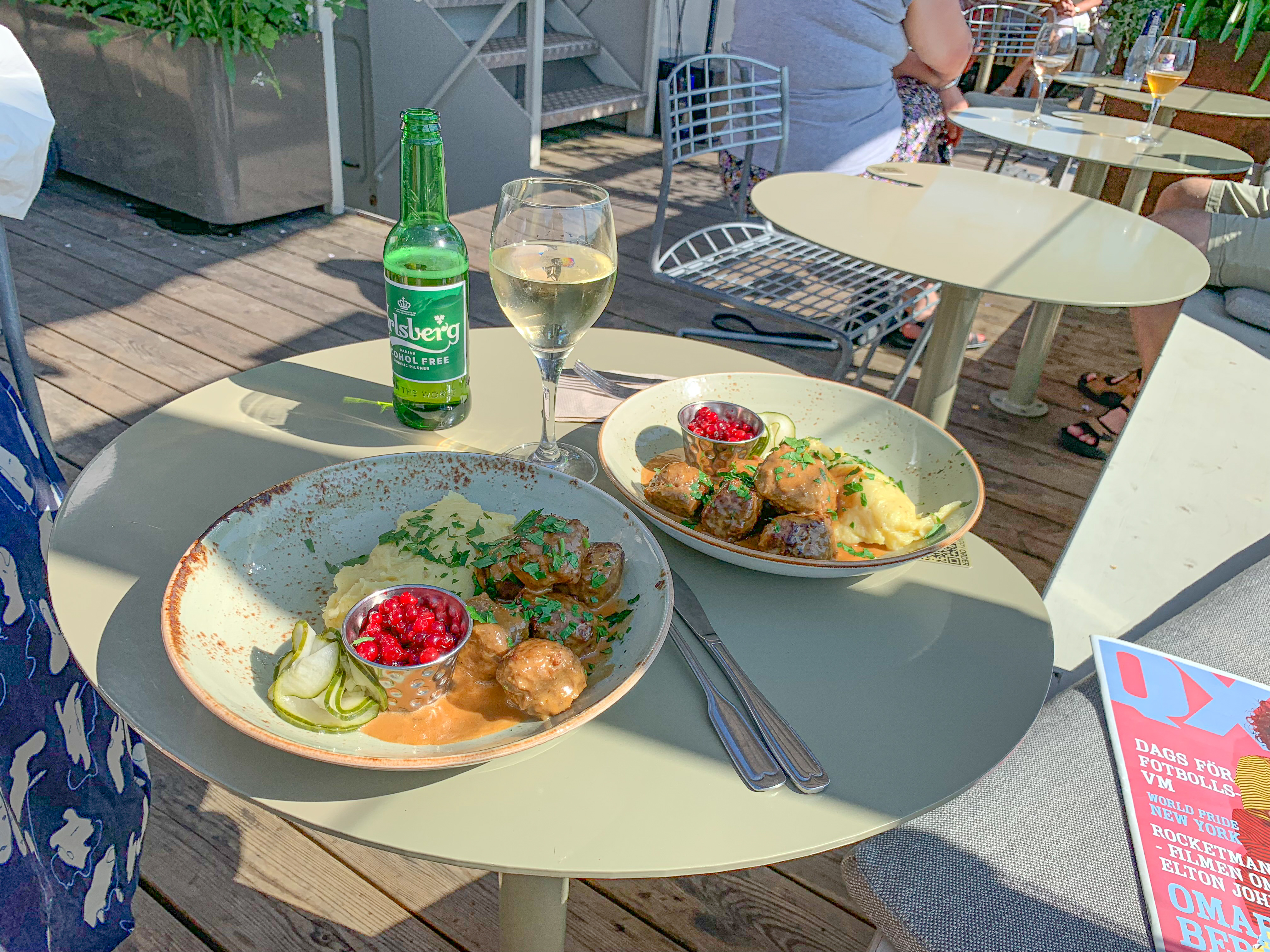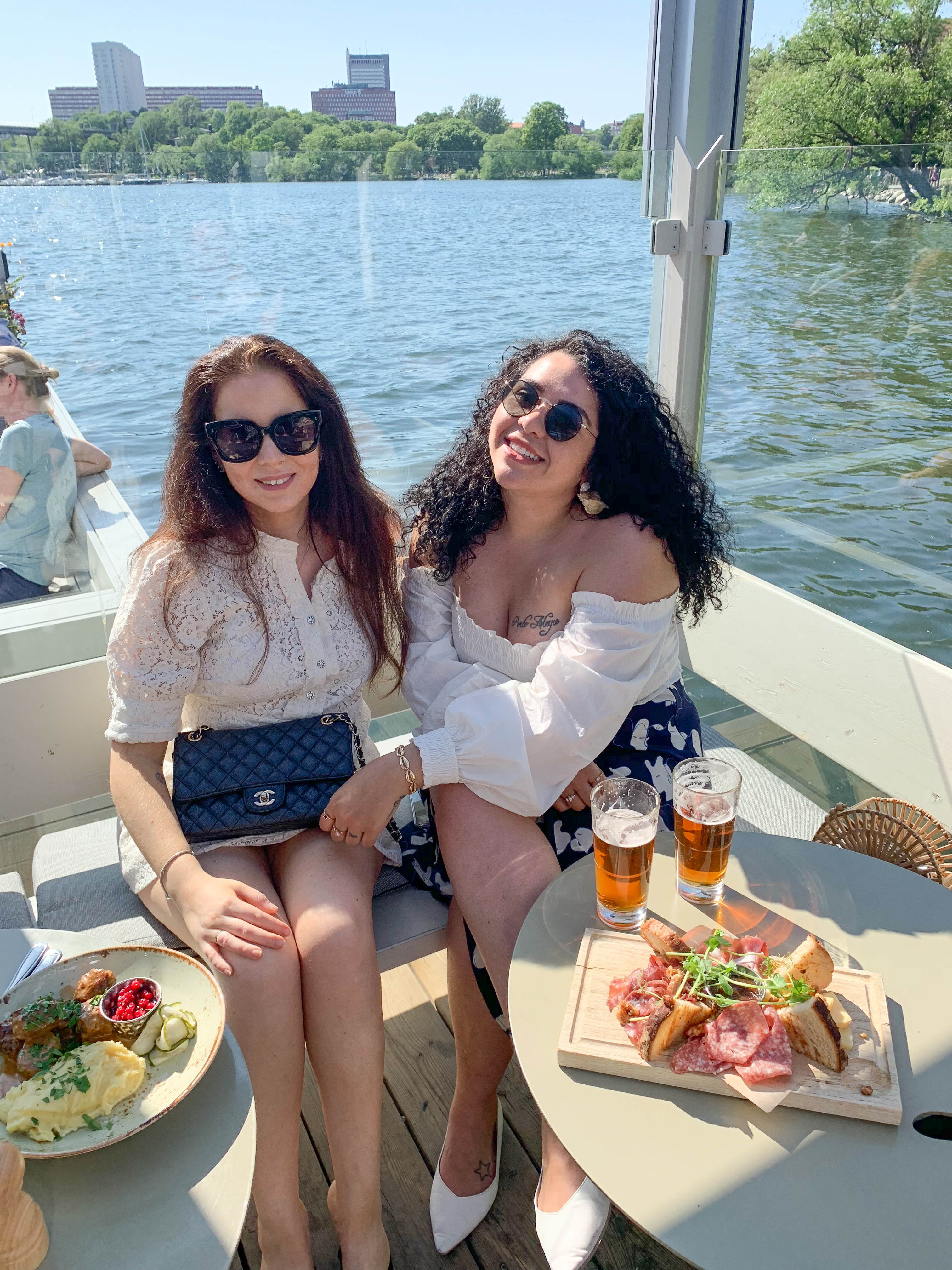 Idag har stockholm verkligen visat sig från sin bästa sida och det har vi såklart utnyttjat till max. Jag började dagen med en lång promenad, lunch och sen packning innan vi tog oss till dagens middags-location. Vid tre-tiden mötte vi upp Luana och hennes sambo på ett av mina favorit-sommar-hak här i Stockholm, alltså Mälarpaviljongen. Här drack vi vin, åt charkisar och en kött-bulls middag. Deras kötbullar är magiska och exakt lika goda som dem på Riche. Vi satt ute på bryggan och käkade och det känns verkligen som man sitter ute på en båt. Det gungar sådär härligt. Finns få saker som slår svenska sommar dagar med fina vänner 🙂 Om ni inte varit på Mälarpaviljongen så måste bi ta er dit. Så galet mysigt häng. Både för middagar och / eller drinkar.
