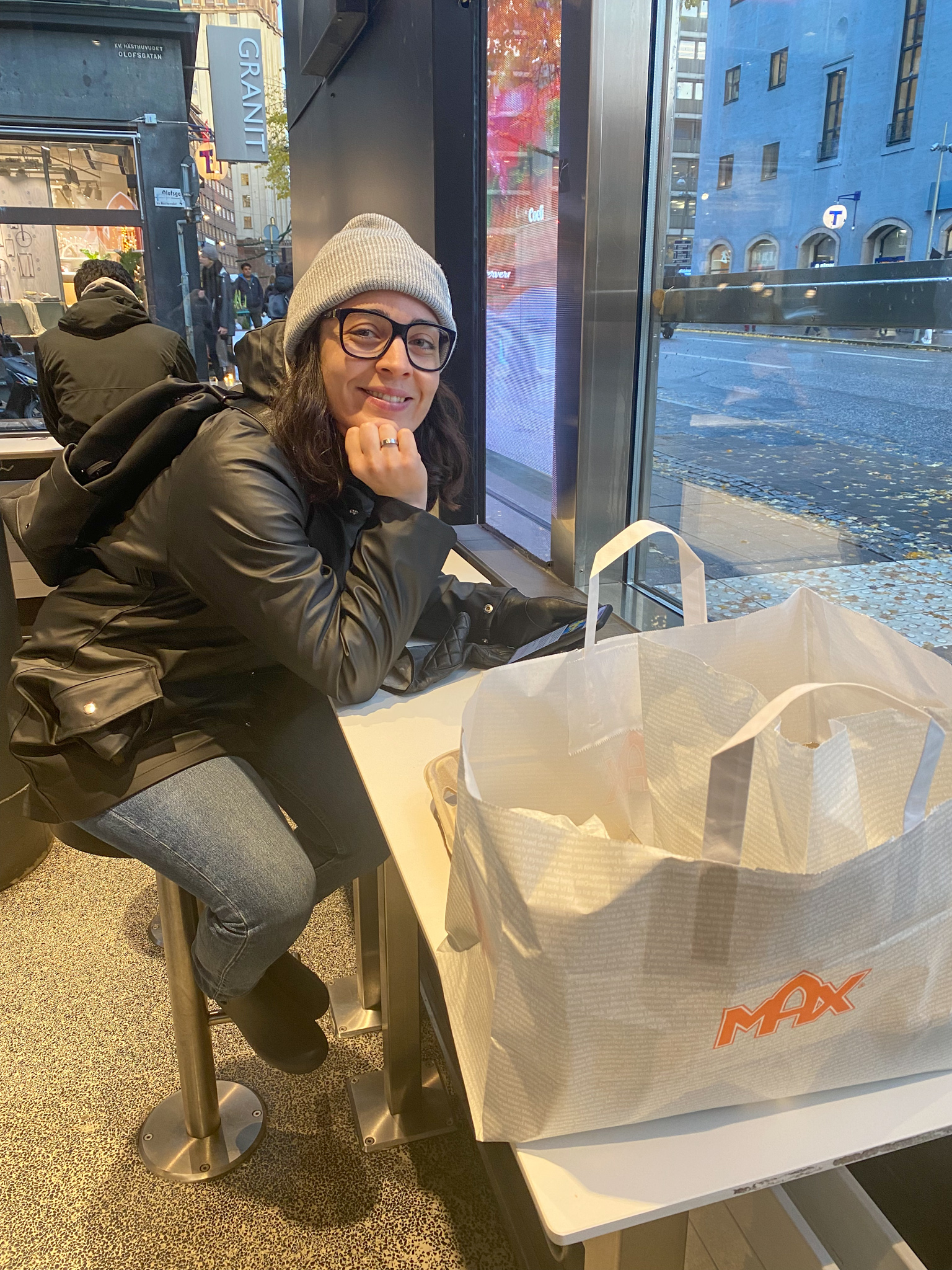 Idag har jag och älsklingen haft en ensamdag på stan. Jag var hos läkaren först sedan tog vi en promenad i regnet genom humlegården och upp på Kungsgatan. Väl i stan så passade jag på att beställa den nya Iphone 13 pro max då jag tröttnat på den jag har just nu. Idag har jag den tidigare modellen, men jag känner att jag vill byta ut den då kameran på Iphone 13 ska vara såååå mycket bättre än den föregående modellen. Om några veckor kommer den och ingen kommer vara lyckligare än jag. Innan vi hoppade in i taxin hem gick vi till Max och köpte med hamburgare till oss alla. Så otroligt gott. Max är verkligen det godaste alternativet när det kommer till snabbmat.