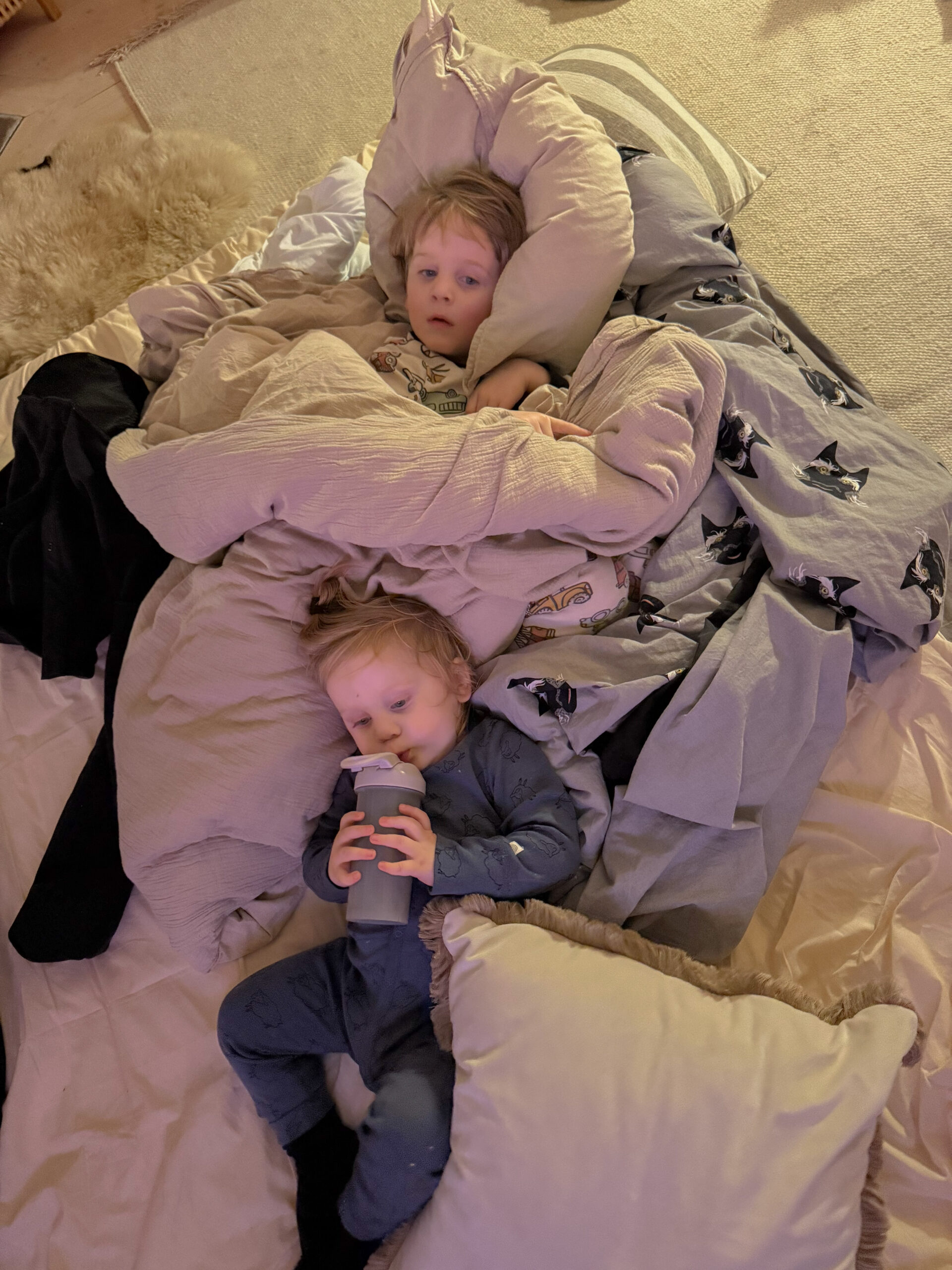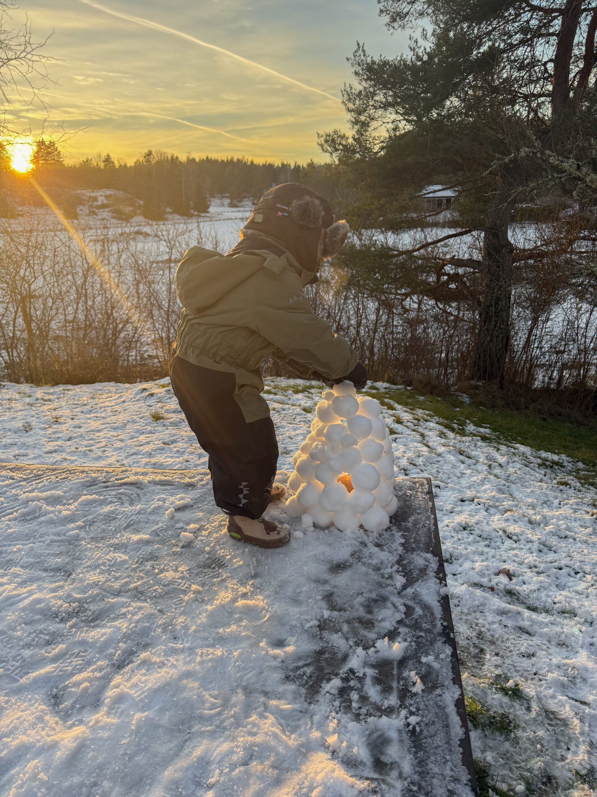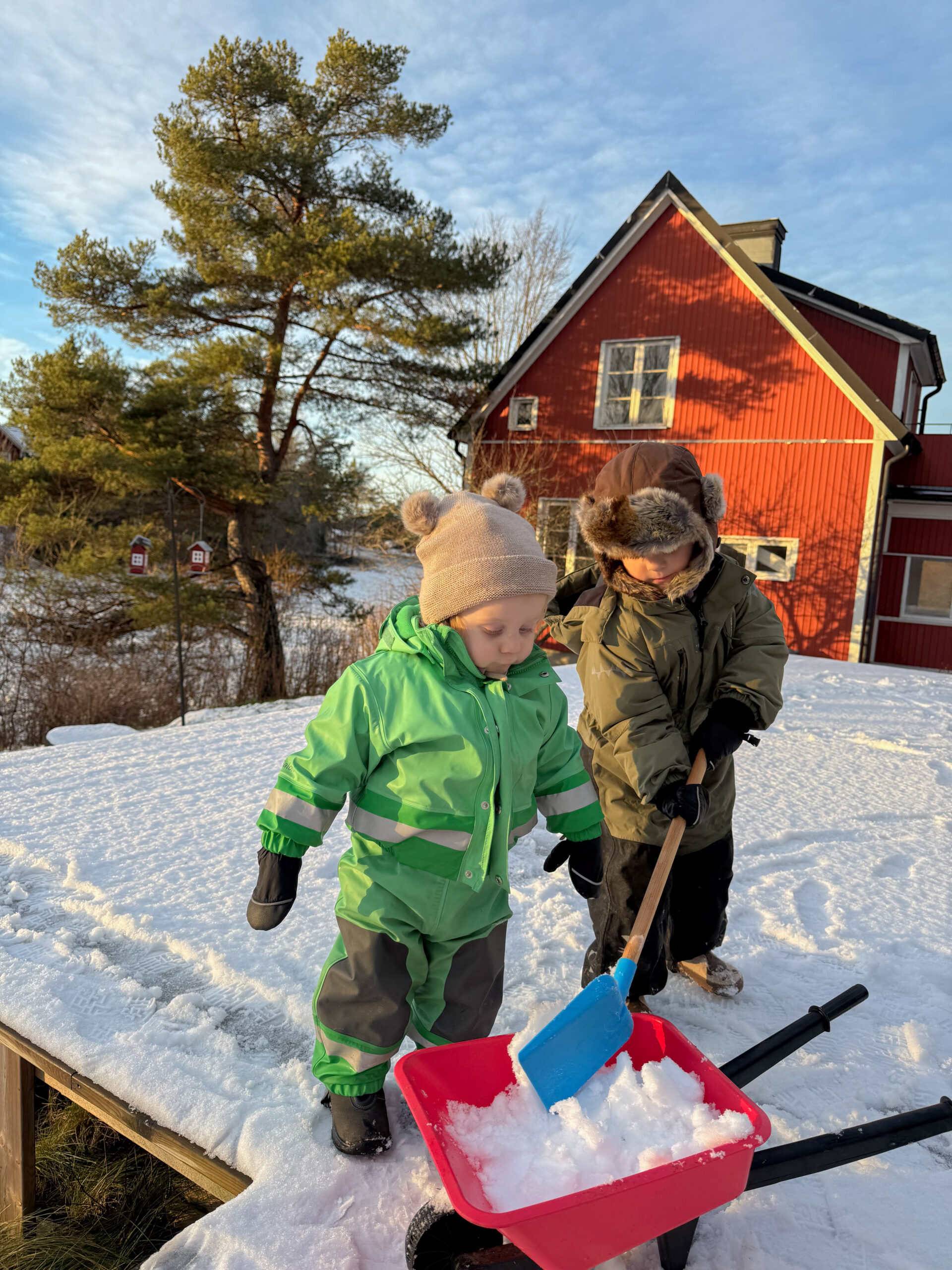 Igår åkte vi som sagt ut till landet och här kommer vi att vara i ett par dagar för att bara koppla av. När vi kom fram igår gav vi oss ut på gården, tände en brasa utomhus och började grilla både korv och pinnbröd. Detta är ju sådana barndomsminnen för mig. Livia grillade aldrig pinnbröd som barn. Kanske var något man endast gjorde i Värmland? Hur som helst så är det ju så mysigt och så gott. Extra saltat smör och ost som tillbehör är mumma. Det blev en massa lek och fix ute på gården innan vi gick in för att leka. Mormor och morfar kom också på besök så vi alla satte oss på golvet för att bygga med lego. Leonard fick Bluey lego i julklapp, ett megastort så vi alla hade att greja med om vi säger så.
