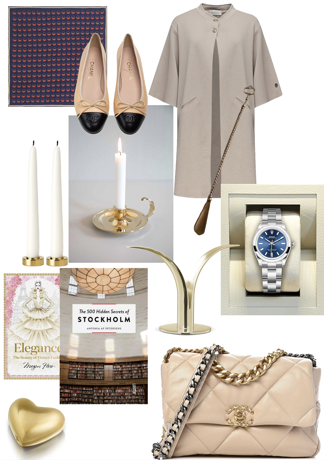 Ljusstake med handtag här / Chanel Ballerina / Busnel Scarf här / Busnel kappa här / Rolex här