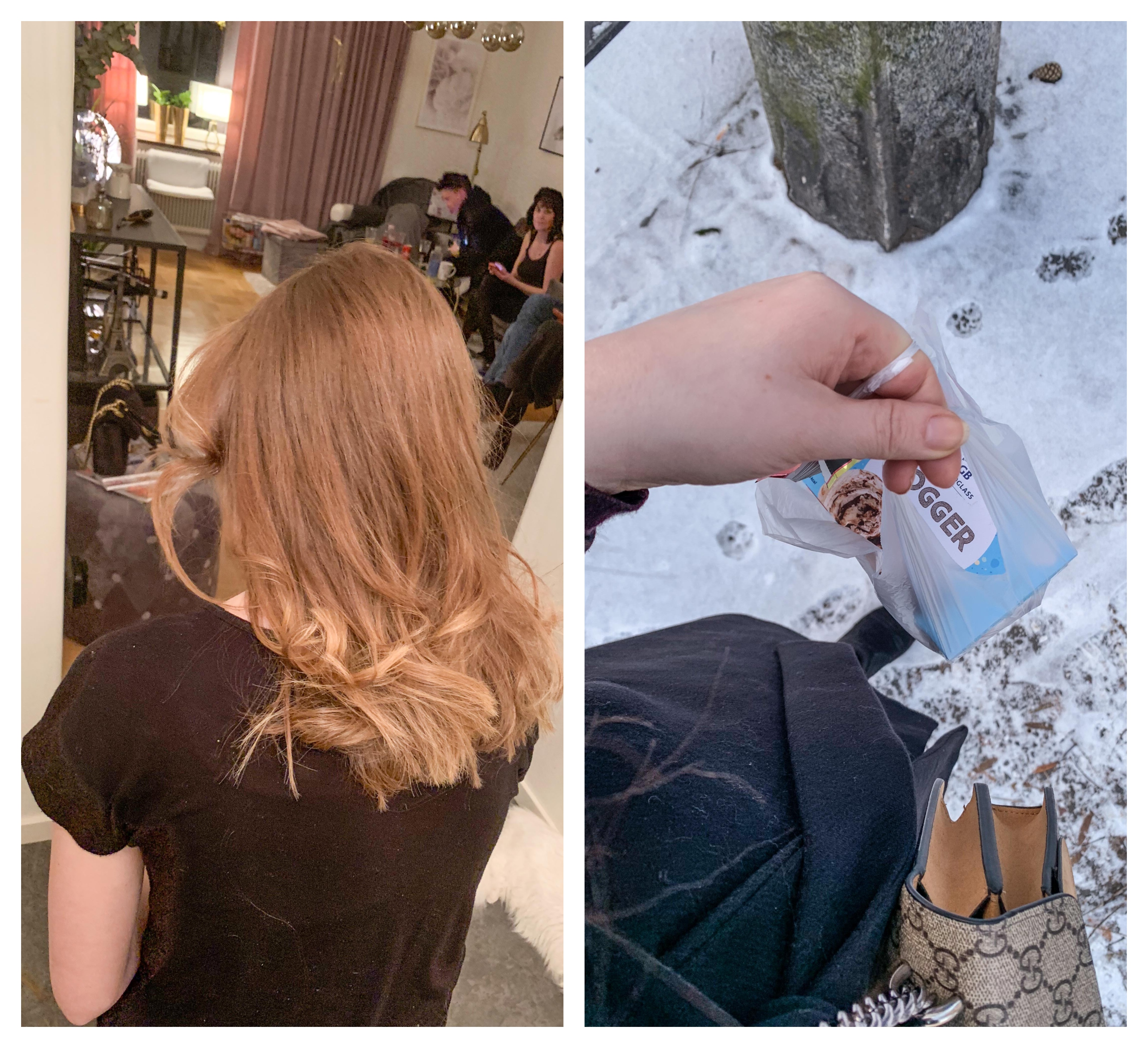 Såhär fräscht blev syrrans barr <3 på högra bilden ser ni mig med glass – fick cravings i iskylan Delar av familjen  Från morgonen promenad Sasha vet vad detta betyder… Ska försöka packa klart allt idag – men helt beroende på hur jag mår.