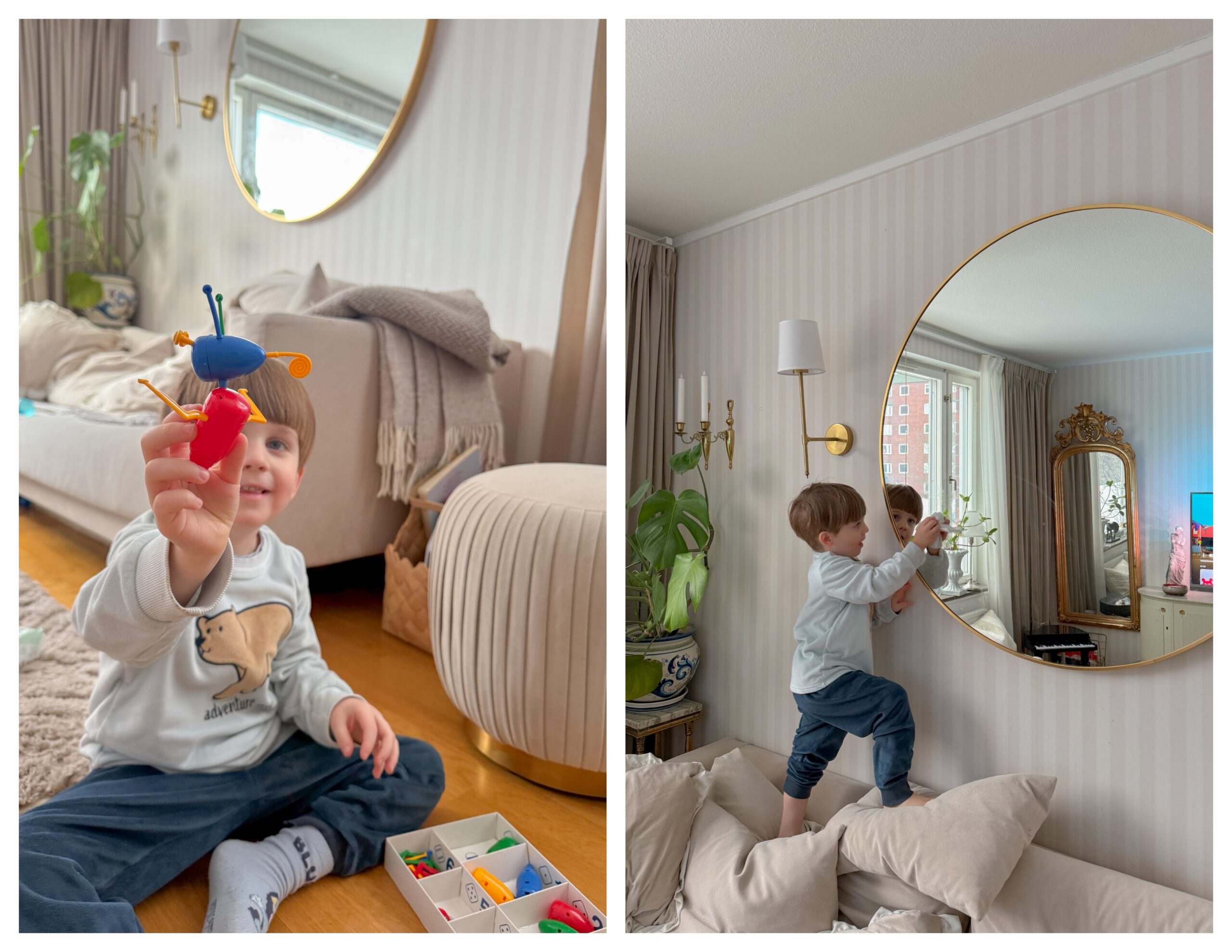 Jag bestämde mig för att Leonard fick vara ledig från förskolan både idag och i morgon. Vi vill försöka slippa undan alla sjukdomar som cirkulerar runt och aldrig tycks försvinna. Vabruari ni vet… Han blev så glad när jag överraskade honom med en massa olika lekar idag. Medans lillebror har suttit med sitt pyssel har jag och Leonard bytt sängkläder, kastat in tvätt i tvättmaskinen, våttorkat och dammat. Han är så duktig på sådant här och älskar verkligen att städa. Det är roligt! Efter detta så gick vi alla ut. Men pojkarna var inte taggade på lek ute i snön så vi tog en kort promenad till affären för att hämta paket, panta burkar och handla lite mat.