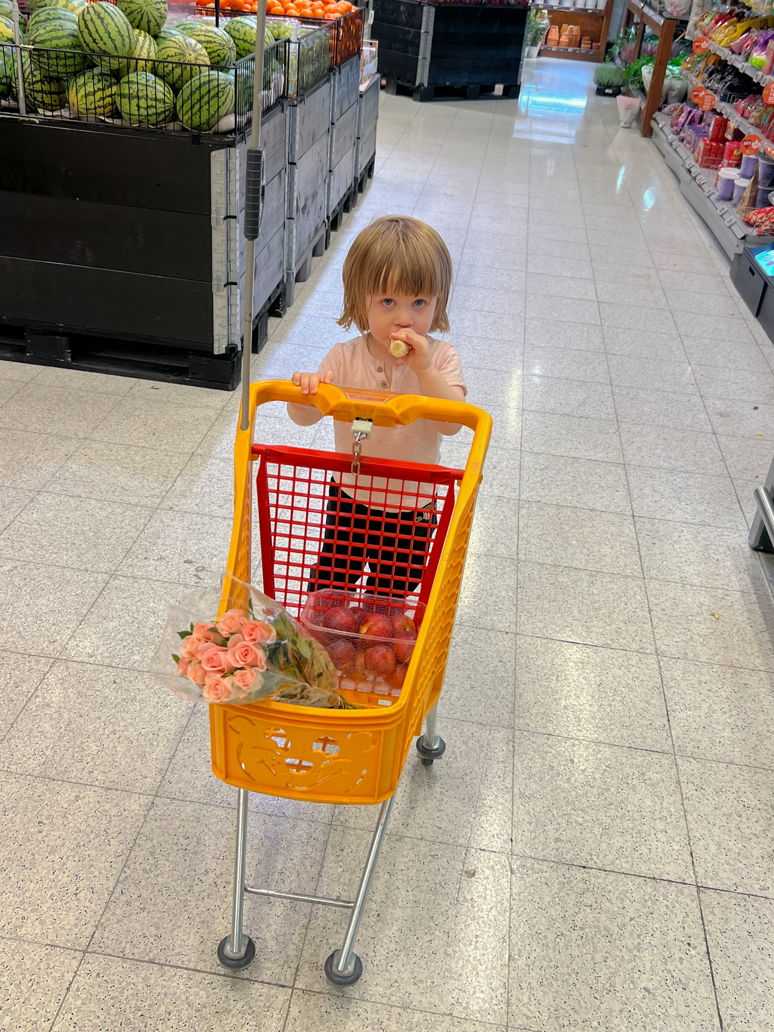 lillgubben älskar att följa med mig och handla. Perfekt syssla efter parklek