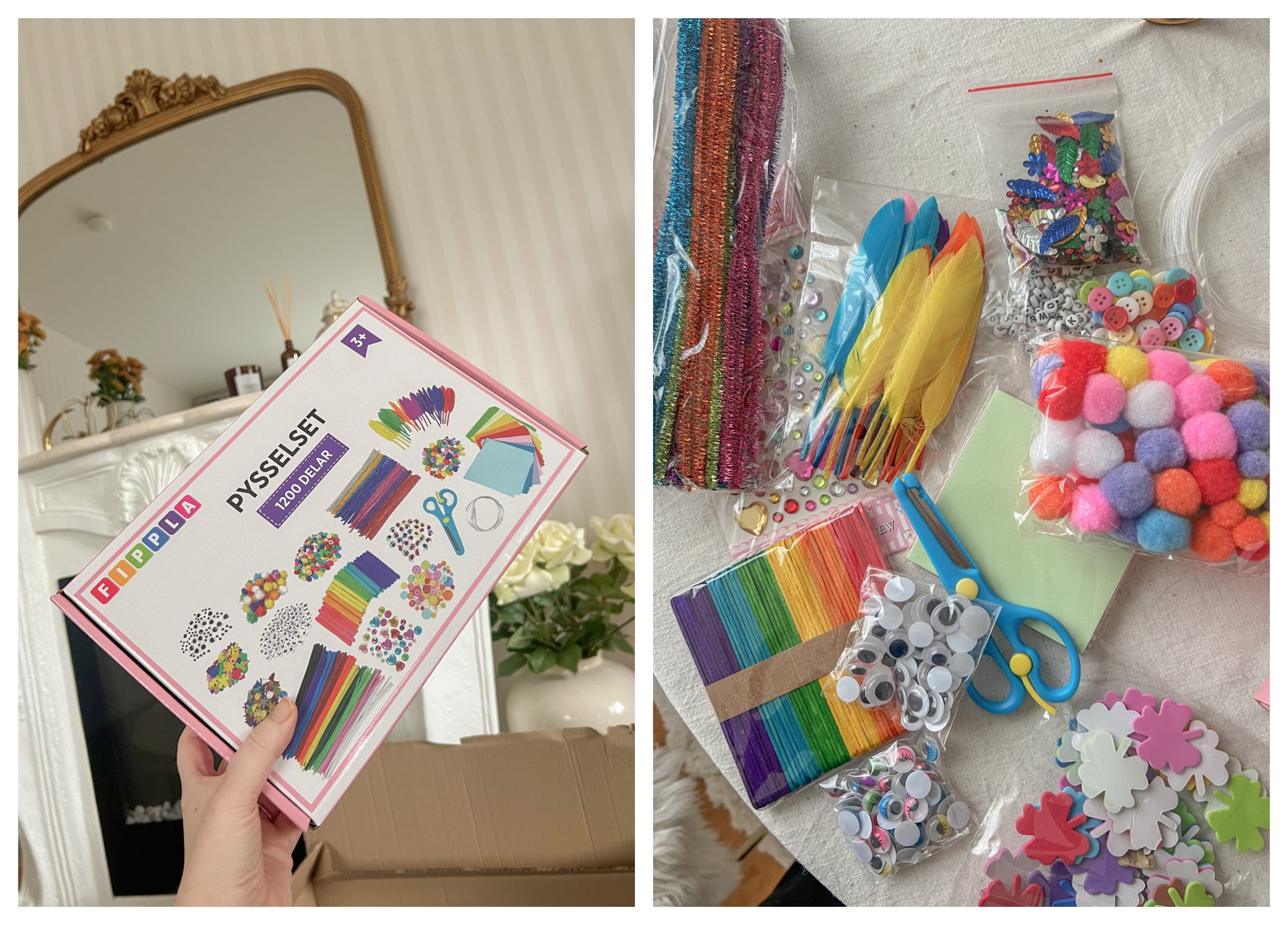 Detta söt skrivbords-set är ju så fint och kommer märket Alice & Fox. Setet är tillverkat av stabil trä och har en stilren design som passar perfekt i Leonards rum. Skrivbordet har två utdragbara lådor där vi förvarar lillens pennor, papper och hans pyssel. Här hittar ni pysselset 1200 delar <– klick Så roligt att pärla. Vi håller oss alltid intill honom när han pärlar. För man vet aldrig vad som kan hända med så här små pärlor.  Han stoppar inget i munnen, men vi vågar inte riskera något.