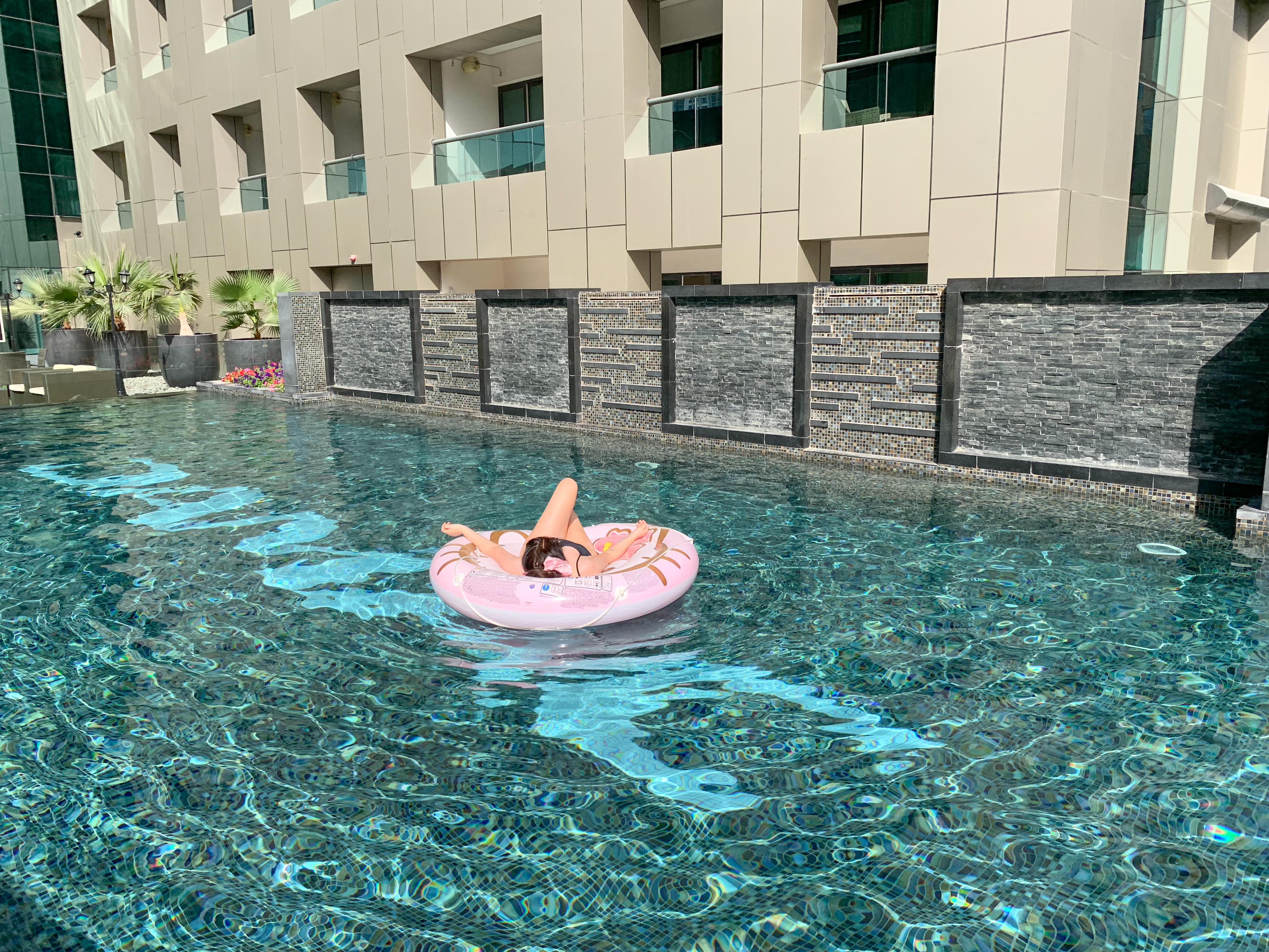Idag började vi dagen med ett besök i världens högsta byggnad, det ni! Det är ju inte varje dag man gör ett sådant besök. Men jag ska berätta om allt detta lite senare. Efter Burj Kahlifa som byggnaden heter åkte vi tillbaka till hotellet för att bada, hänga i solen (för mig blev det skugga och lite jobb) och sedan blev det en härlig sallad till lunch.