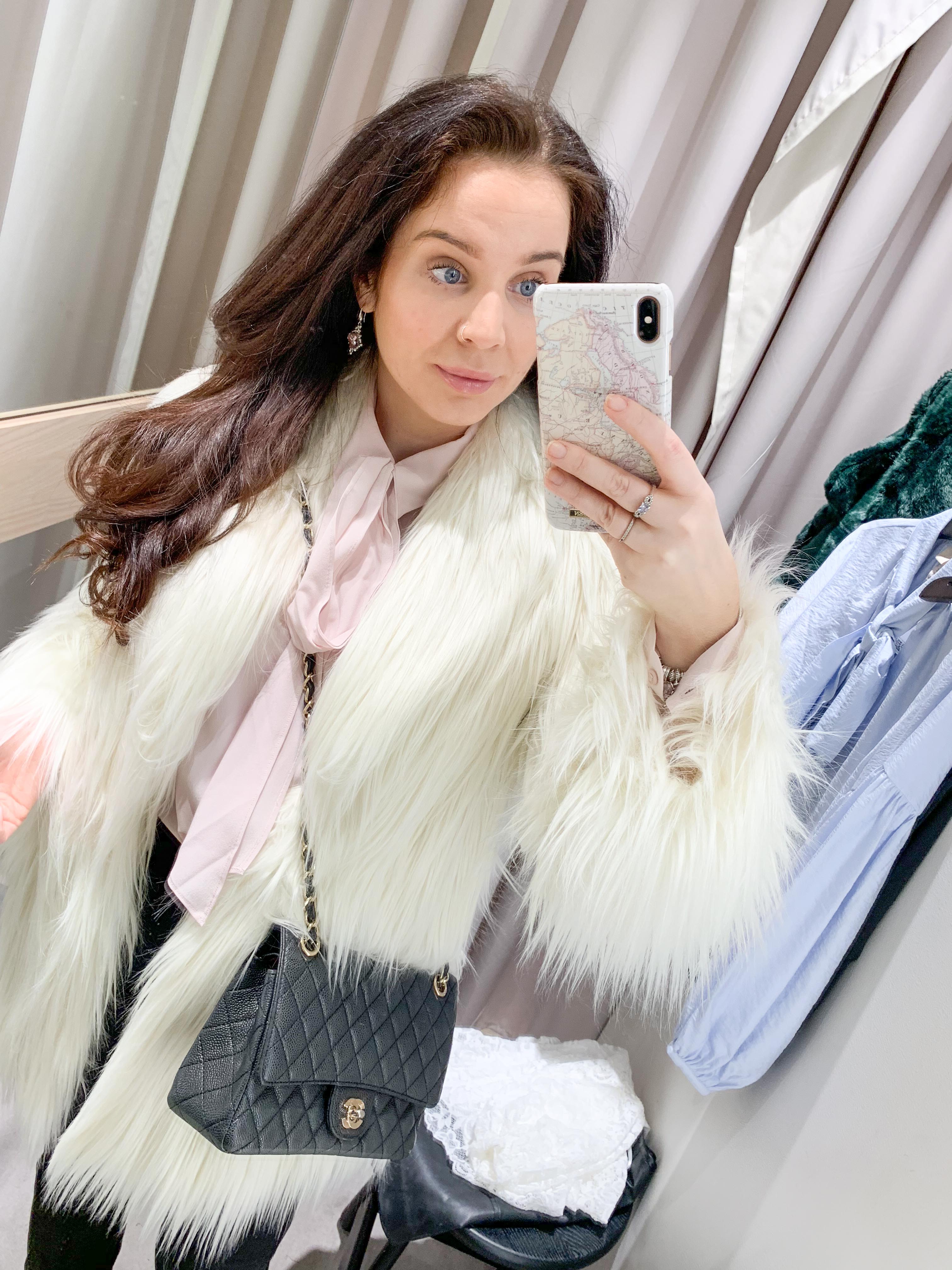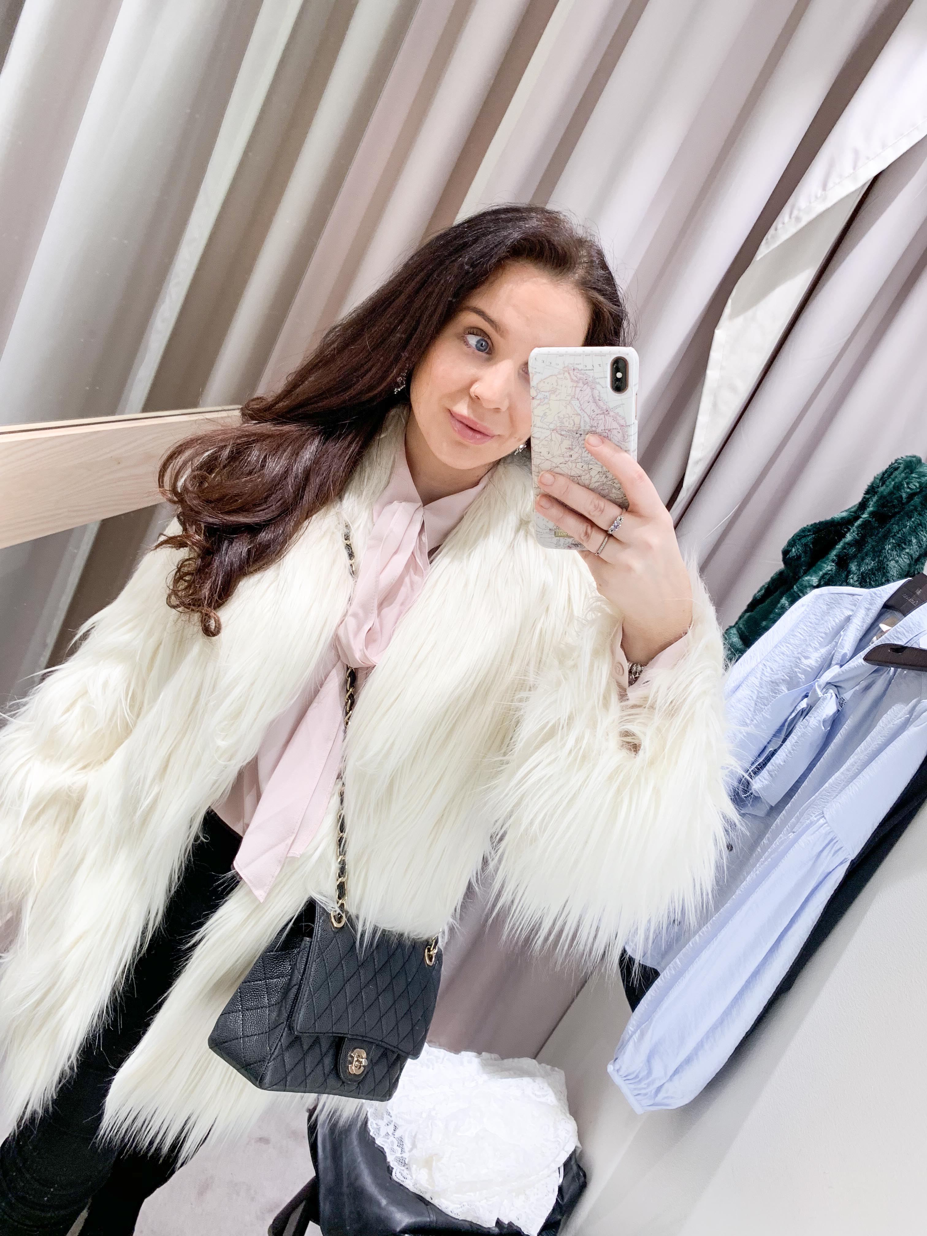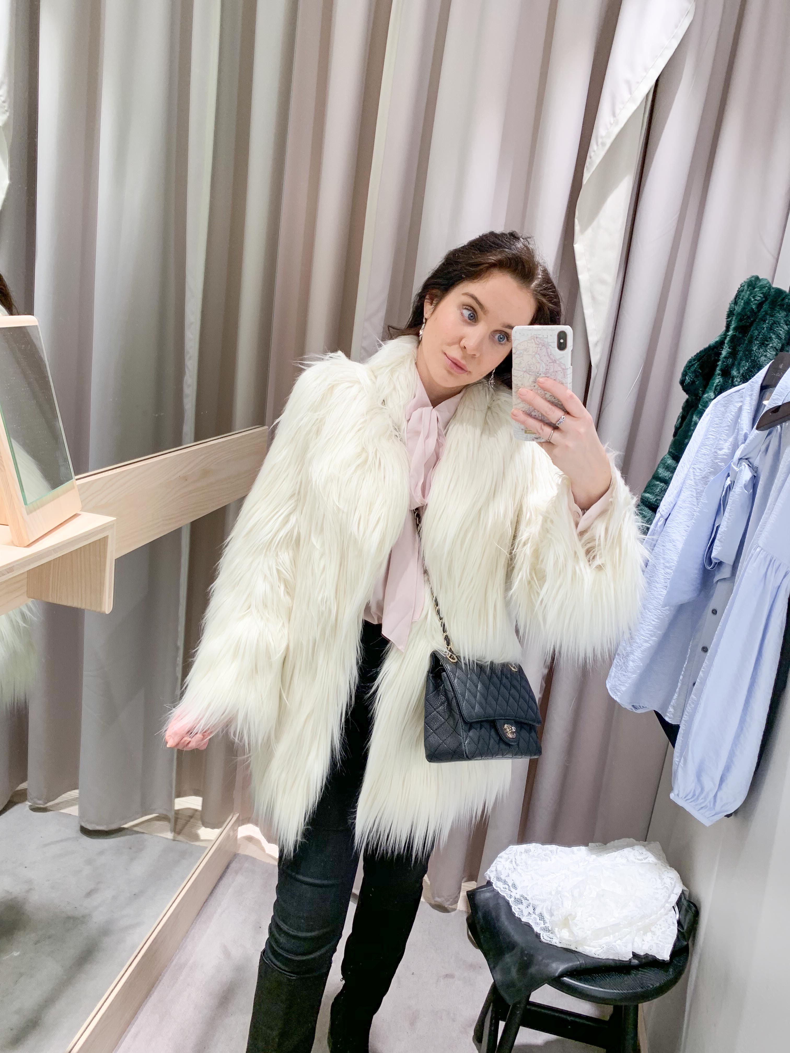 Ny outfit som jag invigde idag 🙂 ÄLSKAR fuskpälsen och blusen i silke.