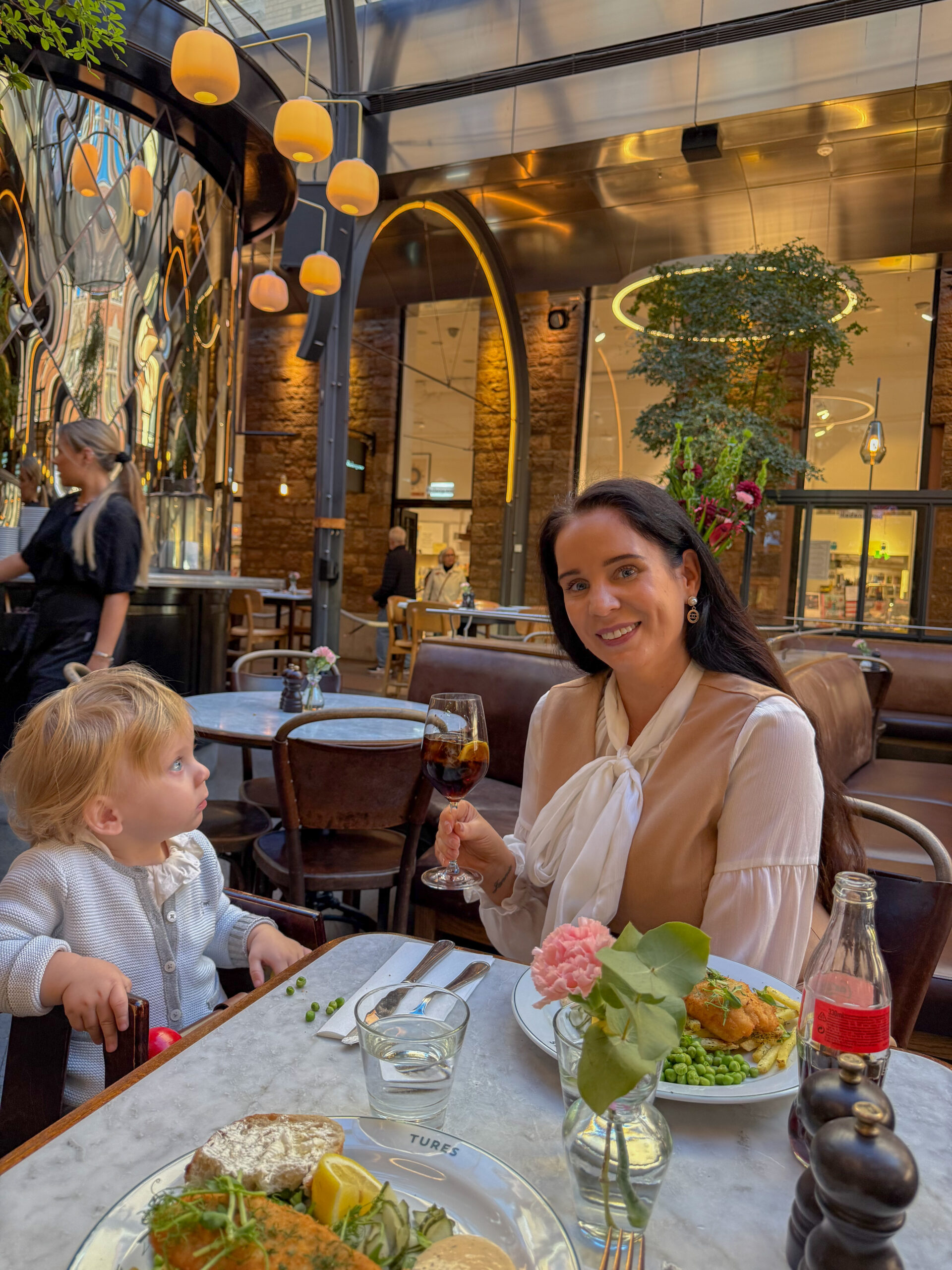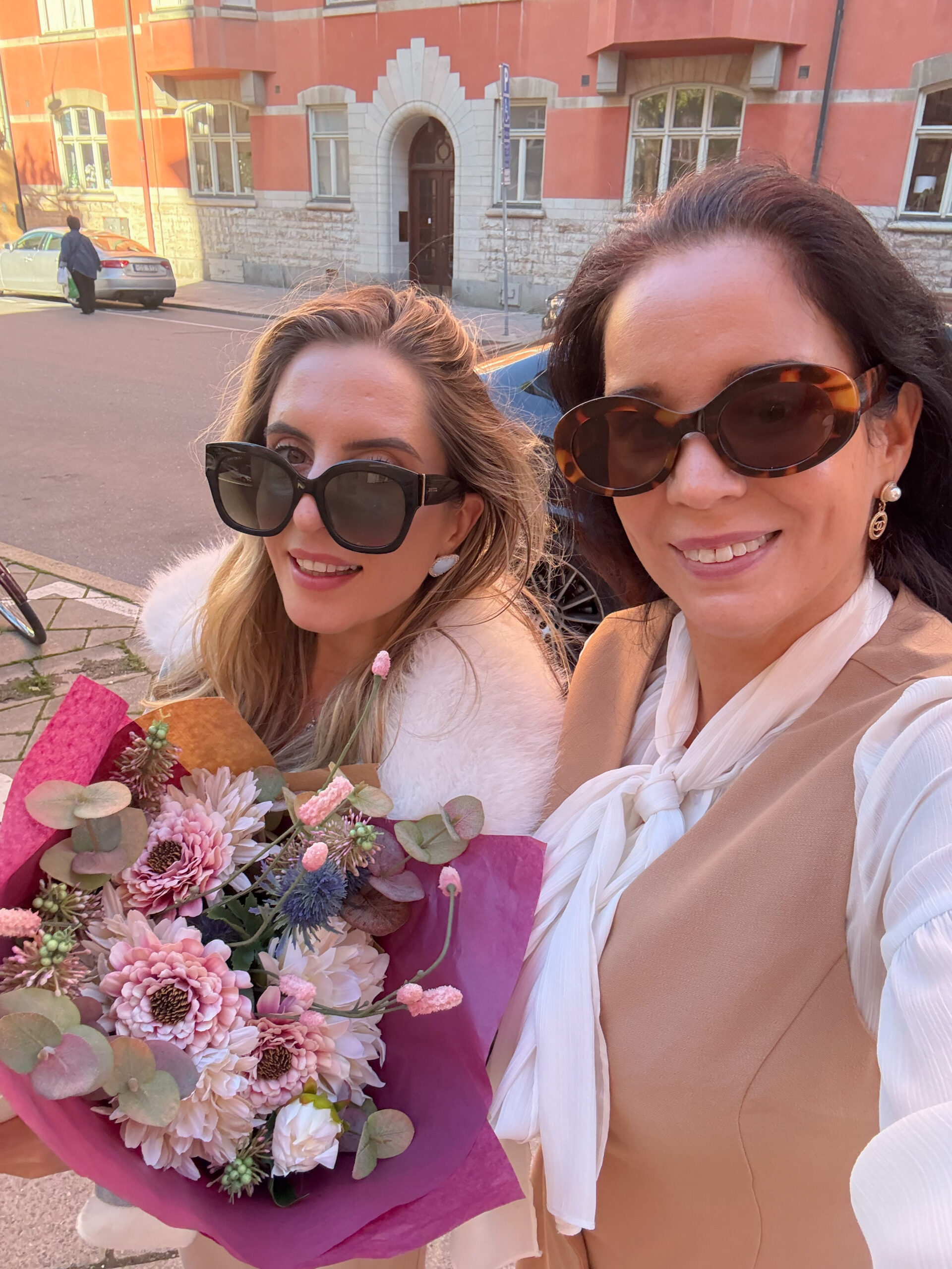sovande barn betyder långlunch för mammorna. Så underbart att sitta utomhus!
