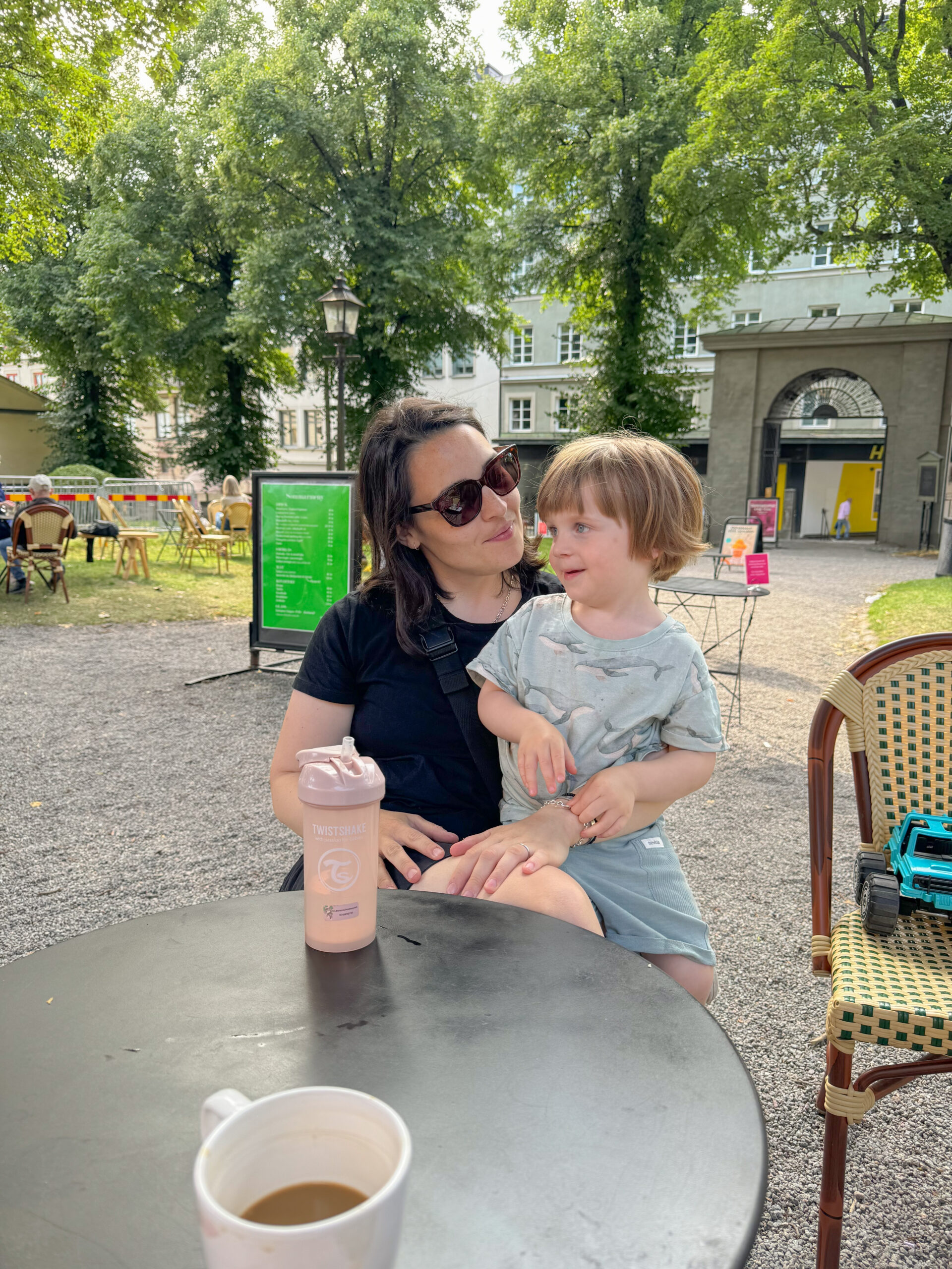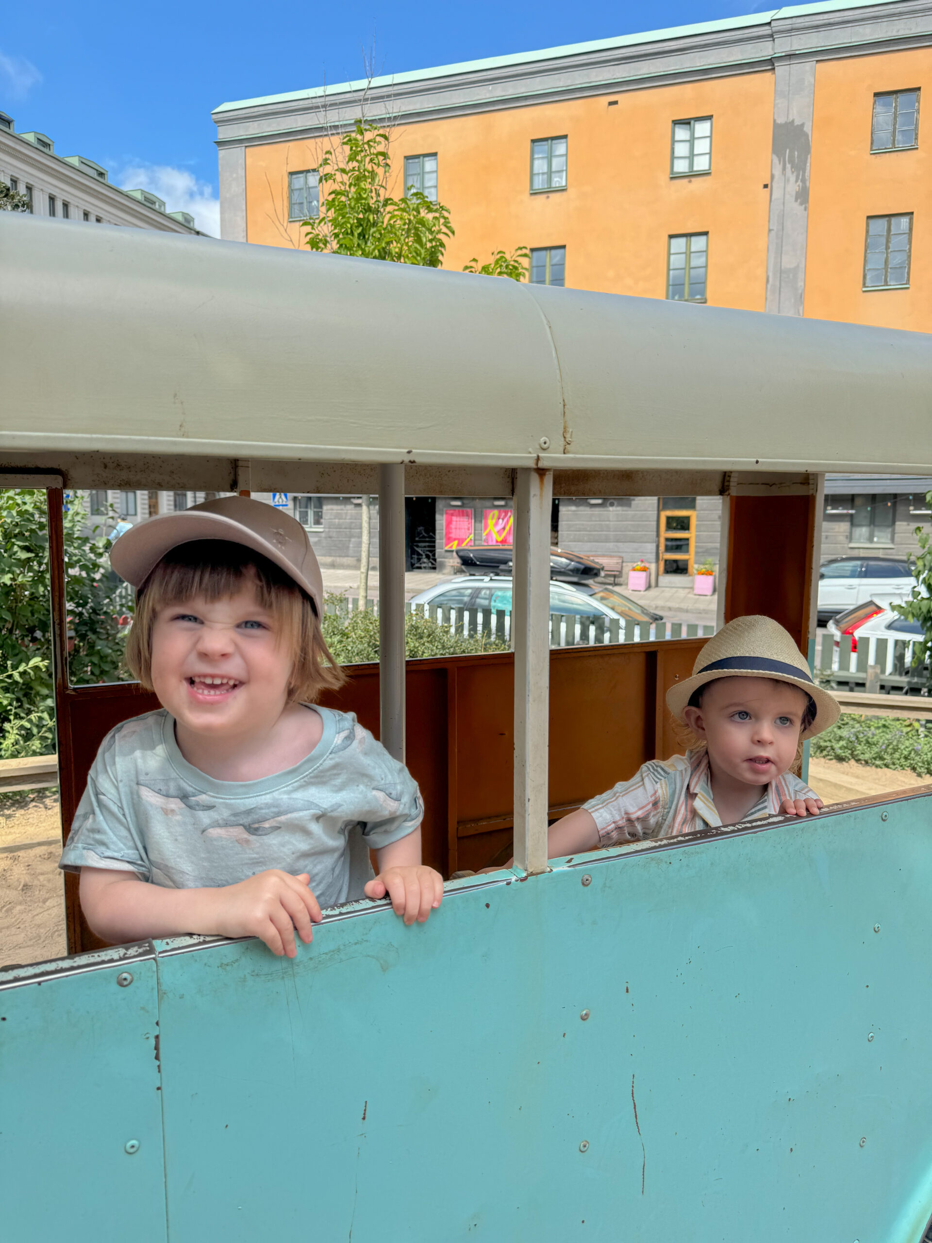 Efter lunchen traskade vi vidare till Krubbans parklek intill Linnégatan. Leonard älskar denna park med tanke på bussen som man får leka i där. Succé tyckte även kusinen. Vi åt glass, promenerade mer och bara hade det väldigt trevligt. Sista stoppet för dagen blev fika i den vackra kyrkparken intill Hedvig Eleonora kyrka. Så otroligt mysigt och lummigt. Jag kan varmt rekommendera ett besök där.