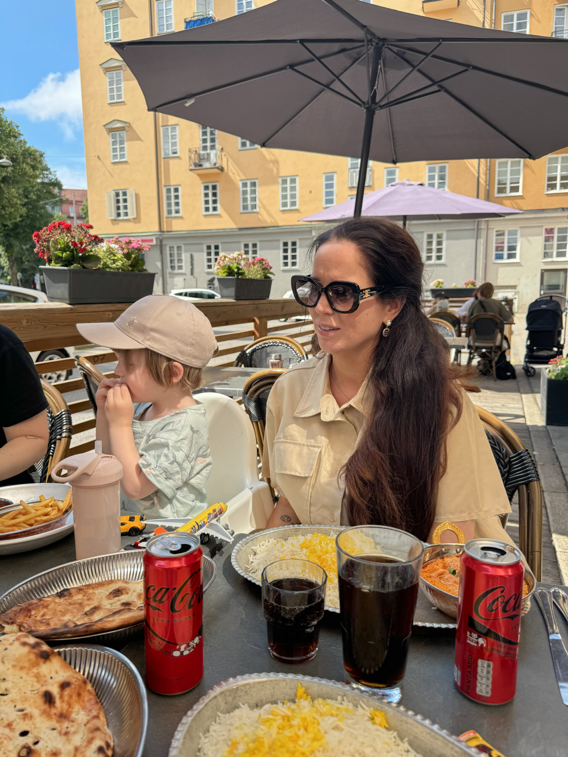 Vid lunchtid gick vi till den fantastiska restaurangen Diwan på Vallhallavägen. Maten är fantastisk där. Jag tog en Tikka Masala och jösses vad gott det var. Barnen åt och var så nöjda. Att få sitta och äta lunch tillsammans med toddlers och bebis är inget man tar för givet numer hehe. Man blir lika förvånad varje gång som man får äta varm mat varm…